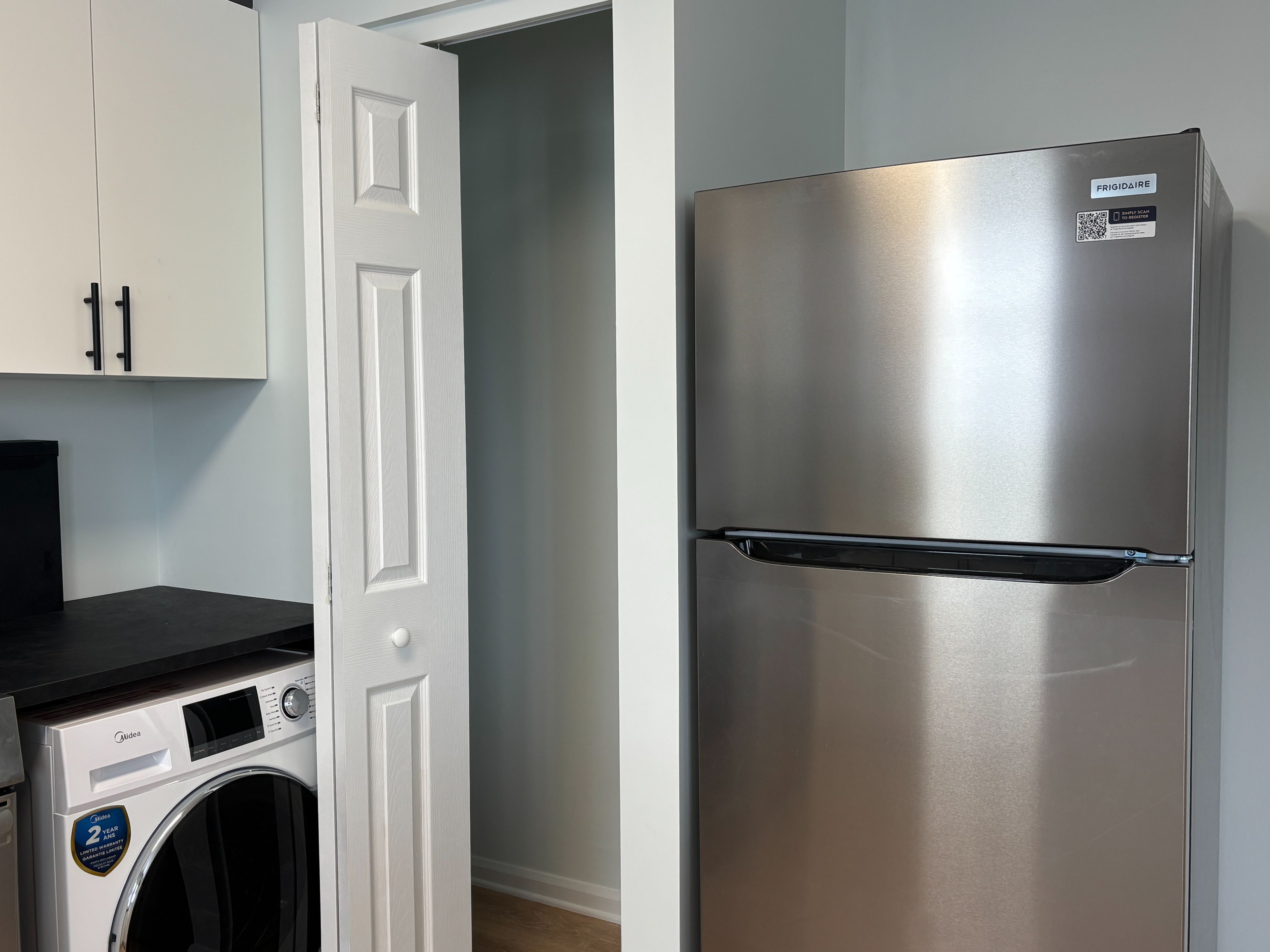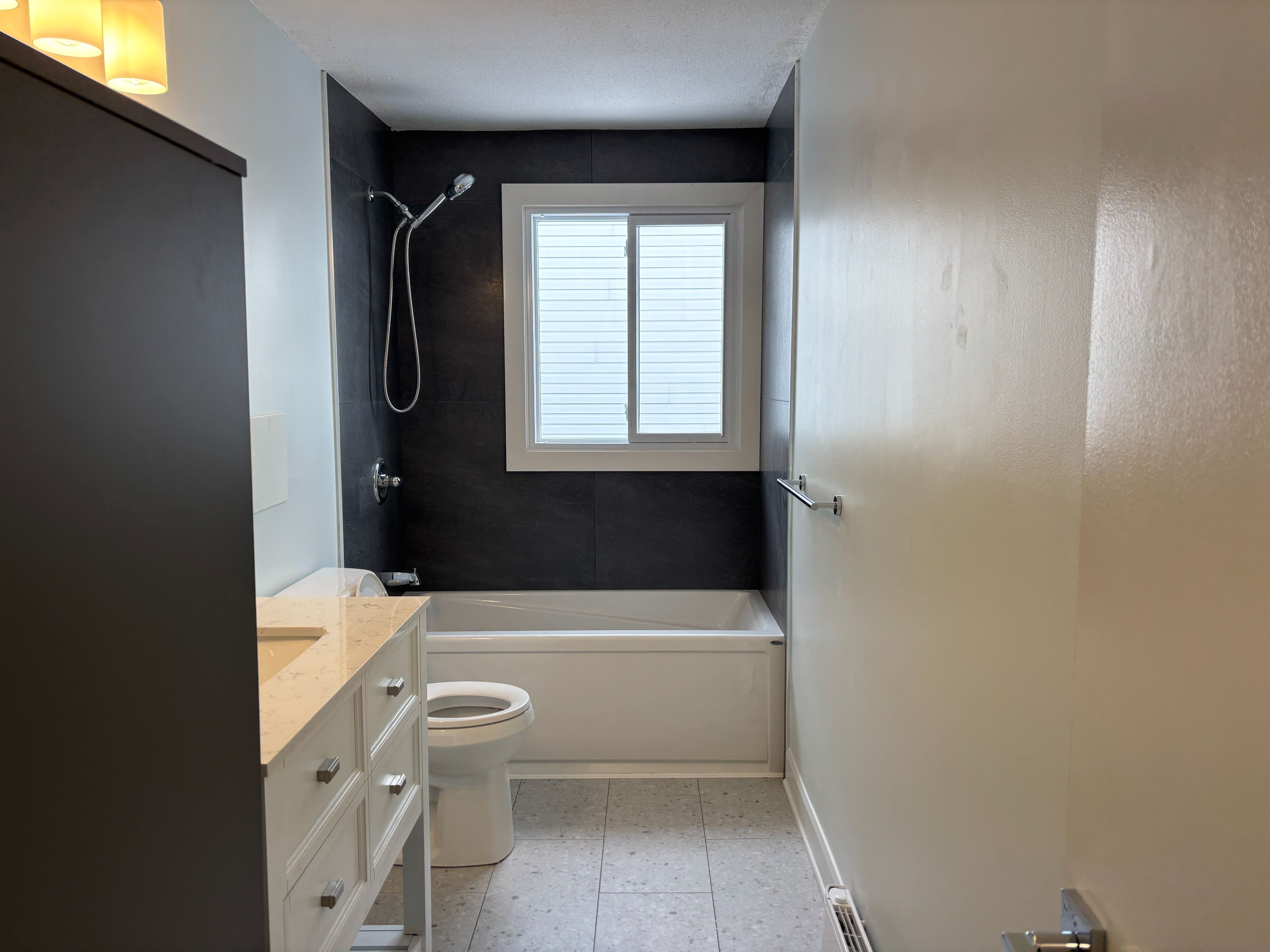 Welcome to this newly renovated 3 bed carpet free upper unit. Be the first to enjoy the new kitchen which boasts, cabinetry with soft-close doors, convenient pot drawers for storage, stainless steel appliances, including a slide-in range, fridge, dishwasher, over-the-range microwave and a european style combined washer/dryer. A convenient pantry is also included. The adjoining dining area provides access to the covered balcony to enjoy your morning coffee during the summer days. The large welcoming living room with its laminate floor is perfect for your large sectional and provide a bright space to relax from the large west facing window. Down the hall, you will find 3 good size bedrooms with ample natural light from south and west facing windows. The new beautiful bathroom features a sleek soaker tub and a beautiful vanity with quartz countertop. The landlord provides snow clearly for the convenient parking at the rear where you will also your own storage locker, perfect for storing tires, bikes, etc. Only 6 min walk to your nearest bus stop.