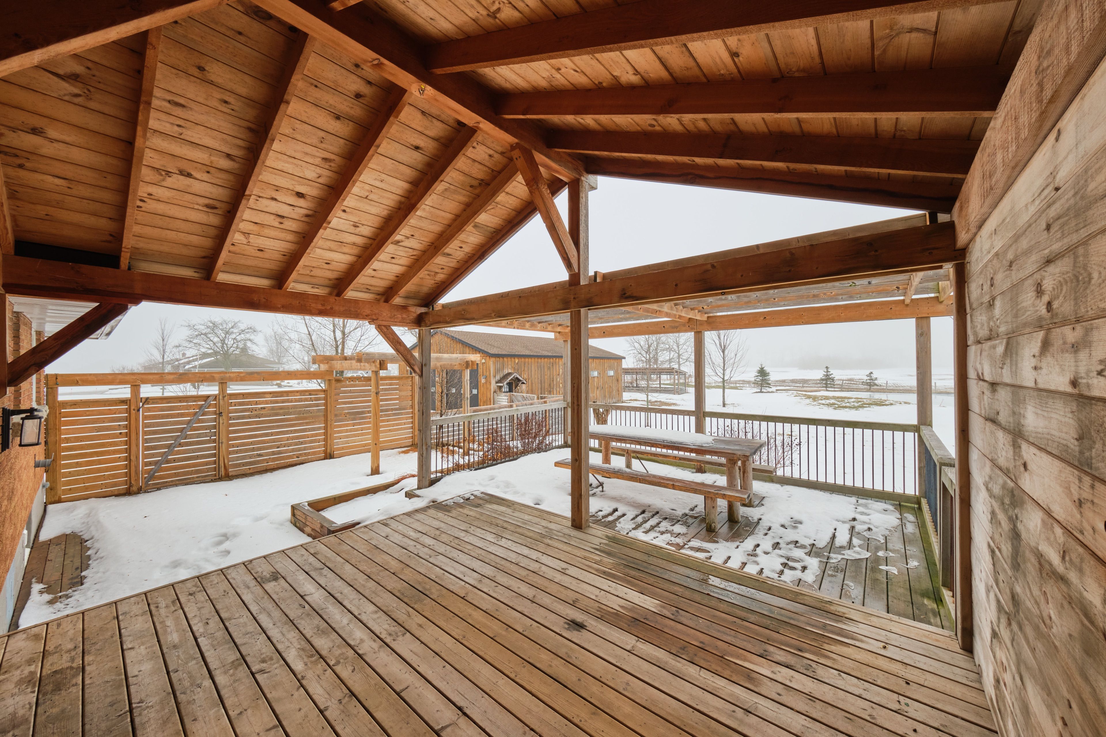 • Fully fenced yard with large deck, patio, and a private pond.