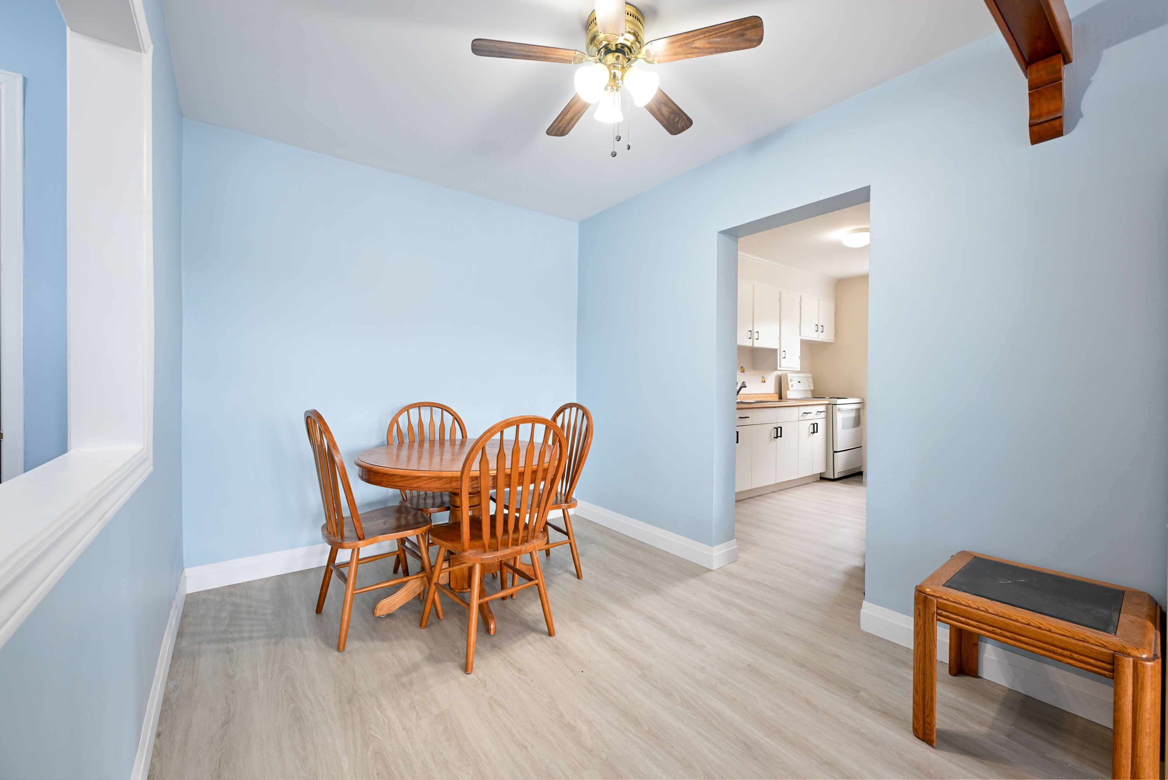 • Updated kitchen featuring ample cabinet space and a mobile island.