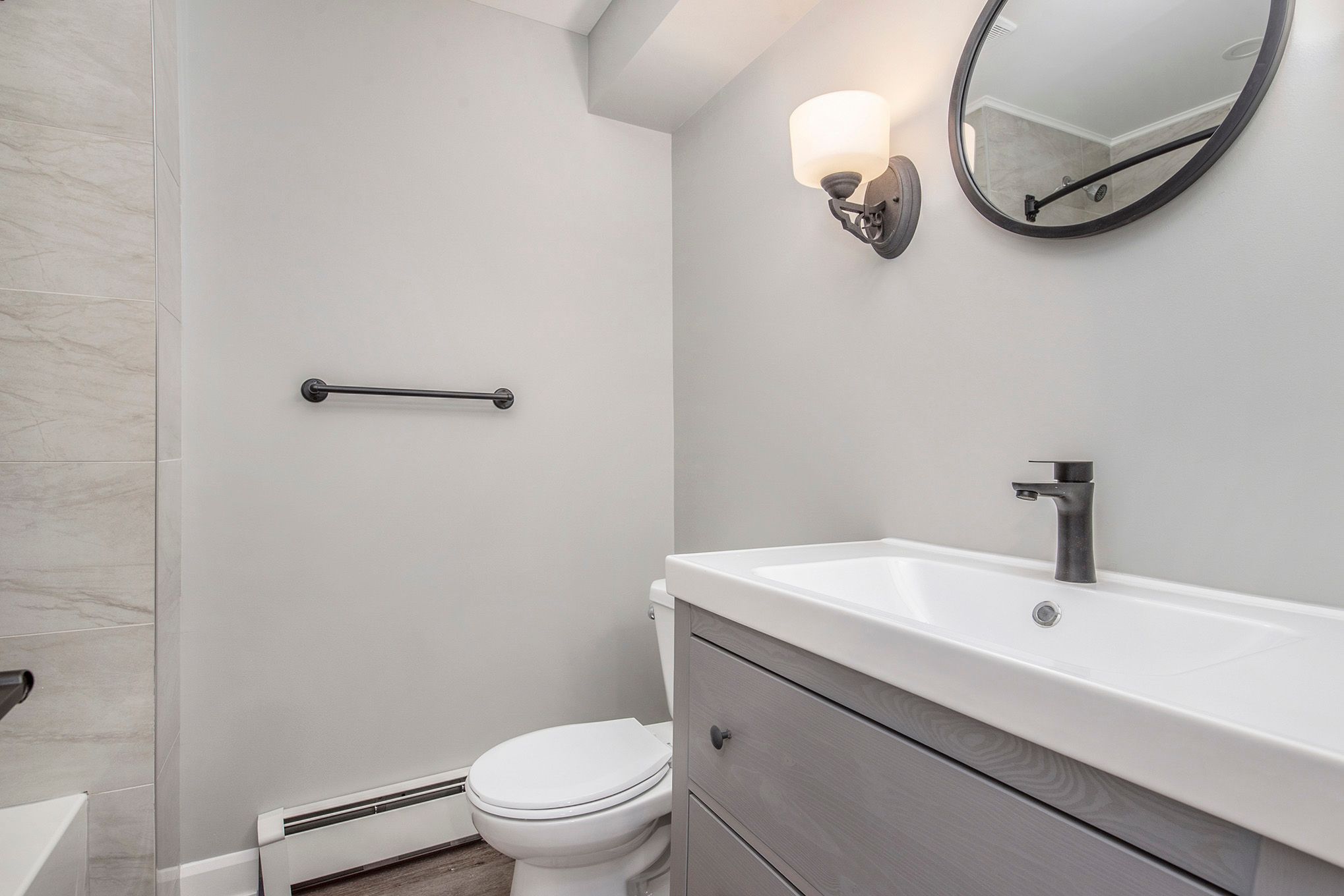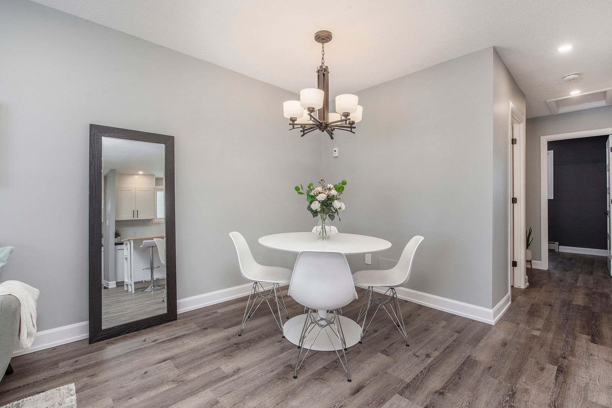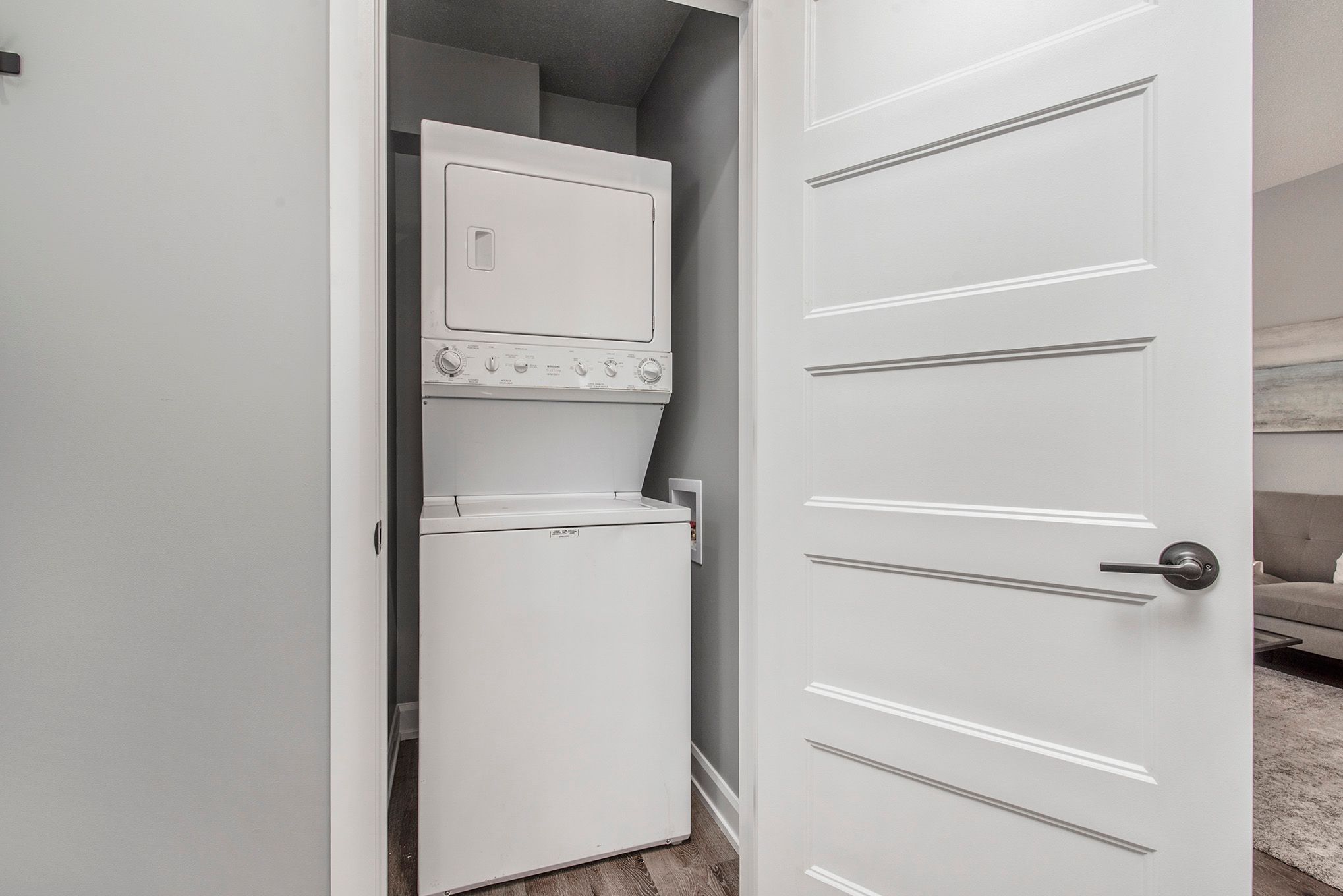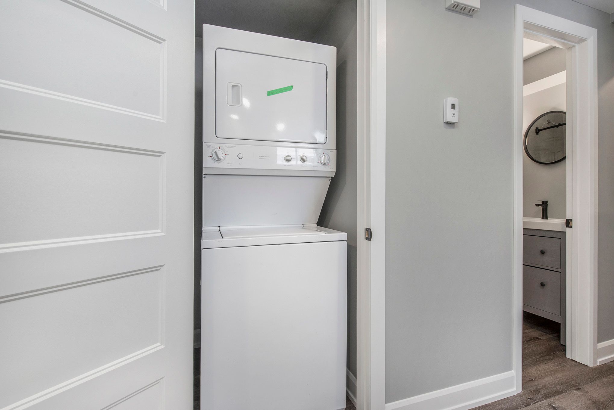• Modern kitchens with quartz countertops and luxury vinyl plank flooring.