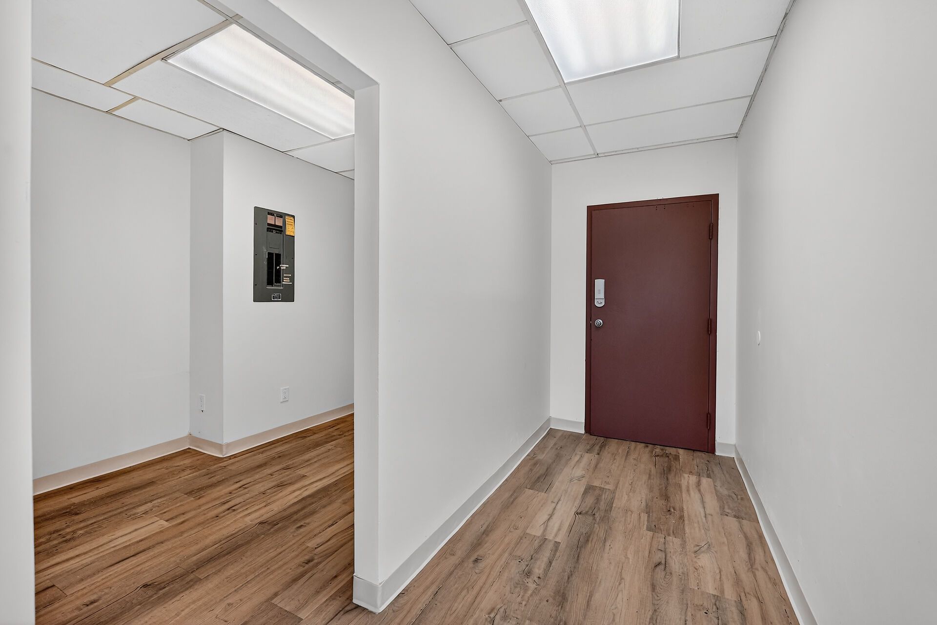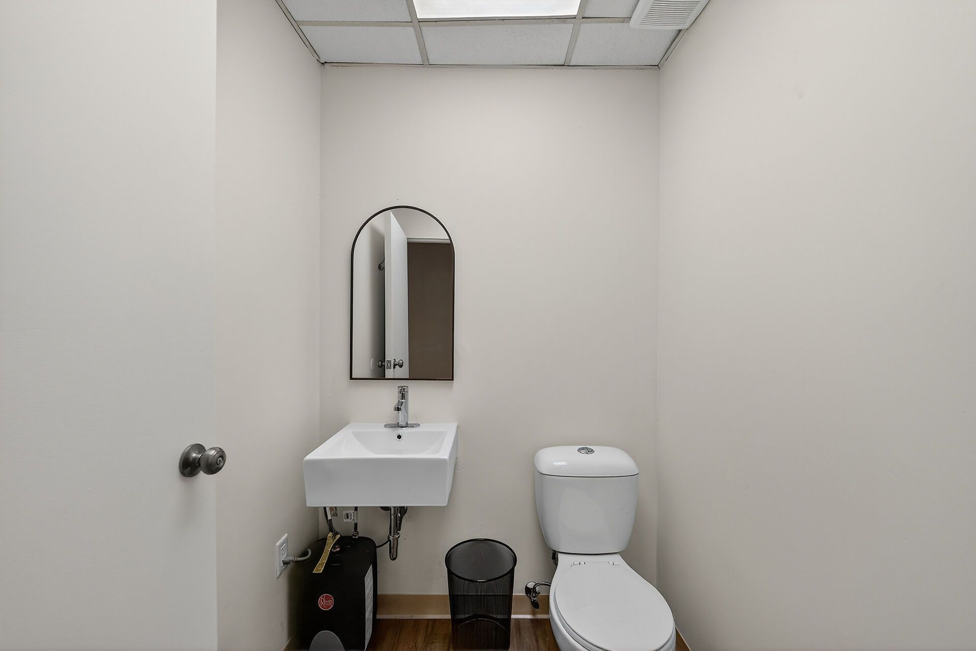 North / west facing, 859 sq ft open-plan second floor corner unit with wrap-around windows plus a private 2 piece. Washroom. A semi-gross lease - tenant pays only hydro, gas and communication plus bi-annual maintenance and repair of hvac system . Street-level over entrance door signage available.