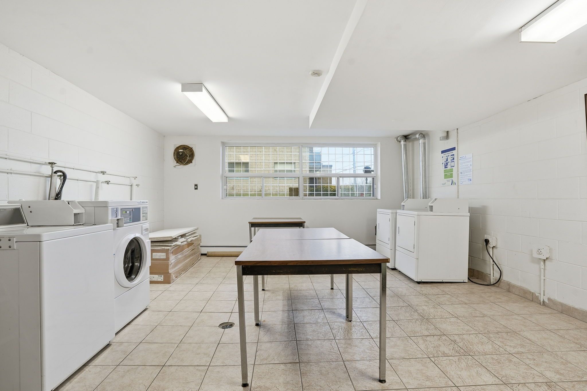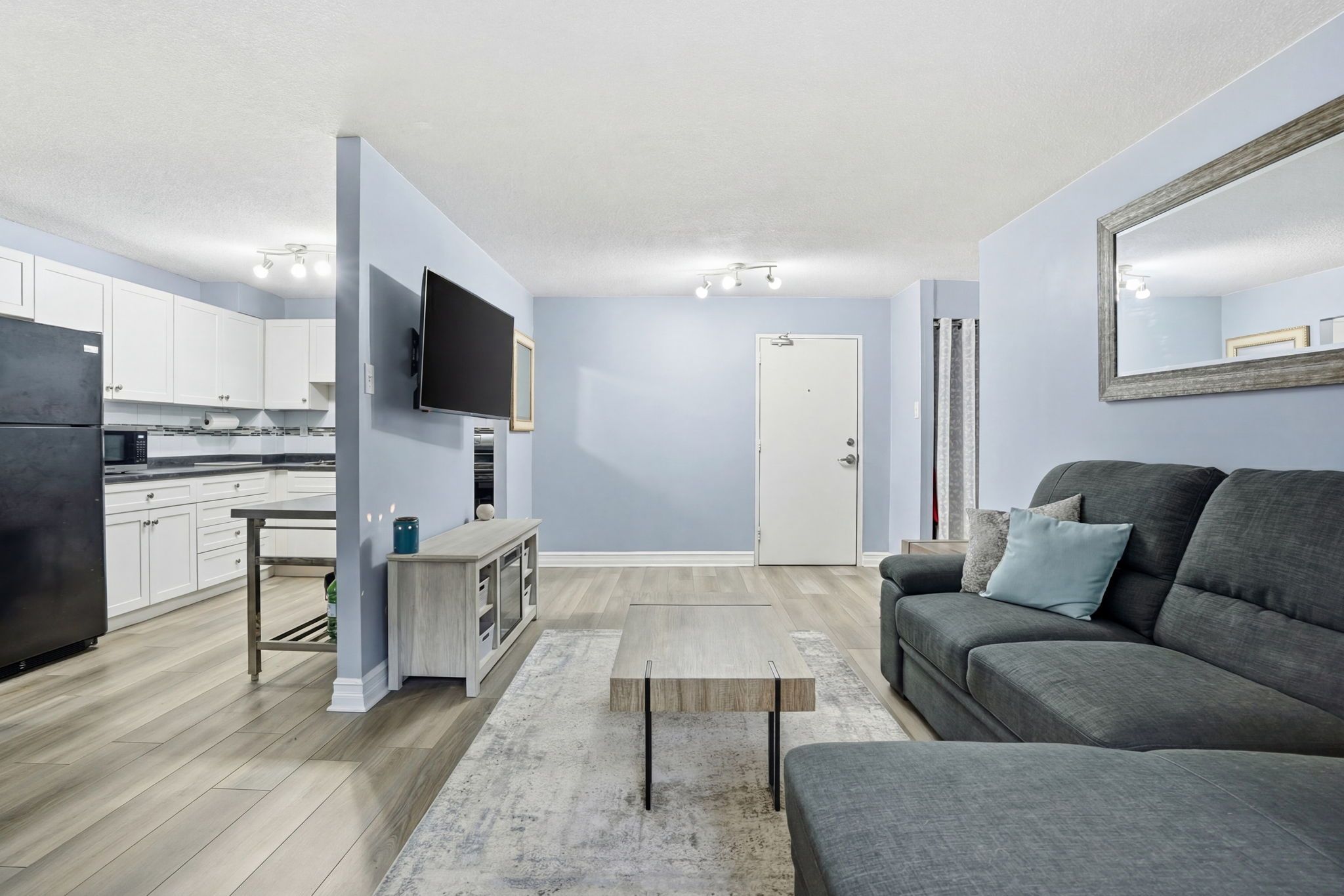 • Bright first-floor condo featuring a spacious, light-filled living area.