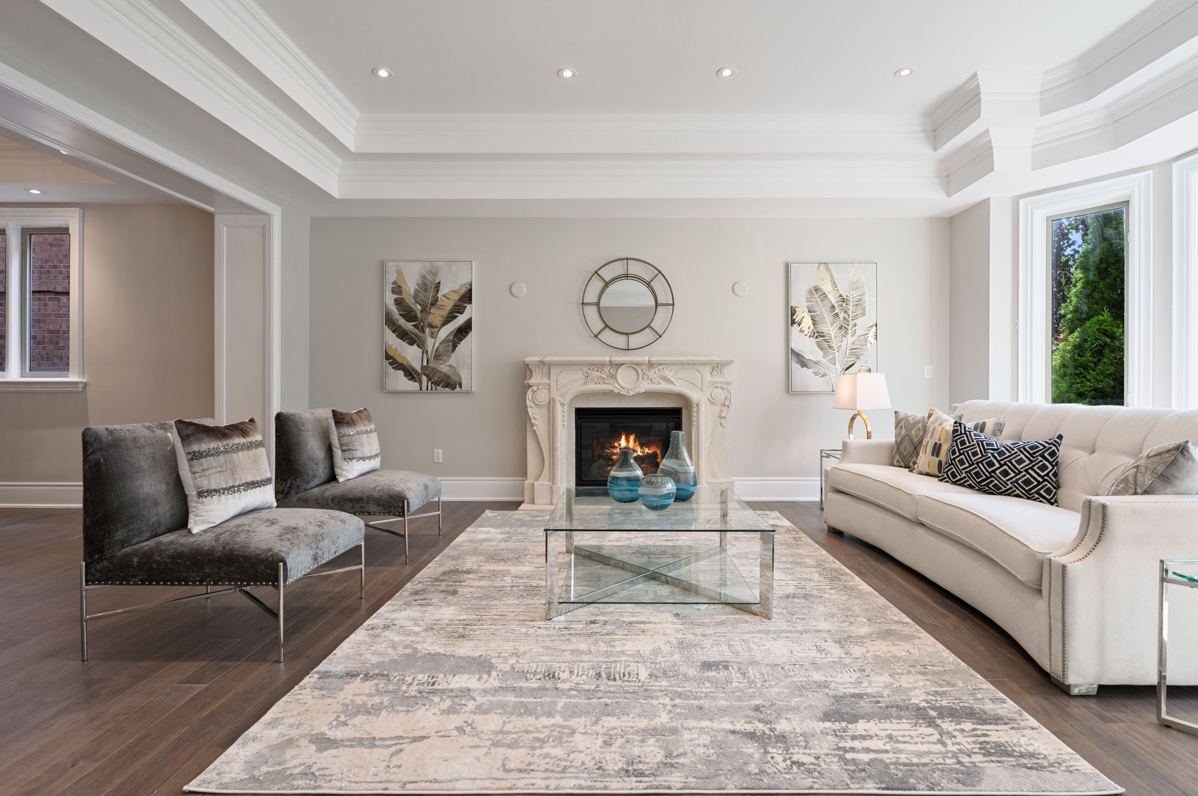 • Open-concept layout with soaring ceilings and detailed finishes.