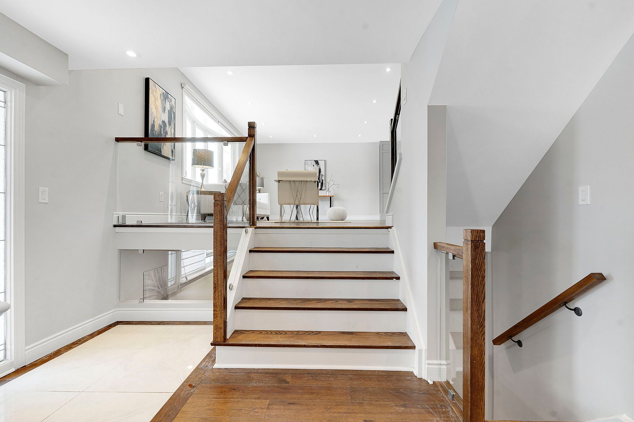 Welcome to this exceptional *detached home*, nestled in one of *oakville's most desirable, neighborhoods*. Offering *4+1 bedrooms, 3 full bathrooms, and a convenient main-floor powder room*, this residence delivers a perfect blend of space, comfort & style. The bright and inviting family room showcases rich hardwood flooring, sleek glass railings, and thoughtfully designed custom lighting. The *open-concept living and dining area* connects seamlessly to a *chef-inspired kitchen* featuring *quartz countertops, a center island, stainless steel appliances, and modern cabinetry*. The home features a convenient *main-floor bedroom* with a closet. Upstairs, you'll find three generously sized bedrooms. The primary bedroom features a built-in closet and a private 3-piece ensuite, creating a comfortable retreat. The two additional bedrooms are bright, well-proportioned, and each includes its own closet, offering excellent functionality for living. The home also boasts *upgraded bathrooms, pot lights throughout, a humidifier, glass railings, a finished basement, and a large crawl space offering abundant storage*. Recent *2023-2024 upgrades* include a wooden deck, fresh interior and exterior paint, cedar fencing, and a newly pave driveway*. Step outside to your *private backyard oasis*, complete with an expansive deck with integrated lighting, all enclosed by a *cedar-fenced yard* perfect for relaxing or hosting gatherings. An *oversized garage* combined with a *private driveway accommodating 7+ vehicles* adds exceptional convenience. Ideally located within walking distance to *top-rated schools, shopping, dining, oakville's charming downtown, the lake, and all the vibrant amenities*. Commuters will appreciate **quick access to major highways and trafalgar go station. A rare opportunity to own a beautifully updated home in a truly prime oakville location.