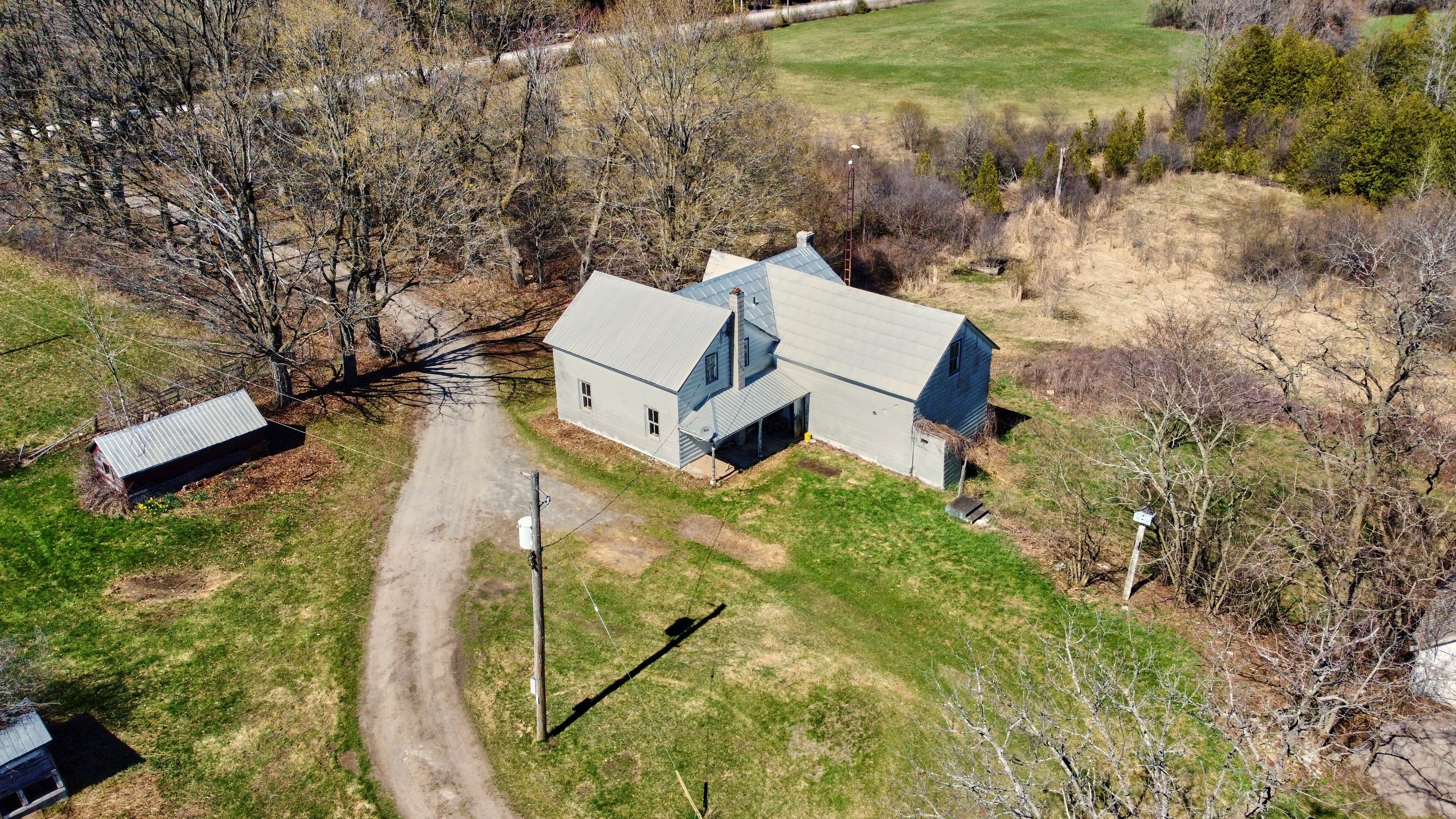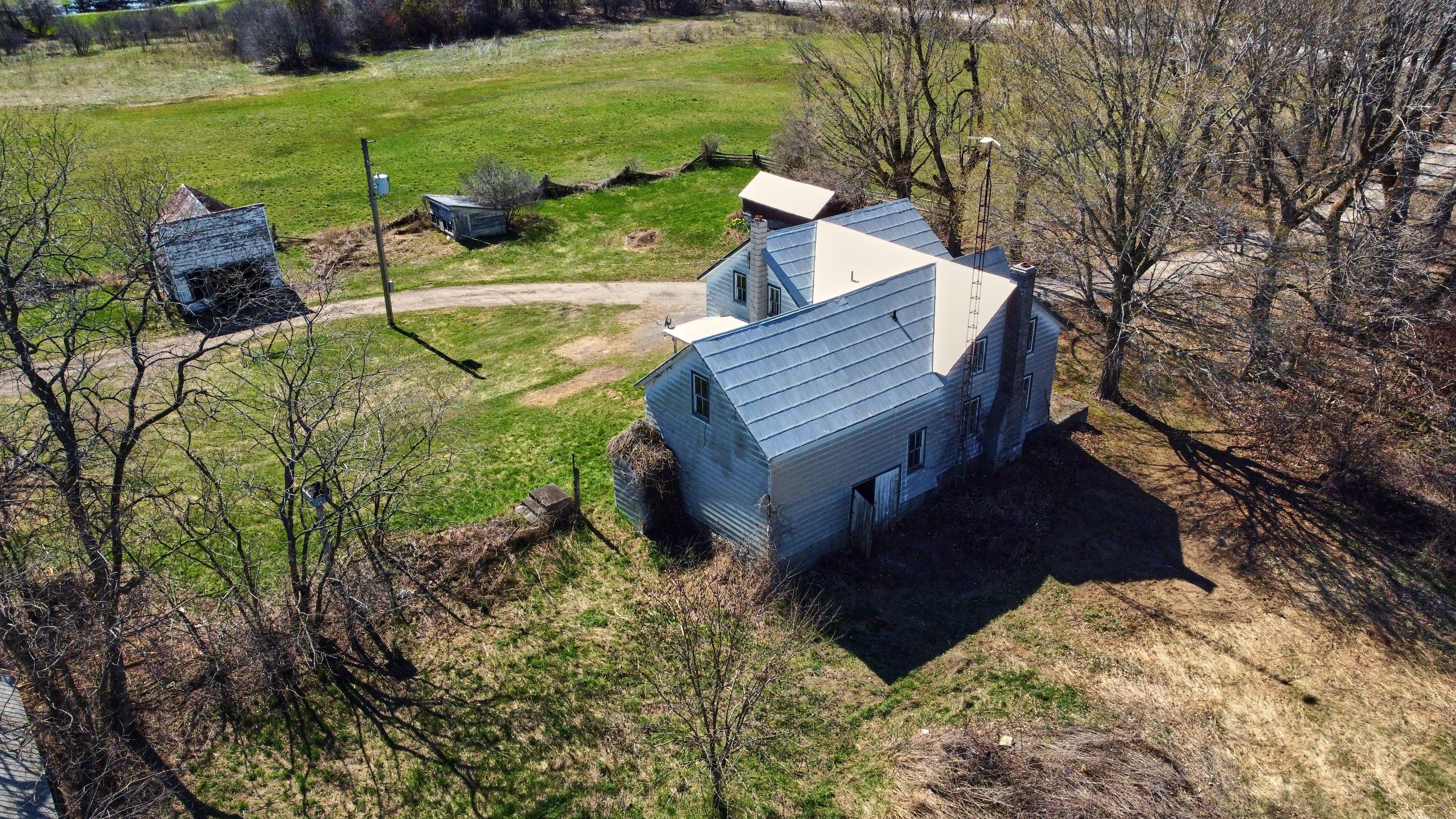 • Existing farmhouse and outbuildings offer renovation or rebuilding opportunities.