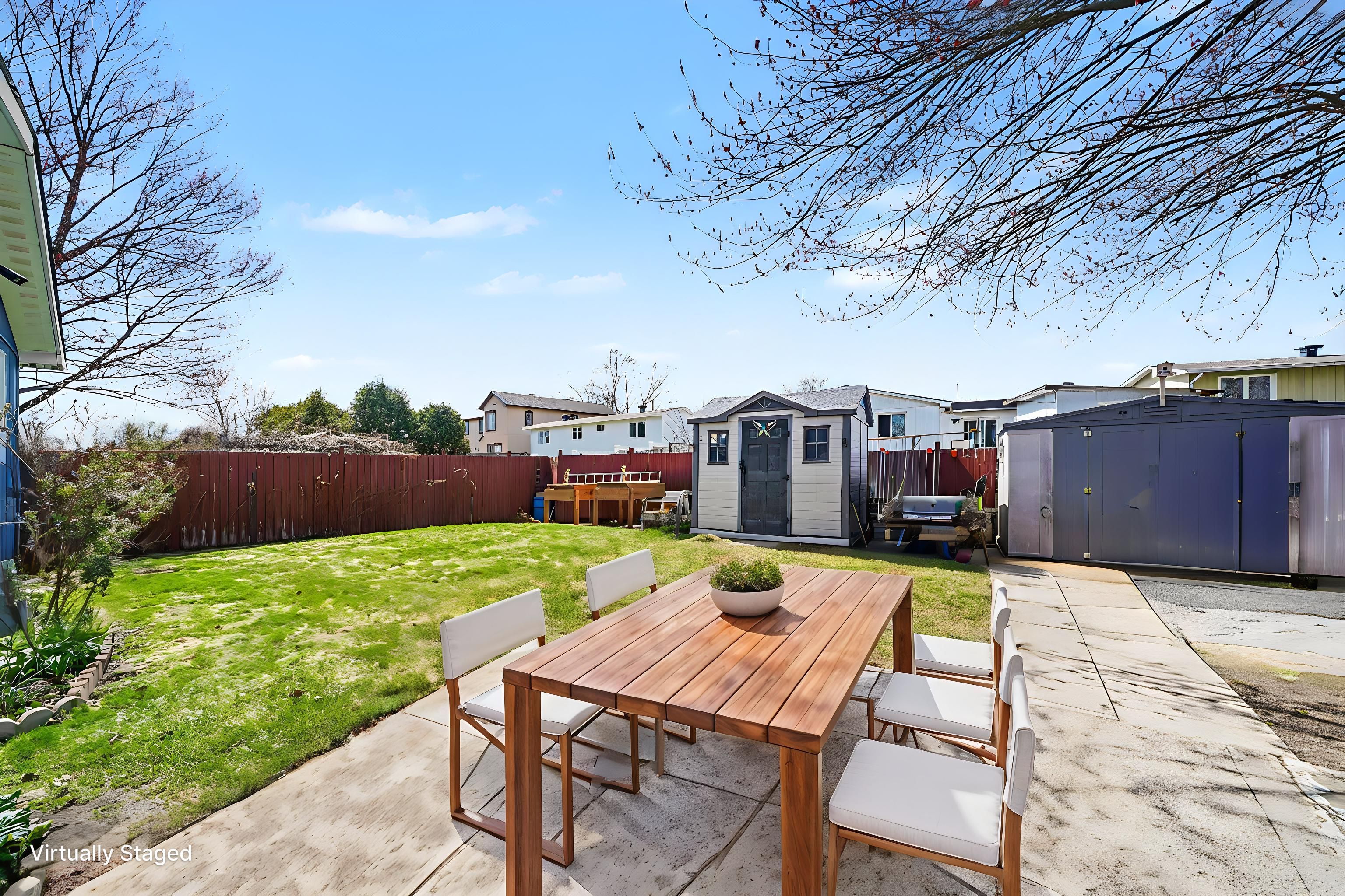 • Large fenced backyard perfect for privacy, gardening, and entertaining.