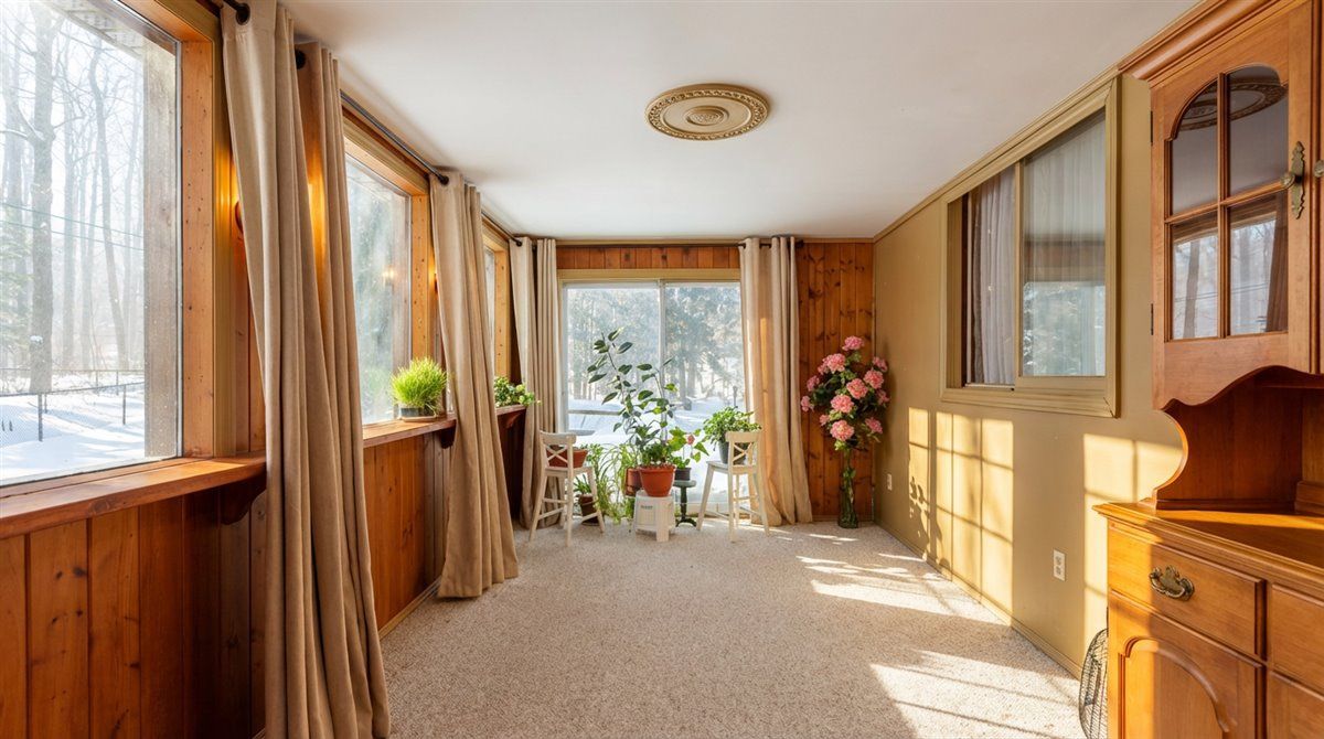 Dreaming of country living without sacrificing convenience? This bright and welcoming bungalow in zephyr offers the best of both worlds, just 5 mins. To mt. Albert and approx 15 mins. To downtown uxbridge. Set on just under half an acre and surrounded by mature trees and wildlife, the property feels like a private cottage retreat. The main floor features three bedrooms, a 4 piece bath, and generous living spaces filled with natural light. Cozy up by the wood burning fireplace in the living room, while enjoying peaceful views. The kitchen connects to a charming breakfast area with a walkout to the front deck while the dining and rear family room offer ideal spaces to entertain with a walkout to the backyard and deck. The finished basement provides excellent potential for additional living space or in-law suite, complete with a bar and walkout to greenhouse and patio. Ample storage and a detached double garage make this home perfect for hobbyists and nature lovers alike.