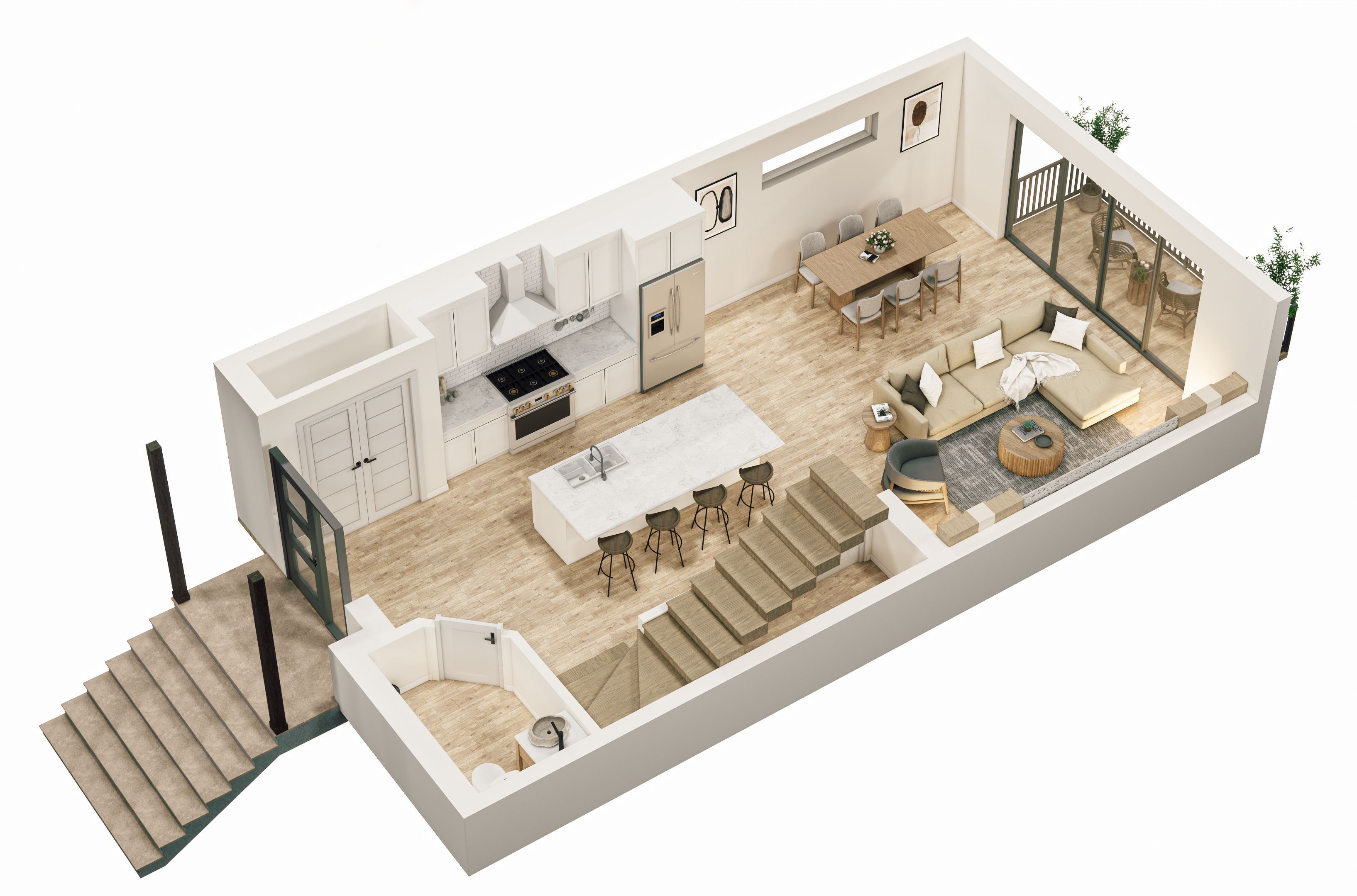 • Bright open-concept layout with a 12-foot patio door for natural light.