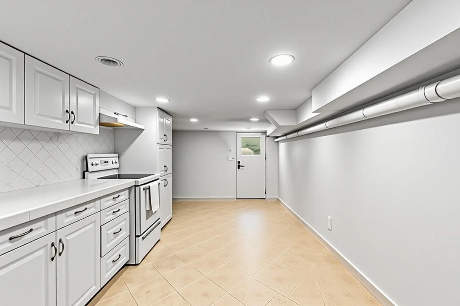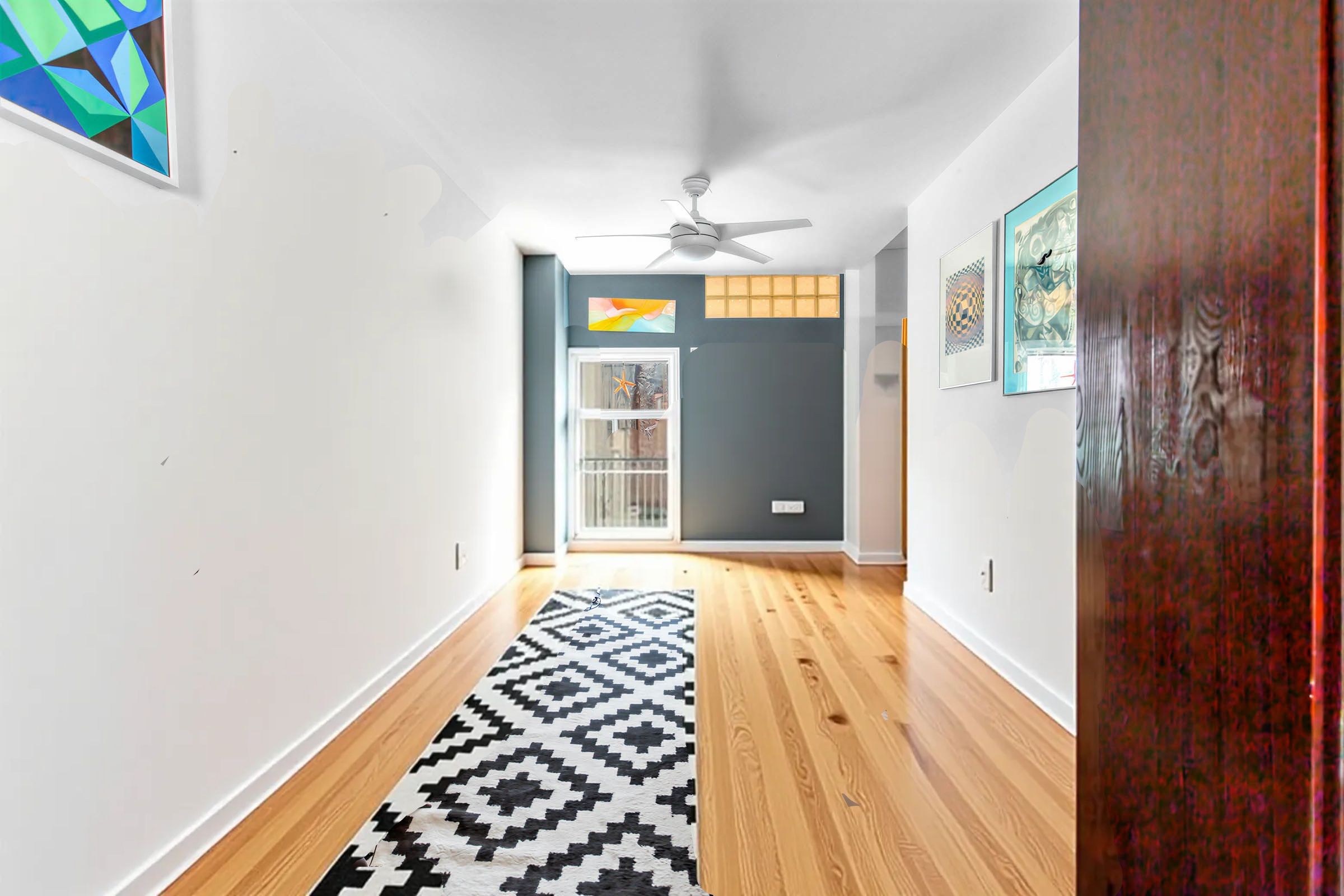 • Bright interior with high ceilings, skylights, and natural light-filled spaces.