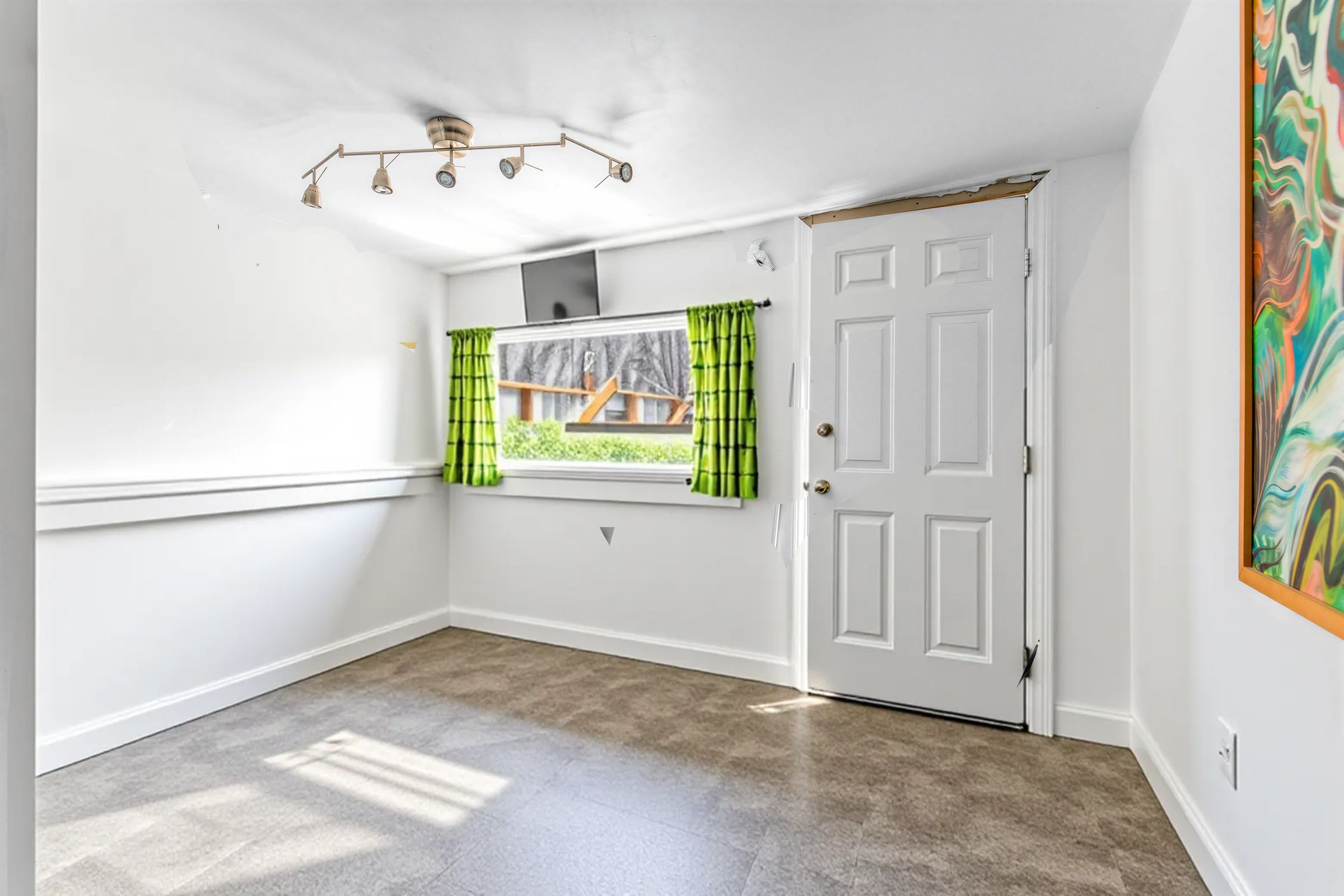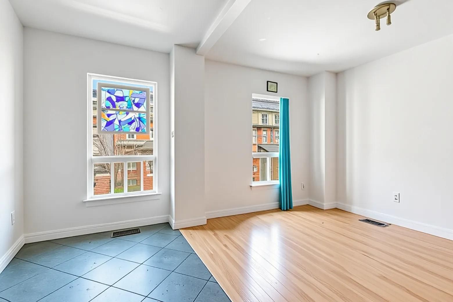 • Spacious interior with high ceilings and natural light throughout.