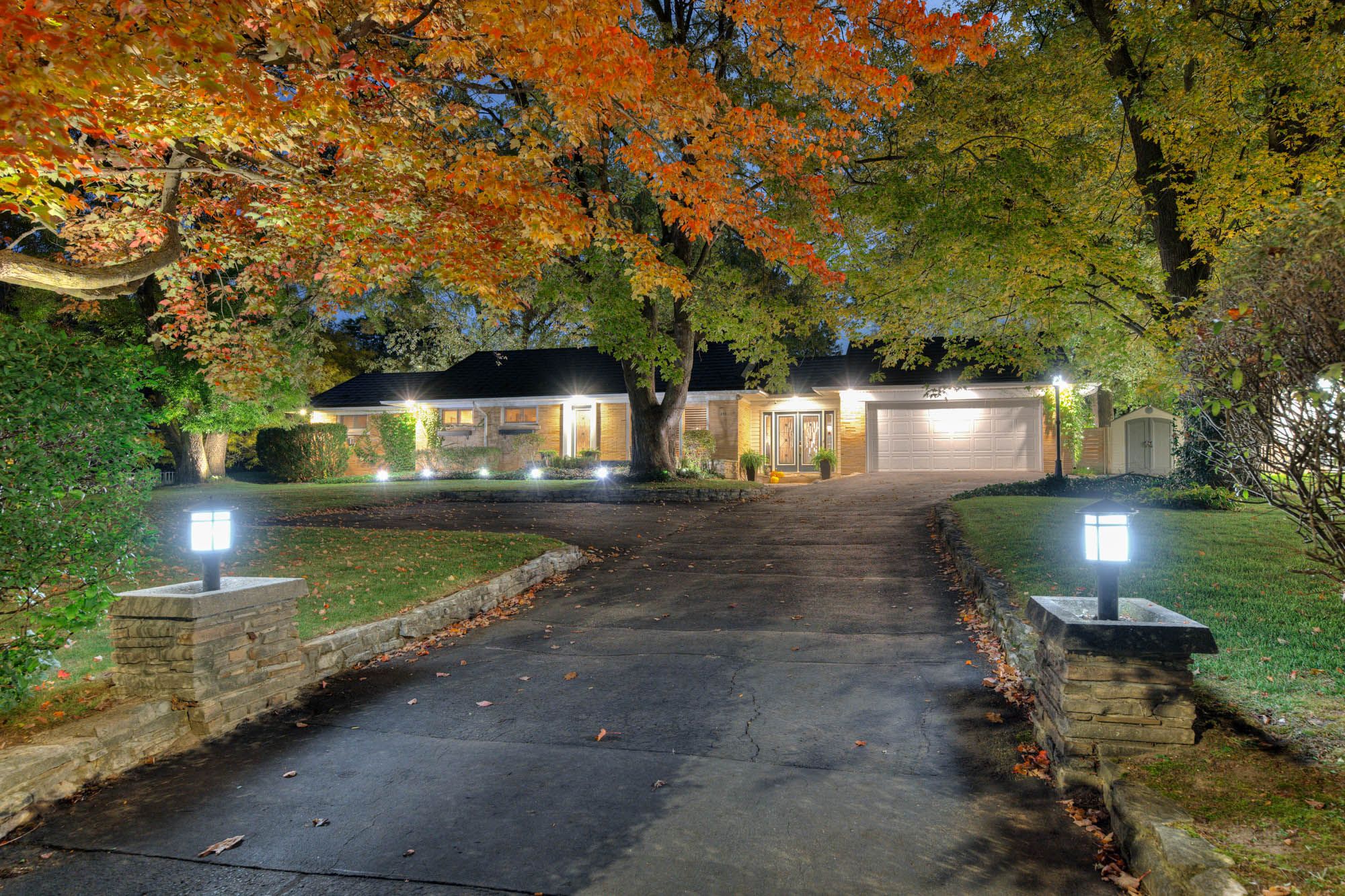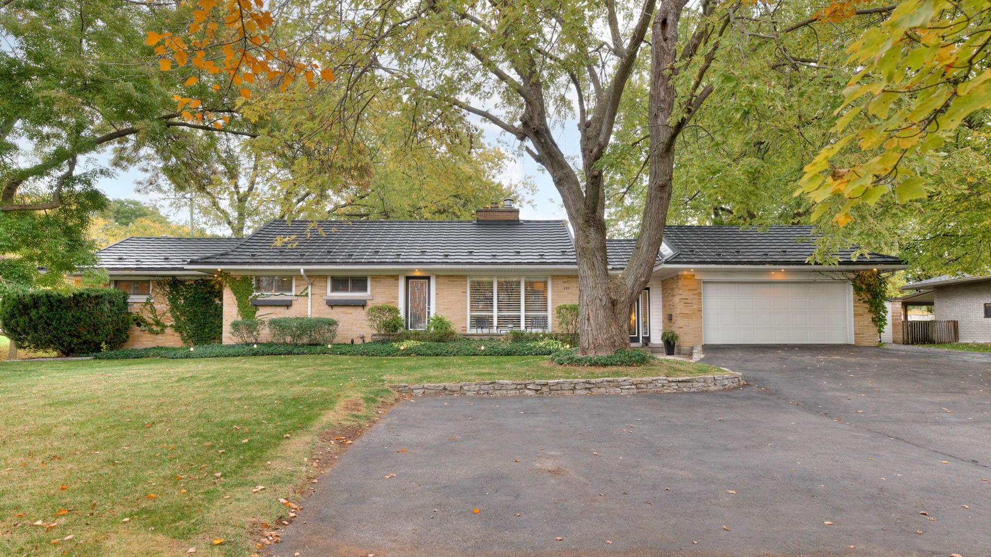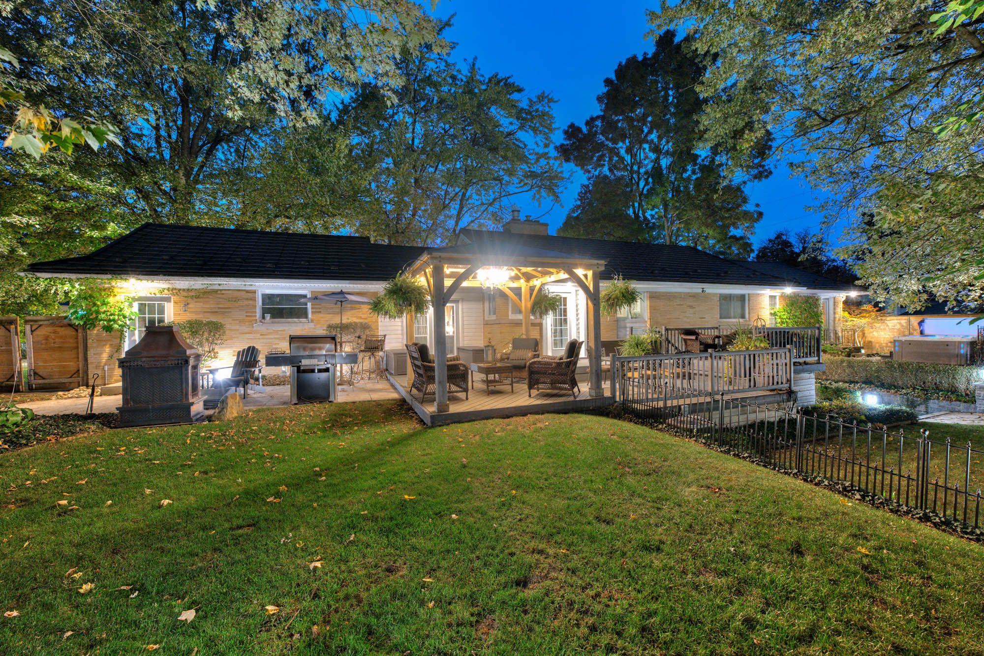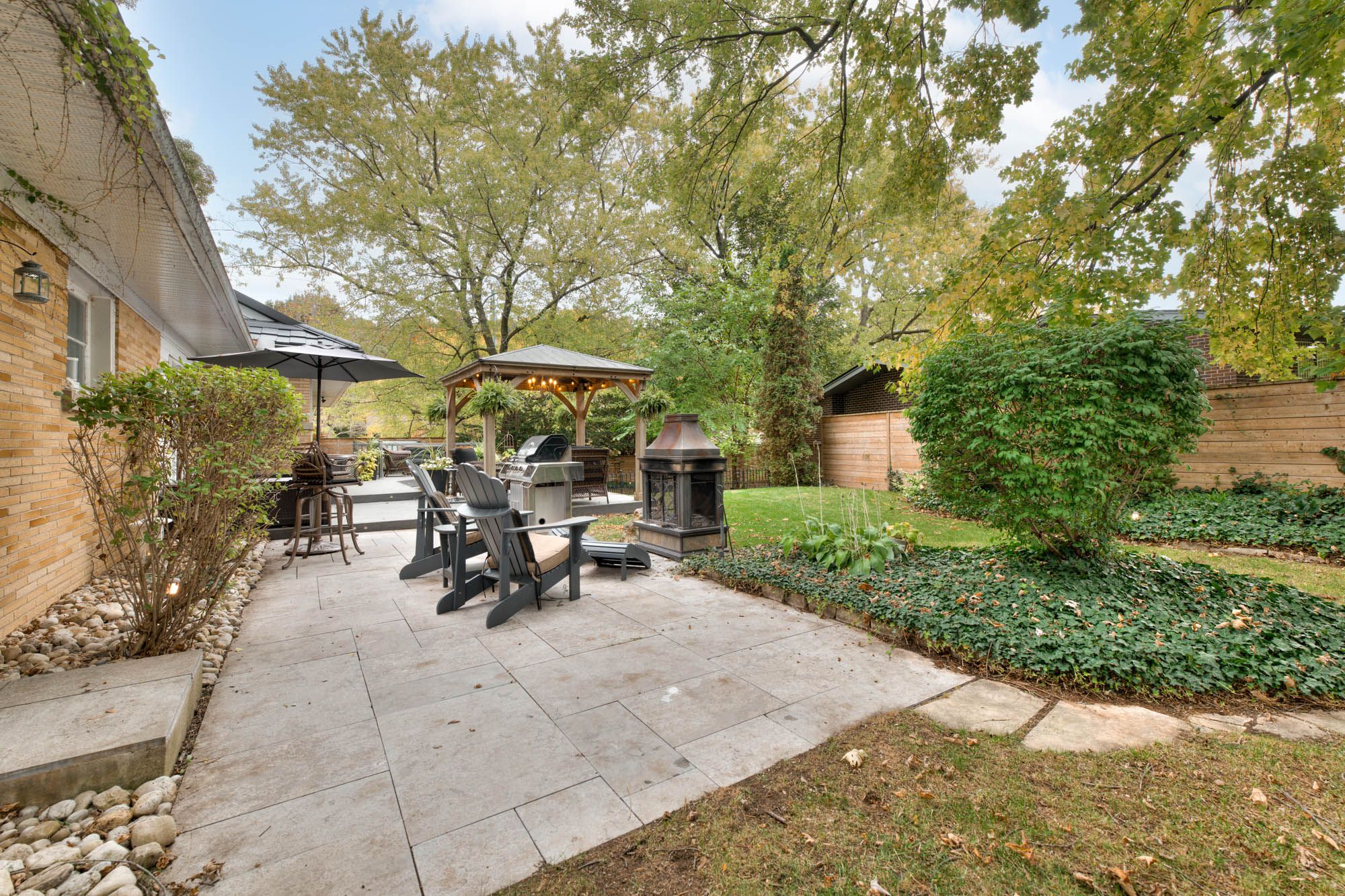 Perfect in every season, this stylish bungalow on a . 40-acre lot embodies mid-century modern charm. Professionally landscaped the backyard feels like a secluded private country retreat, yet in the heart of the city. The outdoor space is designed for entertaining, with newer fencing, a three-tier deck, and two expansive granite patios on off the foyer and one off the walkout basement. From the steel roof with leaf guards to the landscape lighting and the gas line for the bbq, every detail has been carefully considered. The grand foyer showcases a coffered ceiling and provides easy access to both the garage and the yard. Quality is evident throughout the bright home, with 3 gas fireplaces, smart-lighting, stone and hardwood flooring, crown moldings, and california shutters. The upgraded kitchen boasts tumbled marble, classic white and antique green cabinetry, stainless steel appliances, and a built-in bar-height peninsula for an ideal workstation. The dining area features a dry bar with matching stone countertops and built-ins. The primary suite is complete with a gas fireplace, a walkout to the 12 x 12 composite deck, dual closets, and a spa-inspired ensuite. This 5 piece bathroom hosts the fully customized walk-in closet, a large glass shower, a standalone soaker tub, and an exposed angel stone wall. A second bedroom and a guest powder room complete the upper level. The walkout basement offers over 900 square feet of beautifully finished living space, including large windows, a gas fireplace, a full bathroom, and a contemporary kitchenette, ideal for extended family. The granite patio from the walkout basement hosts stone retaining walls. The home is protected by a security system and a 50-year warranty on the steel roof. The heated and insulated oversized double garage with workshop space is a dream for hobbyists. This property lets you live as if you've already escaped the city, without ever leaving the comfort of your own home. Only a 15 min walk to uptown.