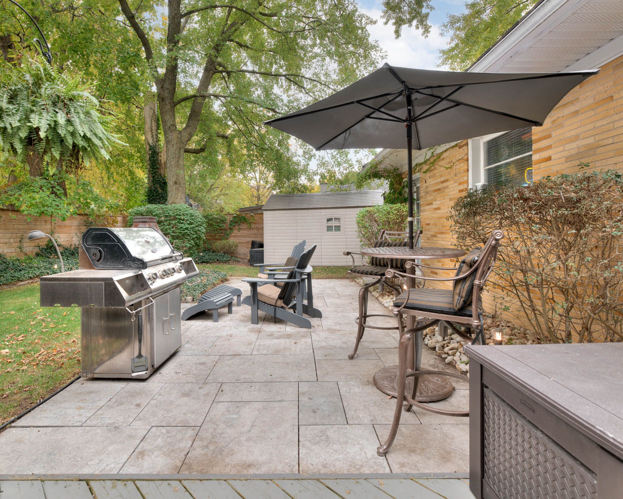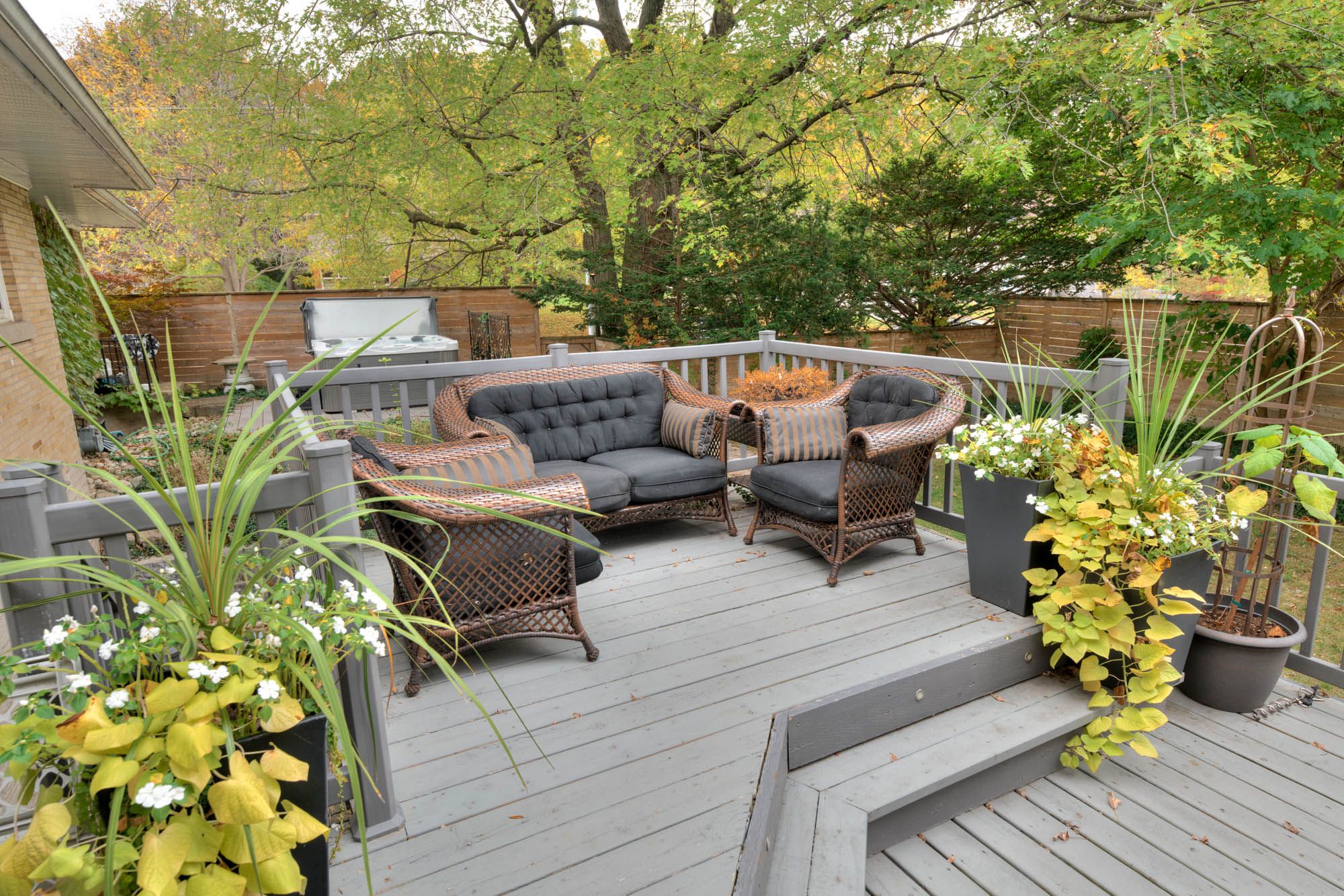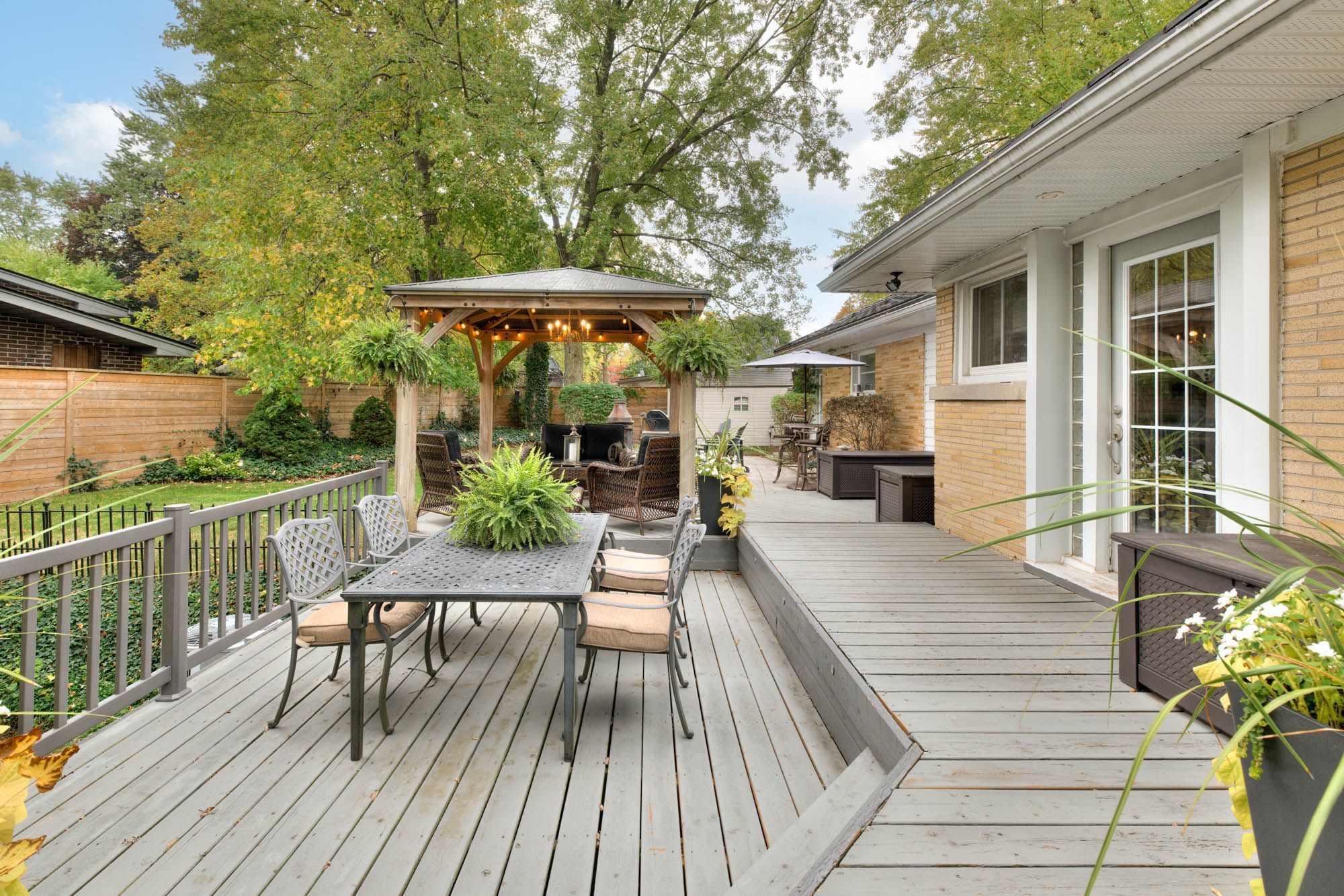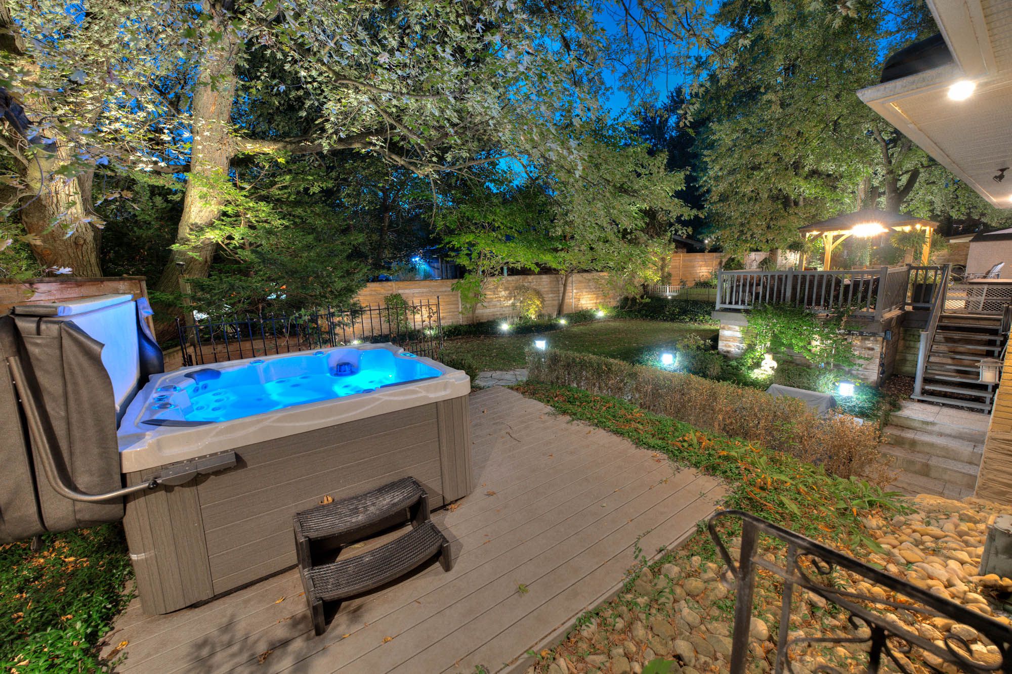 • Professionally landscaped backyard with three-tier deck and granite patios.