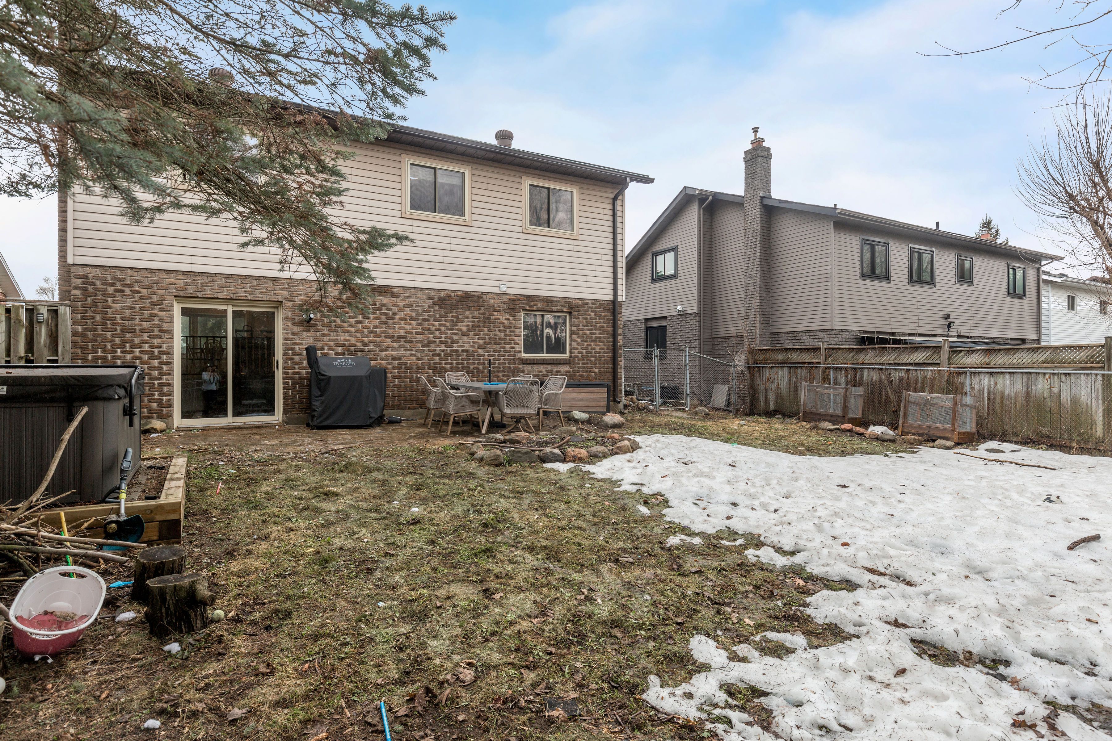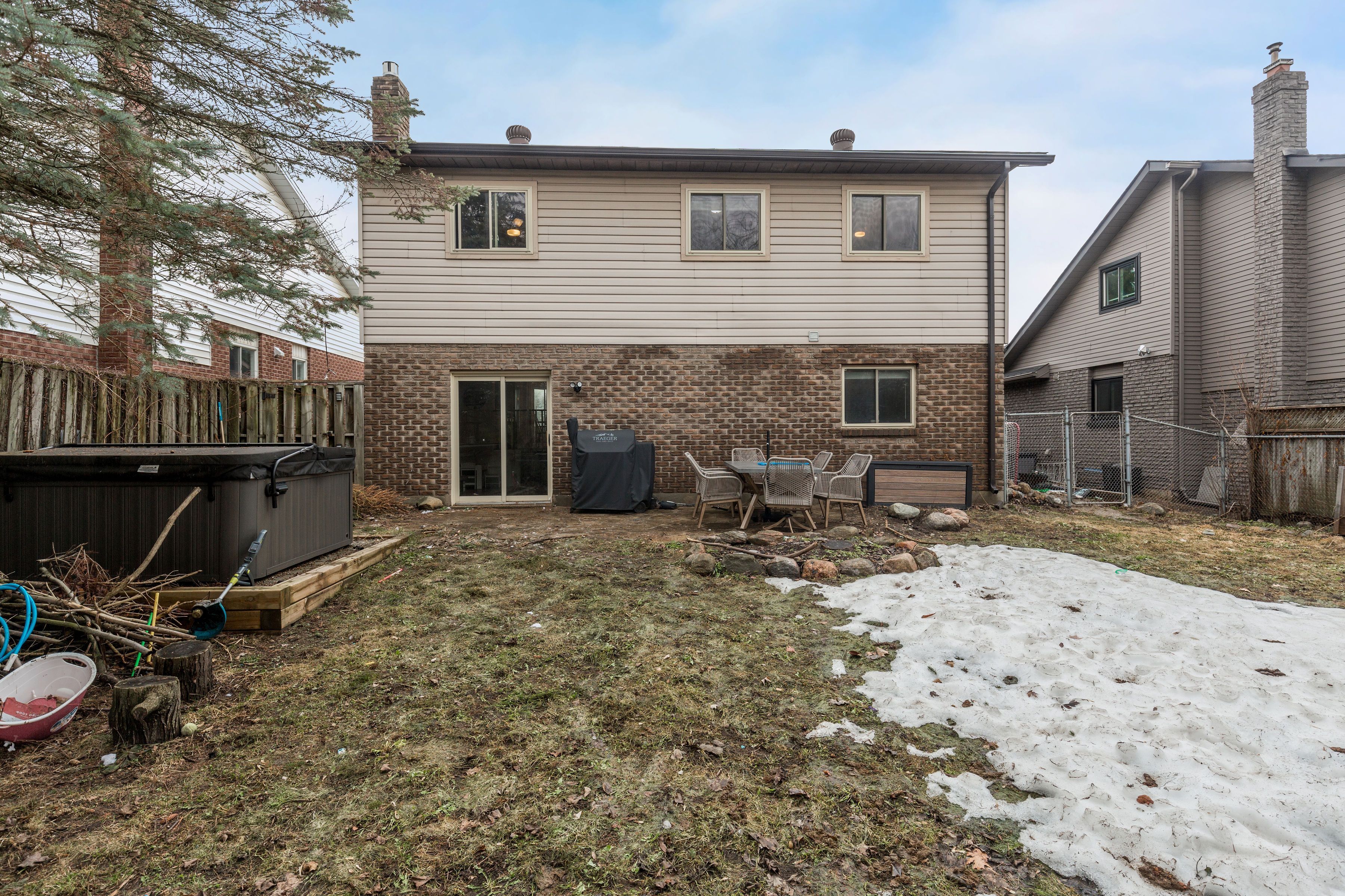 Discover this gorgeous 4-level back-split, perfectly situated in barrie's sought-after allandale neighbourhood. Featuring four bedrooms and two bathrooms, this home offers abundant space for the whole family. Custom acacia hardwood floors flow throughout the main and lower levels, complementing the updated kitchen with an impressive quartz waterfall island ideal for cooking and entertaining. The living room opens to a private, fenced backyard with a stone patio and mature perennial gardens, a firepit and backing onto a tranquil ravine with no neighbors behind. Just steps from scenic walking trails and the natural beauty of lackies bush, this home blends privacy with lifestyle. Additional highlights include a main-floor laundry with direct access to a double-car garage and a rare six-car driveway. Conveniently located close to top schools, shopping, public transit, and with easy access to hwy 400 for commuters and cottage-goers alike. Spacious, stylish, and ideally situated-this exceptional home is truly not to be missed!
