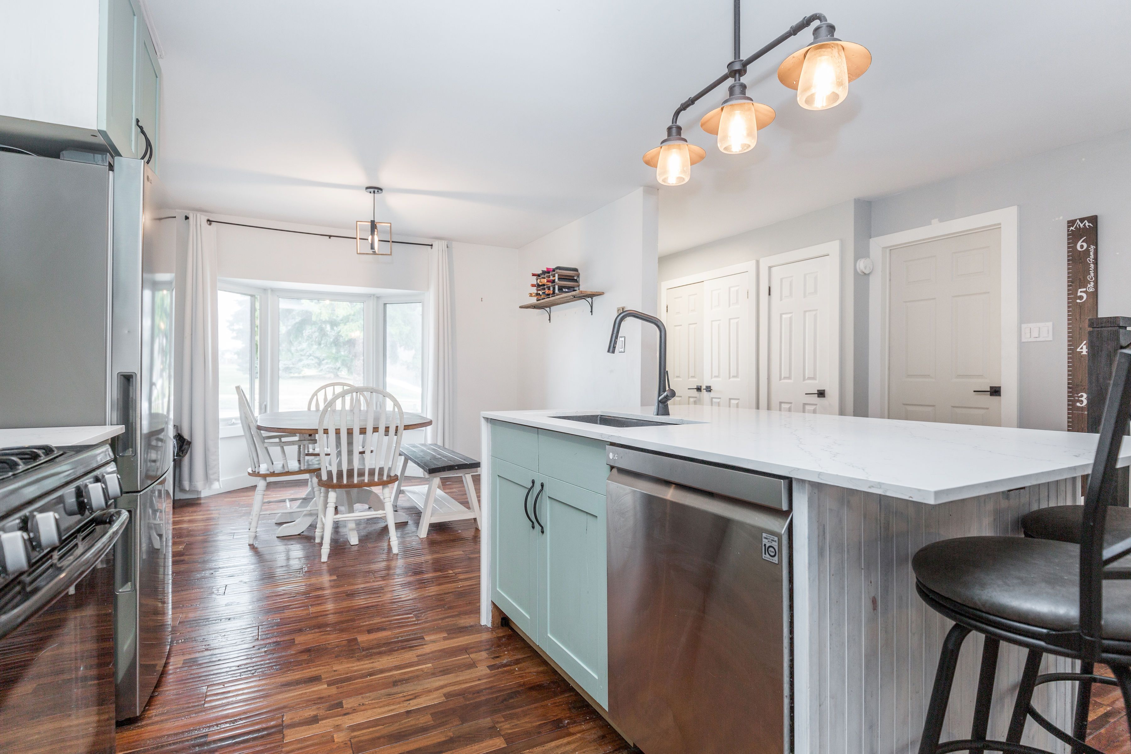 • Updated kitchen with a quartz waterfall island for entertaining.
