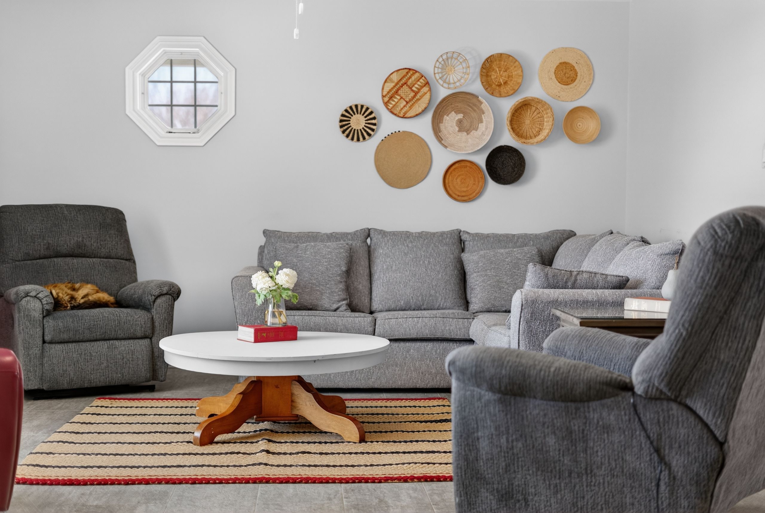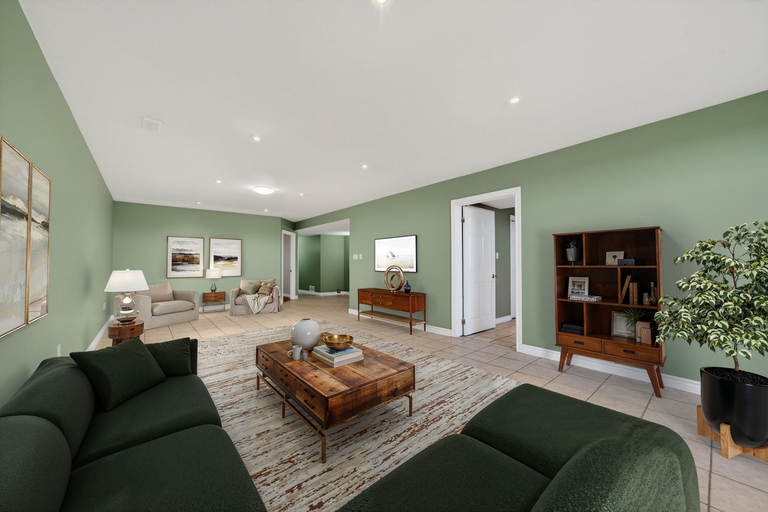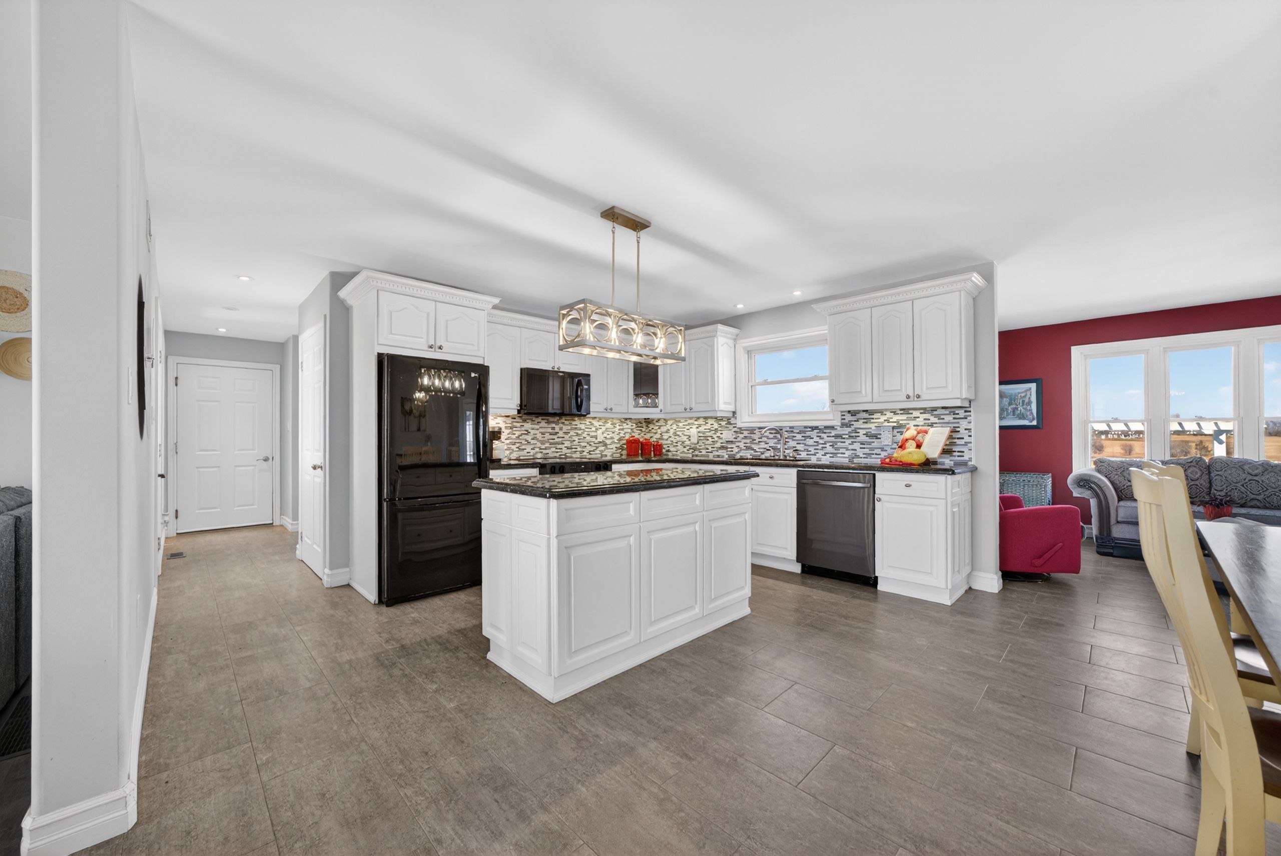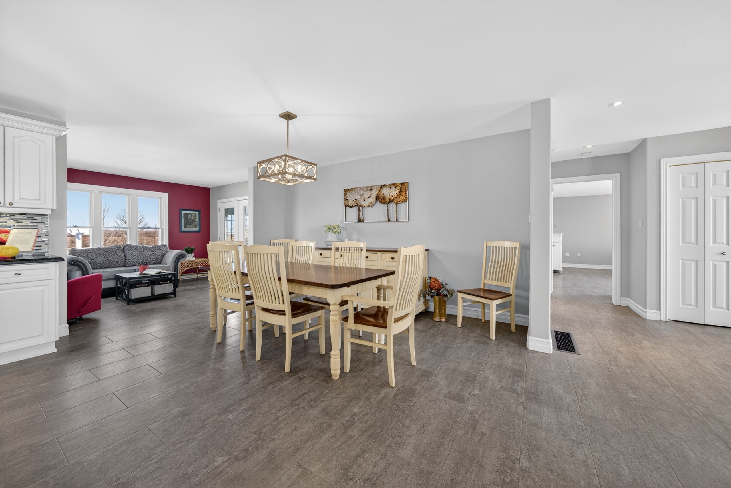 • Open-concept layout with a bright kitchen, dining, and living area.