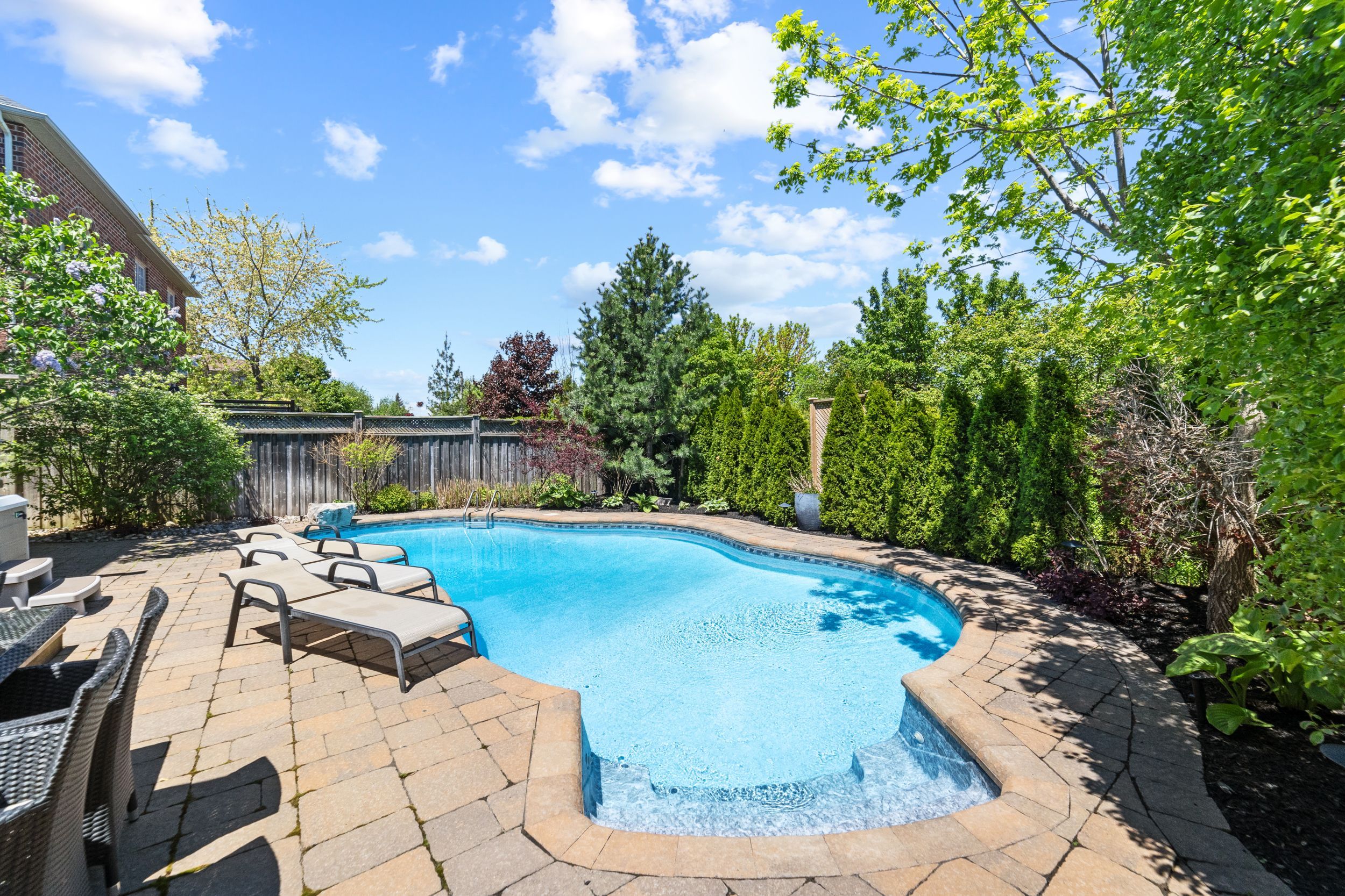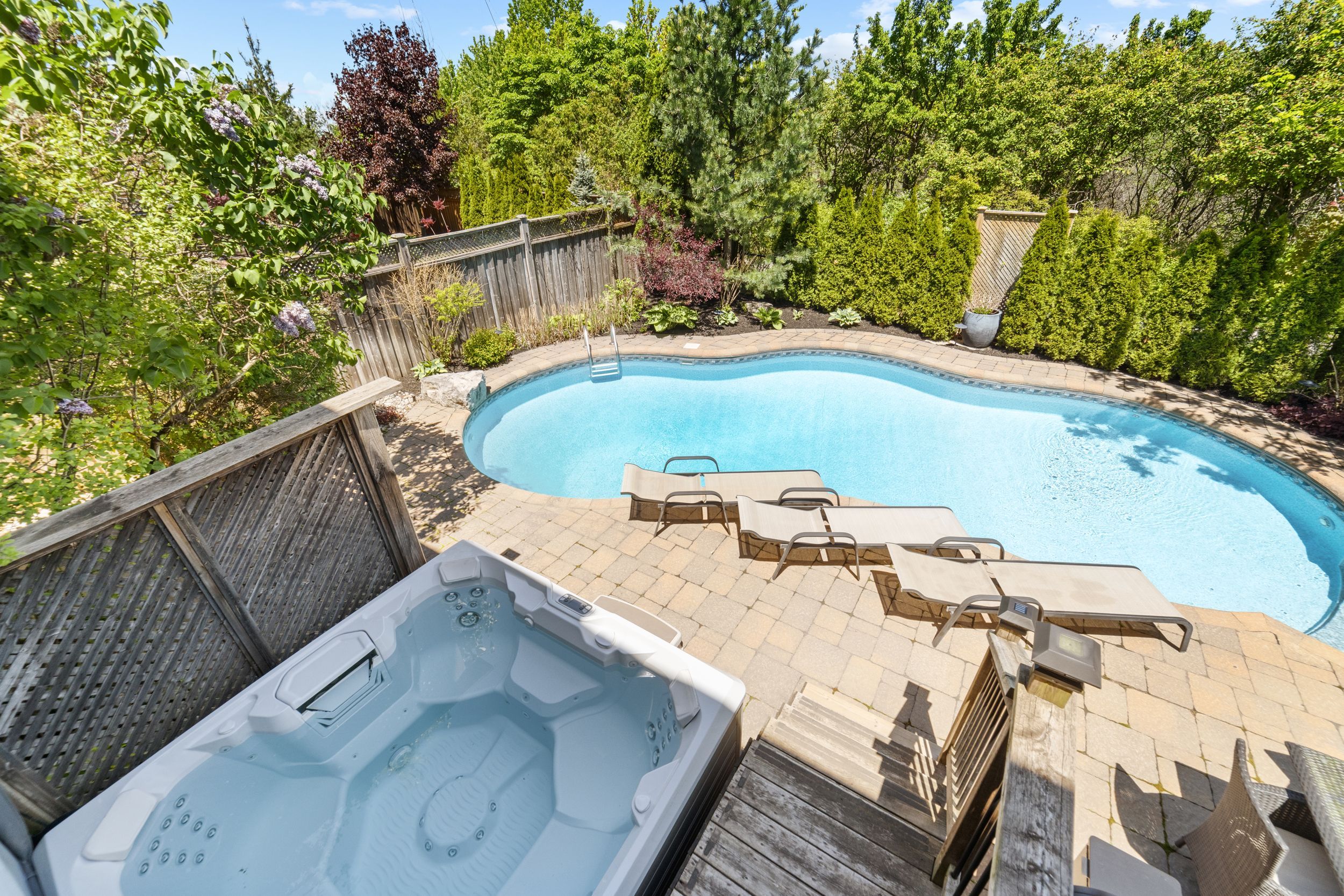 • Stunning backyard oasis with a saltwater pool and hot tub.