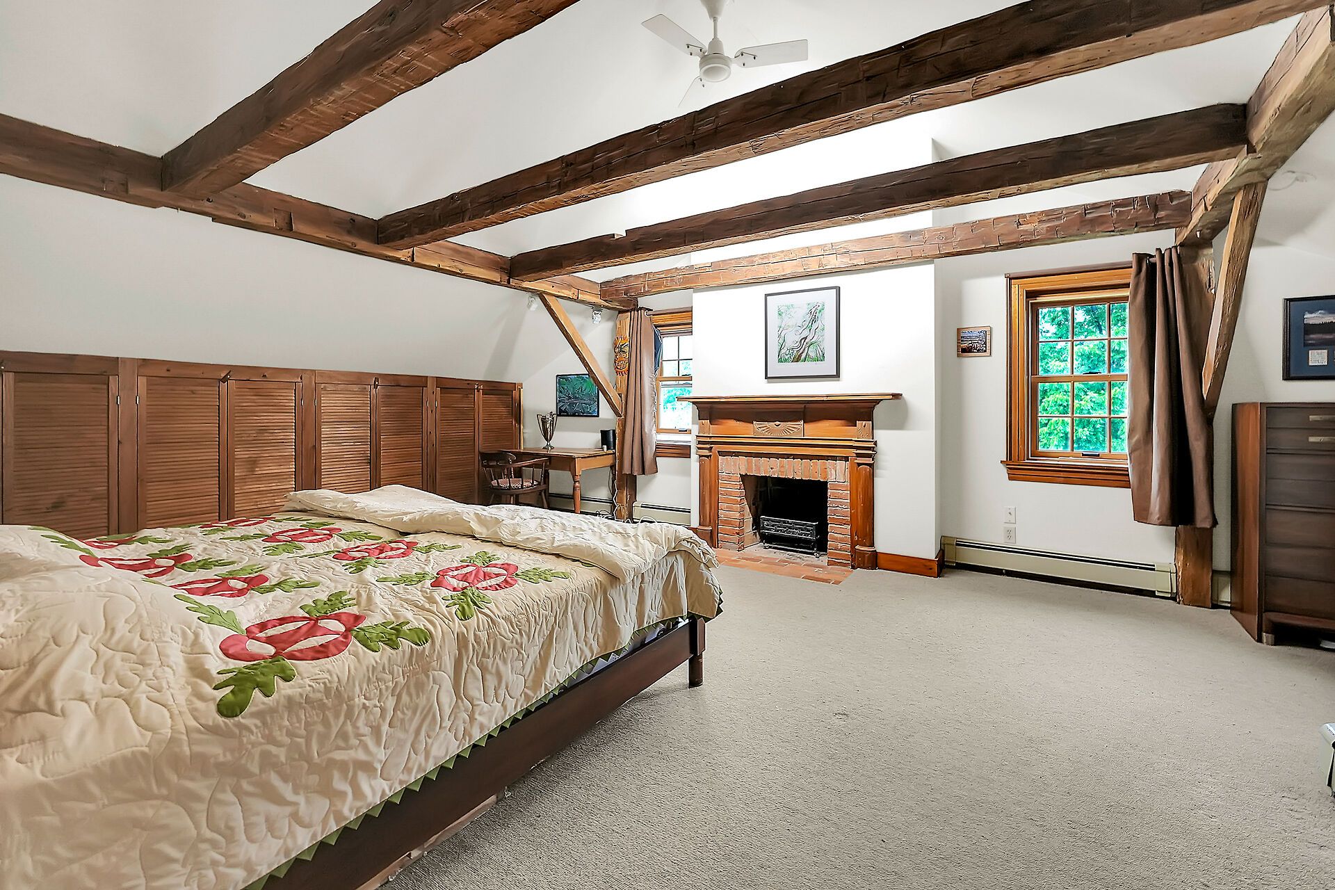 • Large property with over 27 acres of fields and a charming creek.