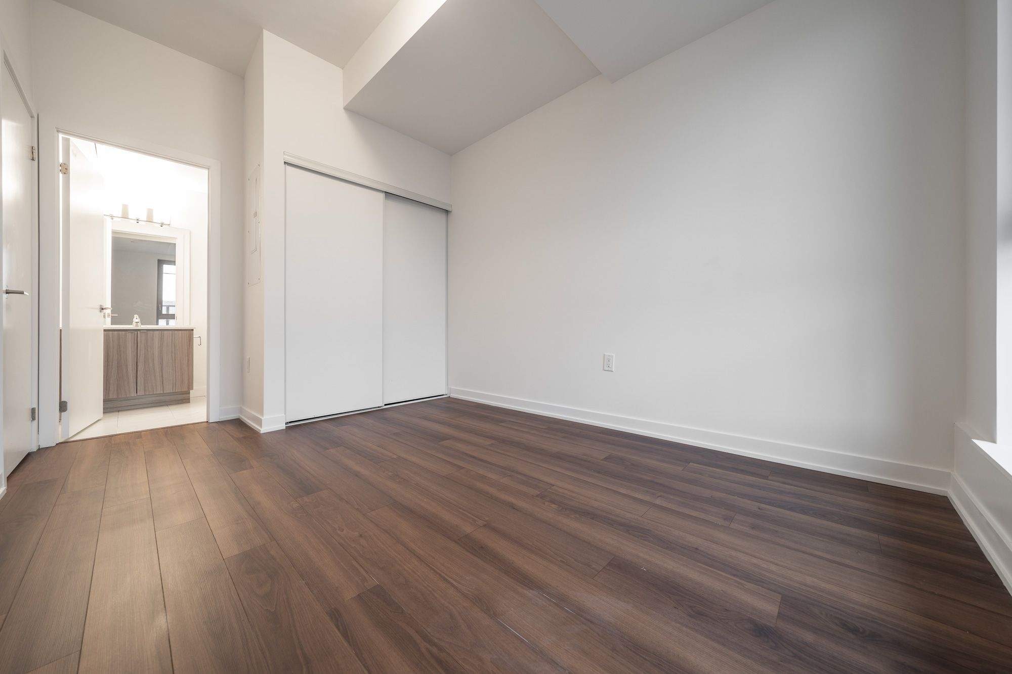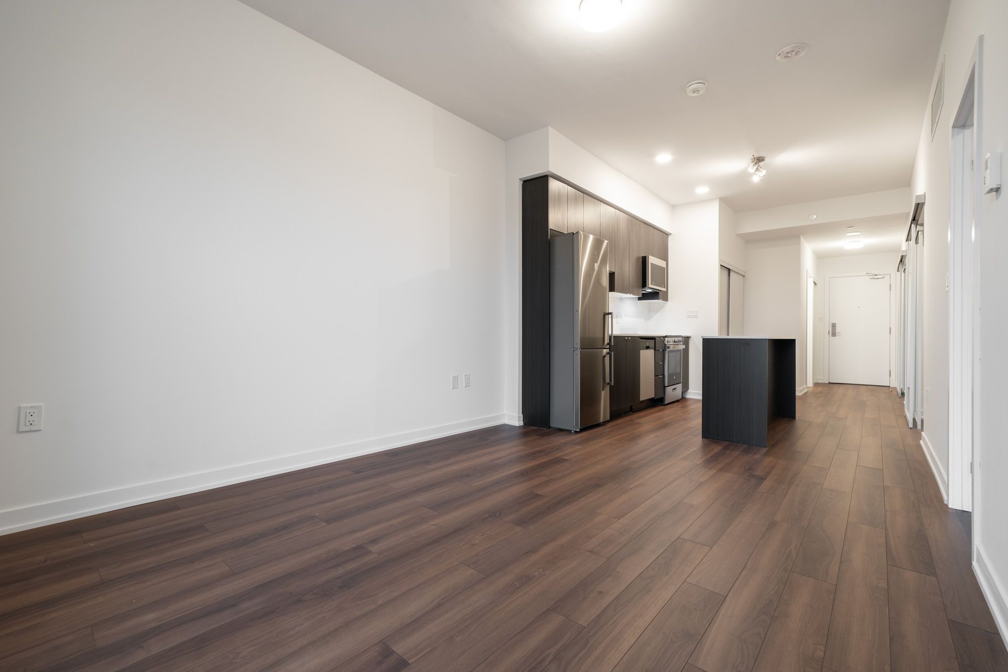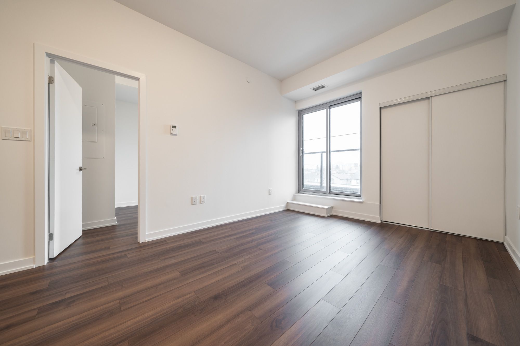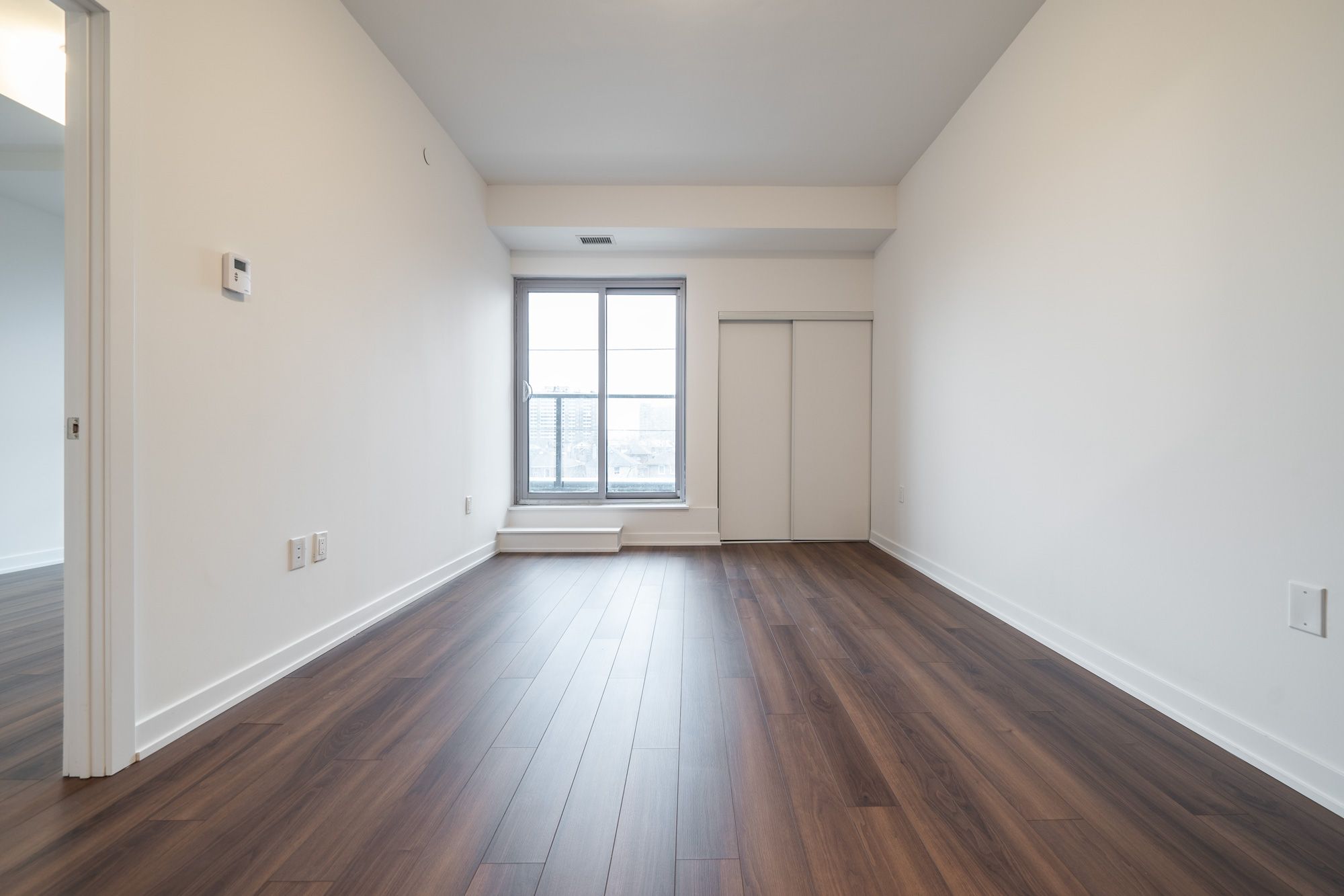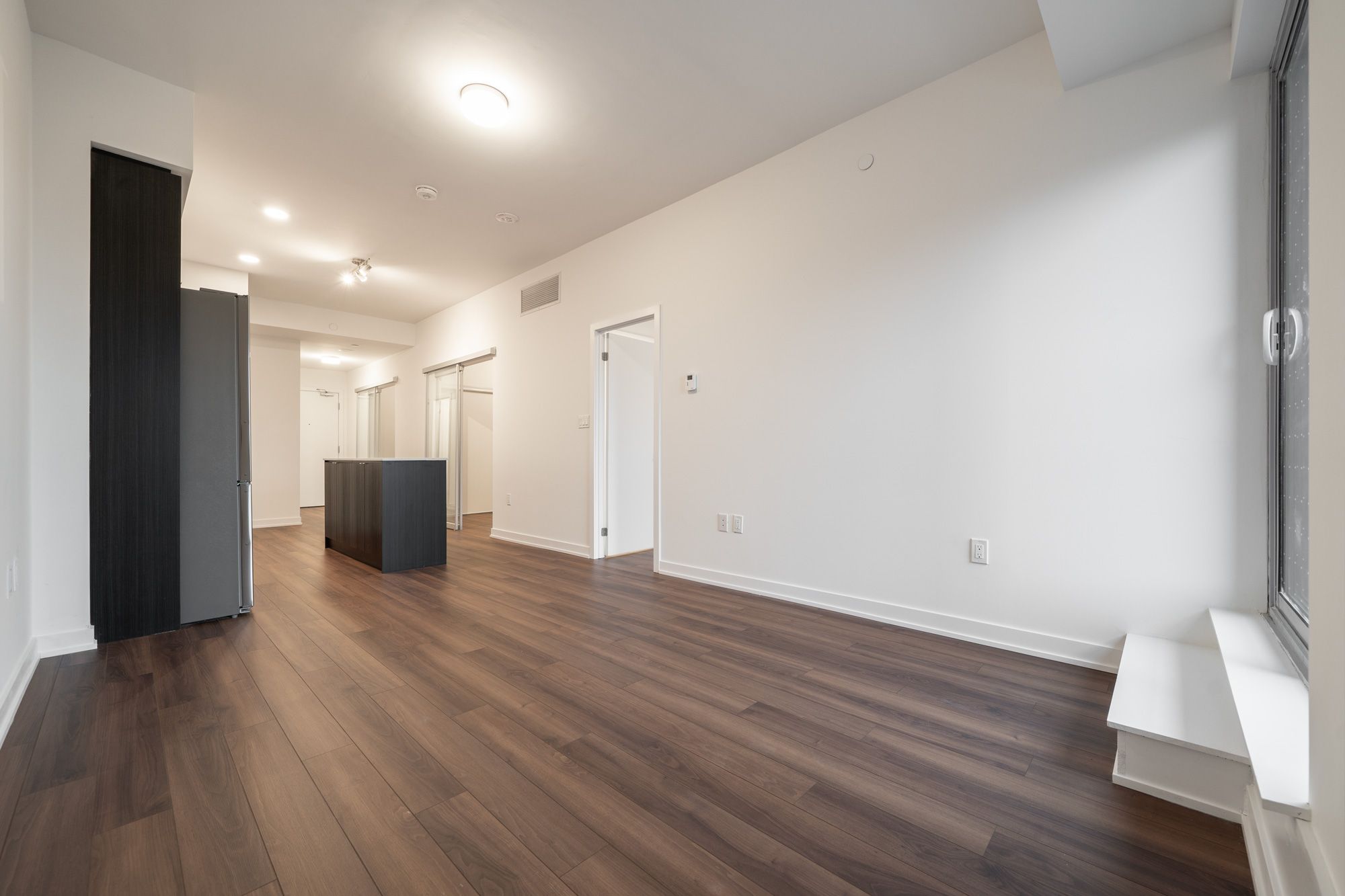 • Bright living area with laminate flooring and private balcony.