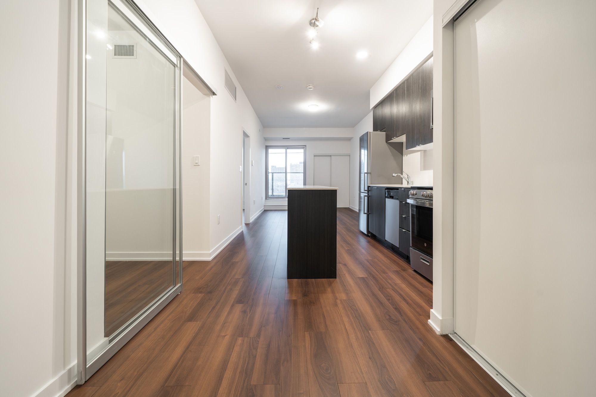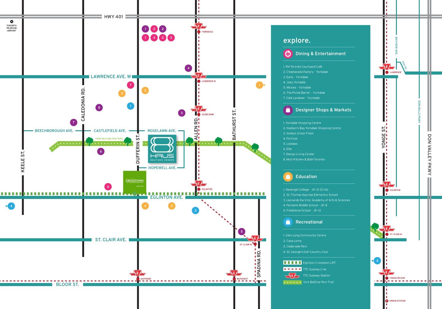 * * * available june 15th * * * welcome to the 8 haus condominiums. This 3 bedroom suite features approximately 842 interior square feet. Designer kitchen cabinetry with stainless steel appliances, stone countertops, an undermount sink & a centre island. Bright living area windows with laminate flooring throughout & a private balcony. The main bedroom with a 4-piece ensuite & a large closet. The spacious sized bedrooms could also be used as 1 home office with glass sliding doors. Steps to t. T. C bus transit & fairbank subway station, york beltline walking, cycling trails & parks. Minutes to shoppers drug mart, grocery stores, yorkdale shopping centre, allen road expressway & highway 401. 1-parking space & 1-locker is included. Click on the video tour!