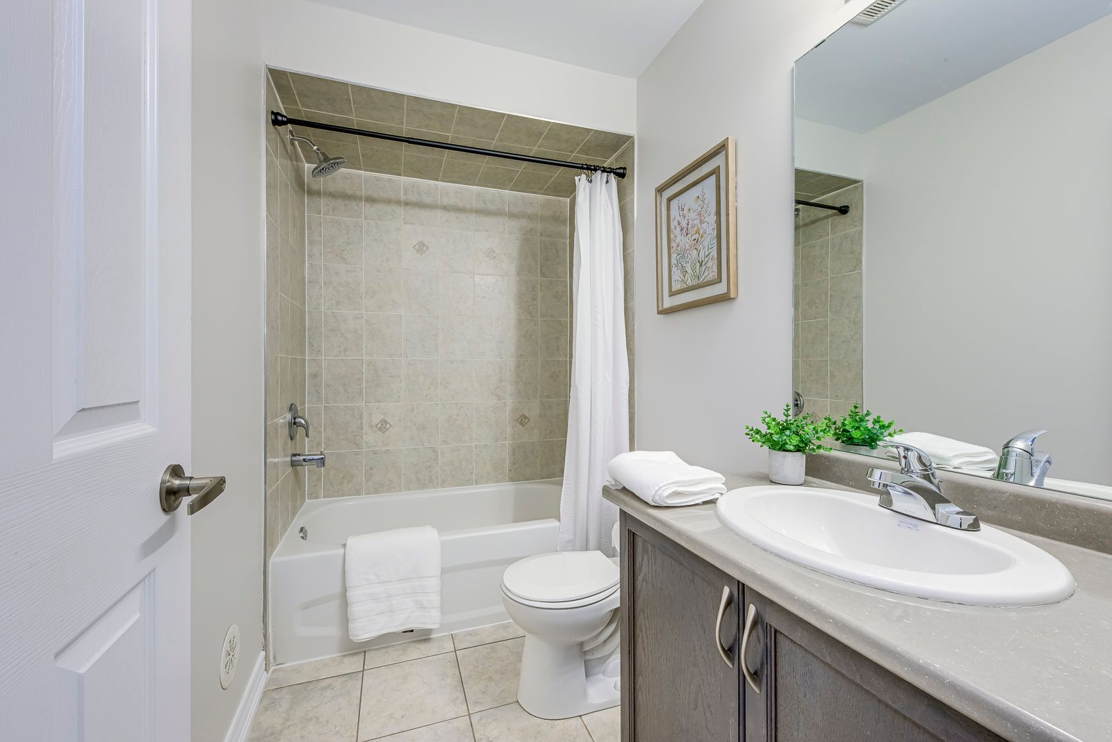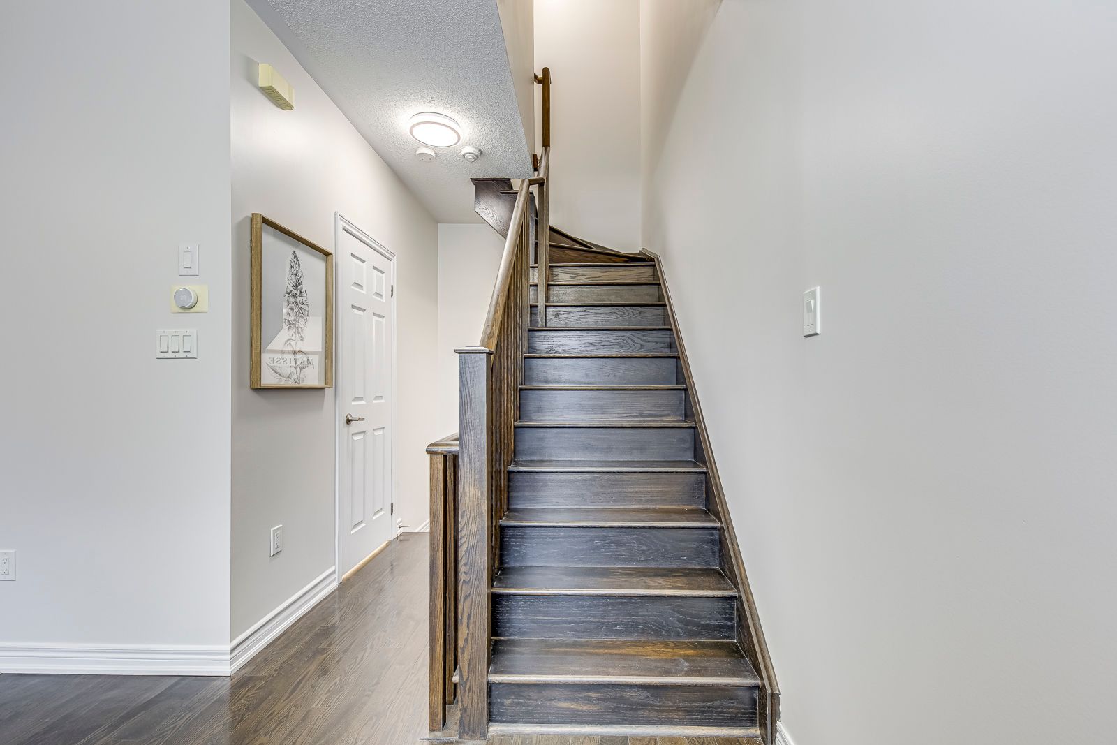 Absolutely gorgeous 1,273 square foot executive freehold townhome in oakville's highly sought-after westmount community, offering a perfect blend of style, comfort and unbeatable convenience. Enjoy a direct garage access from the spacious foyer. This beautifully upgraded 3-storey home features a premium stone and stucco exterior, open-concept main living level with 9' ceilings, rich dark hardwood floors, modern lighting, and a contemporary eat-in kitchen with breakfast bar, large countertops and stainless steel appliances, enhanced with a brand new range hood and stove (2025), all new faucets (2025), and led lighting throughout (2025). The entire home has been freshly painted in 2026 and showcases new third-floor flooring (2025), creating a truly turnkey feel. Spacious living and dining areas walk out to a private balcony, ideal for relaxing or entertaining. The primary bedroom offers a walk-in closet, complemented by a generous second bedroom, upper-level laundry and a large bathroom. Located steps to parks, playgrounds, trails, community centre, hospital, shopping and everyday amenities, and just minutes to bronte go, hwy 407, qew and 403 for easy commuting. Situated in a family-friendly neighbourhood known for its highly ranked public and catholic schools within the westmount catchment, making it ideal for professionals, young families and investors alike. A move-in-ready home in one of oakville's most convenient and well-connected communities.