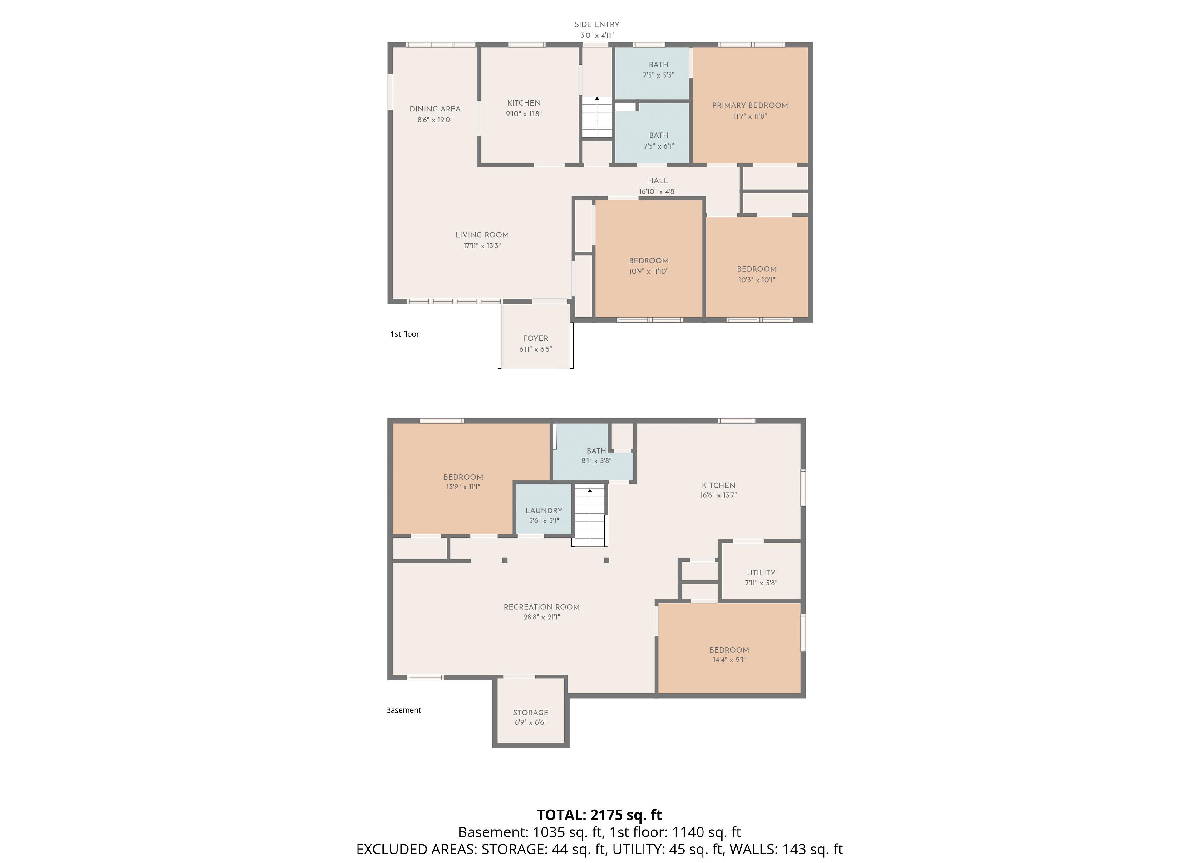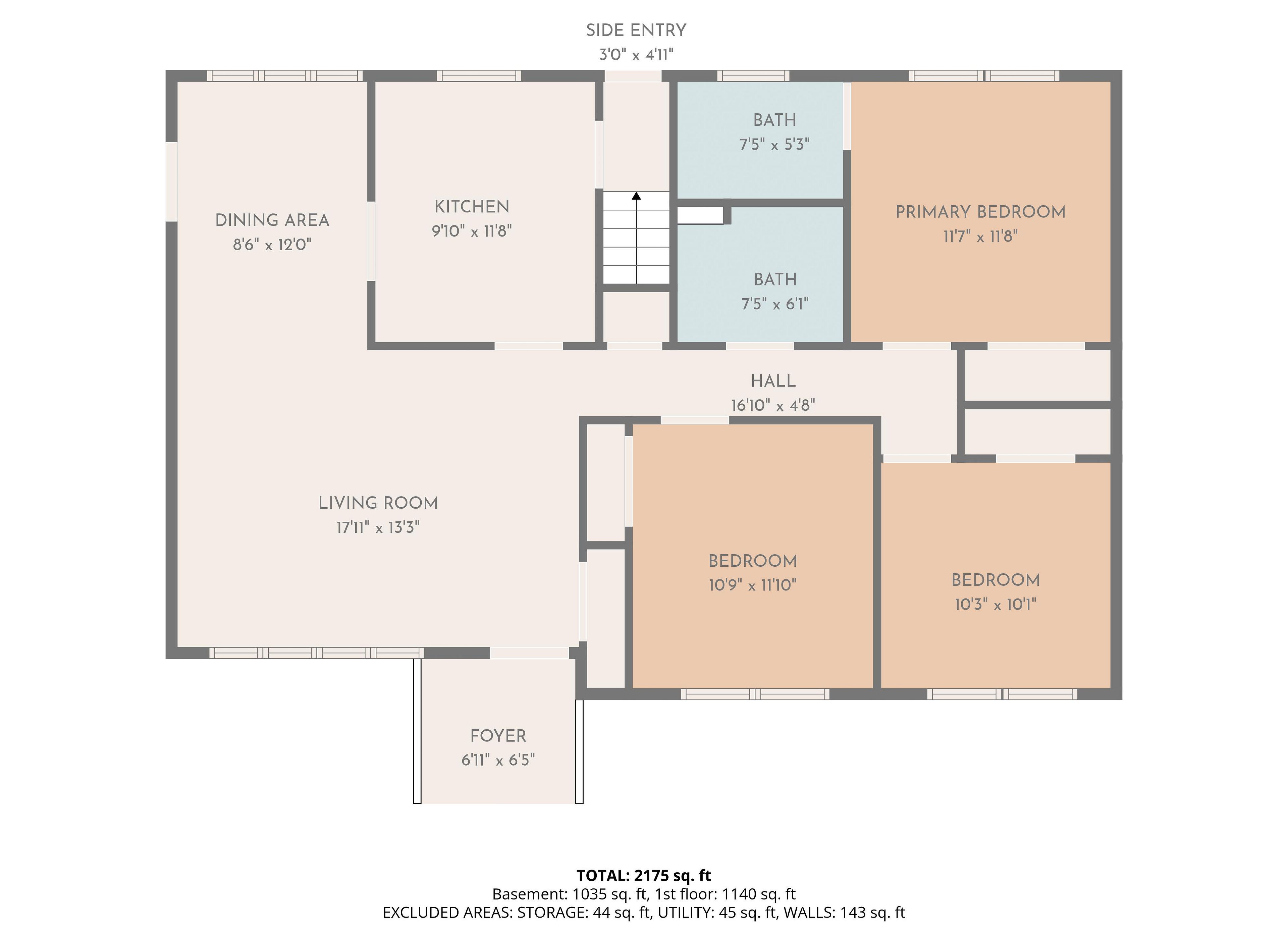 • Five bedrooms and three full baths for ample space.