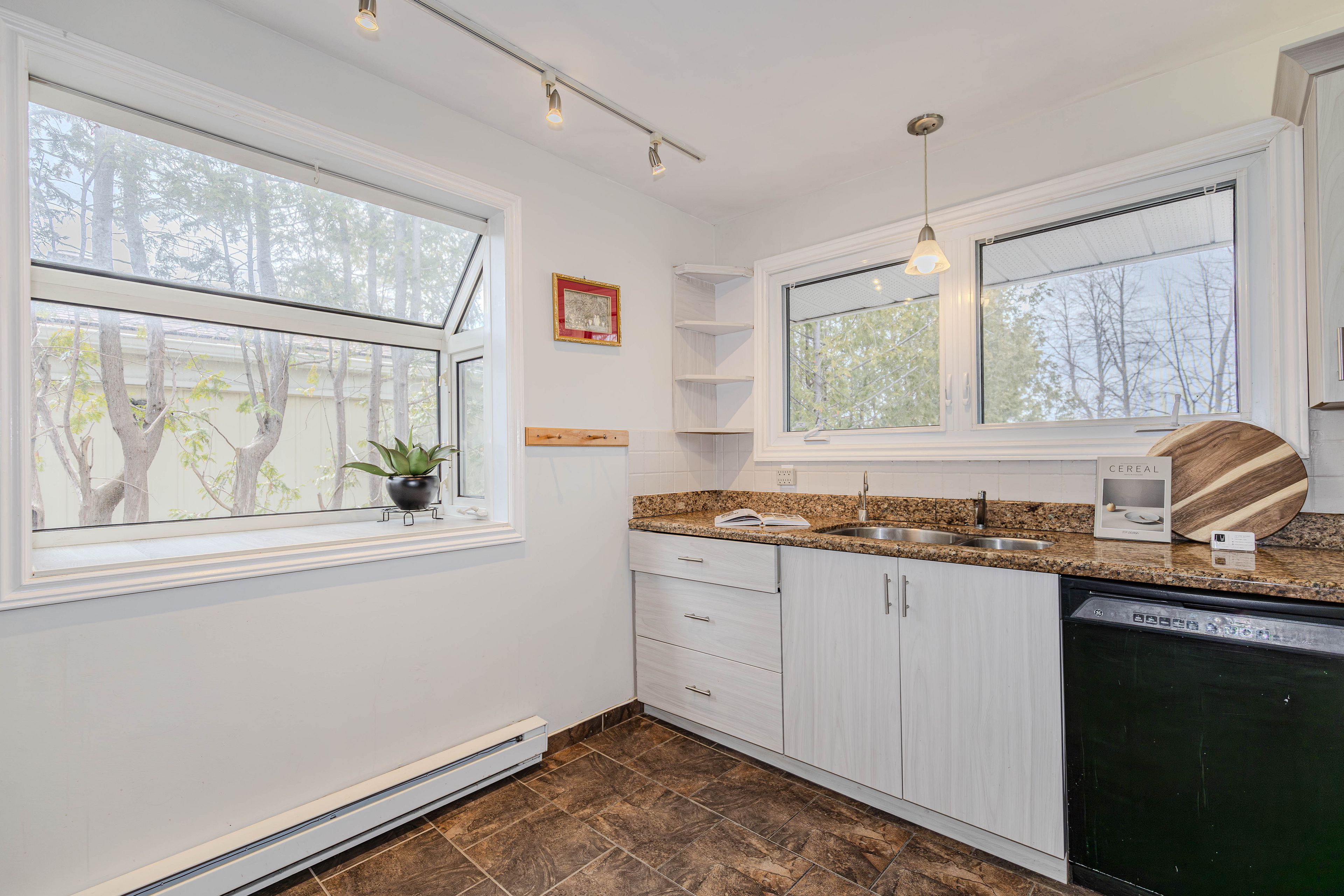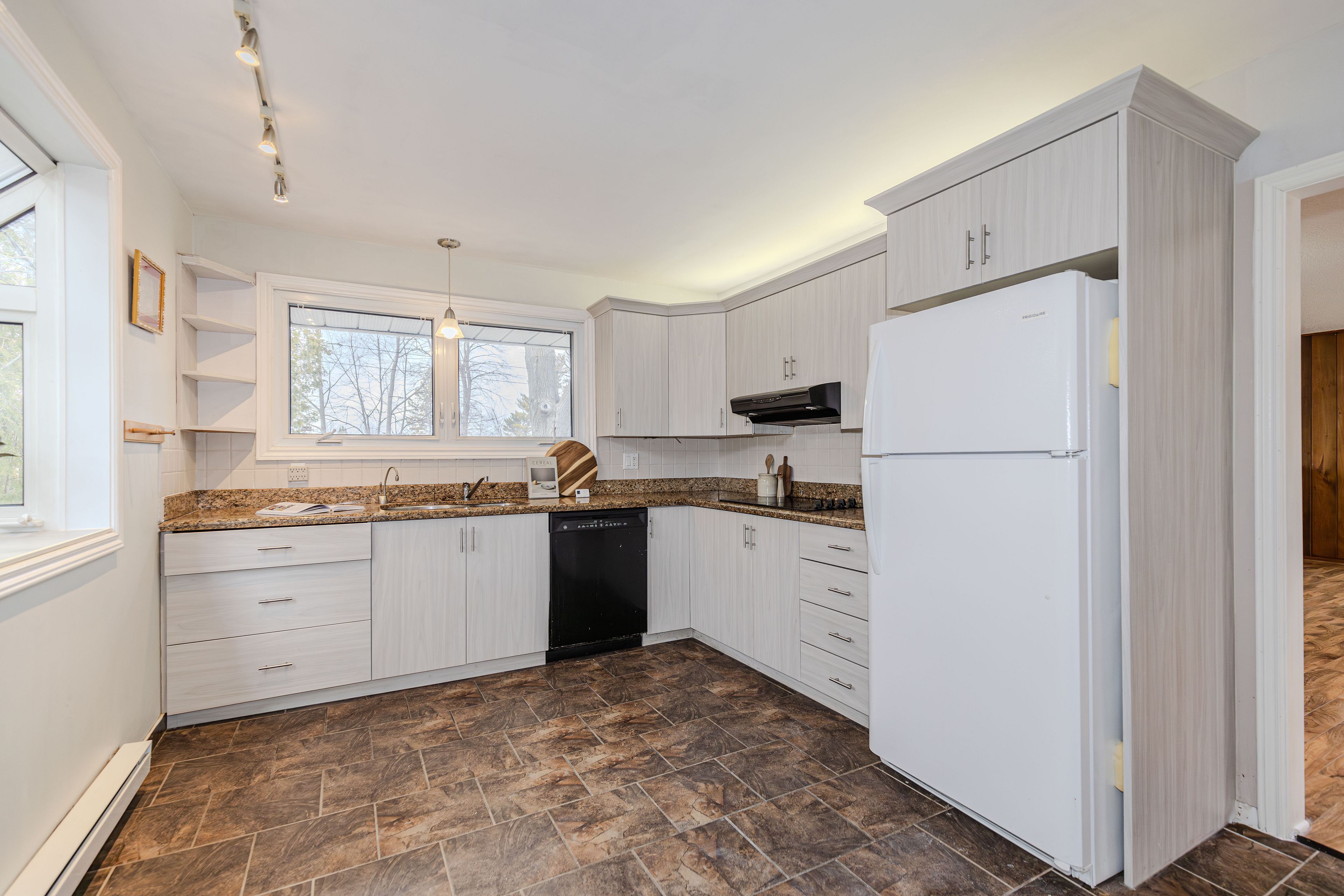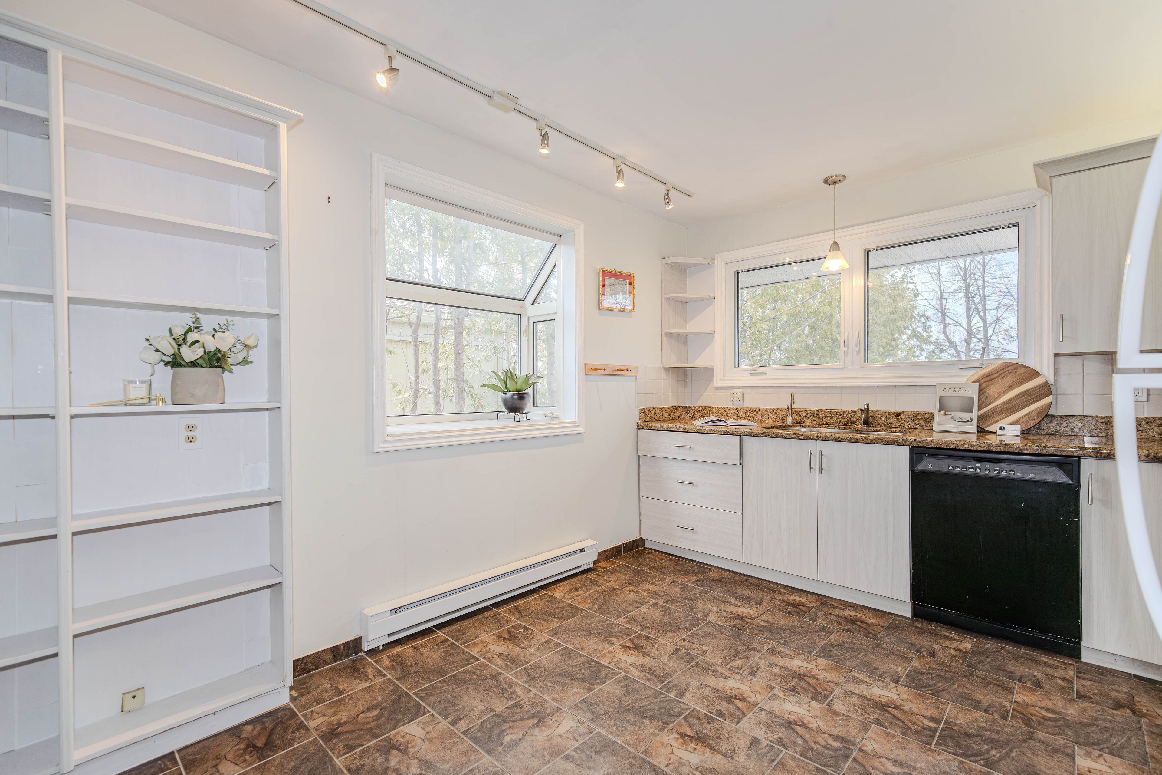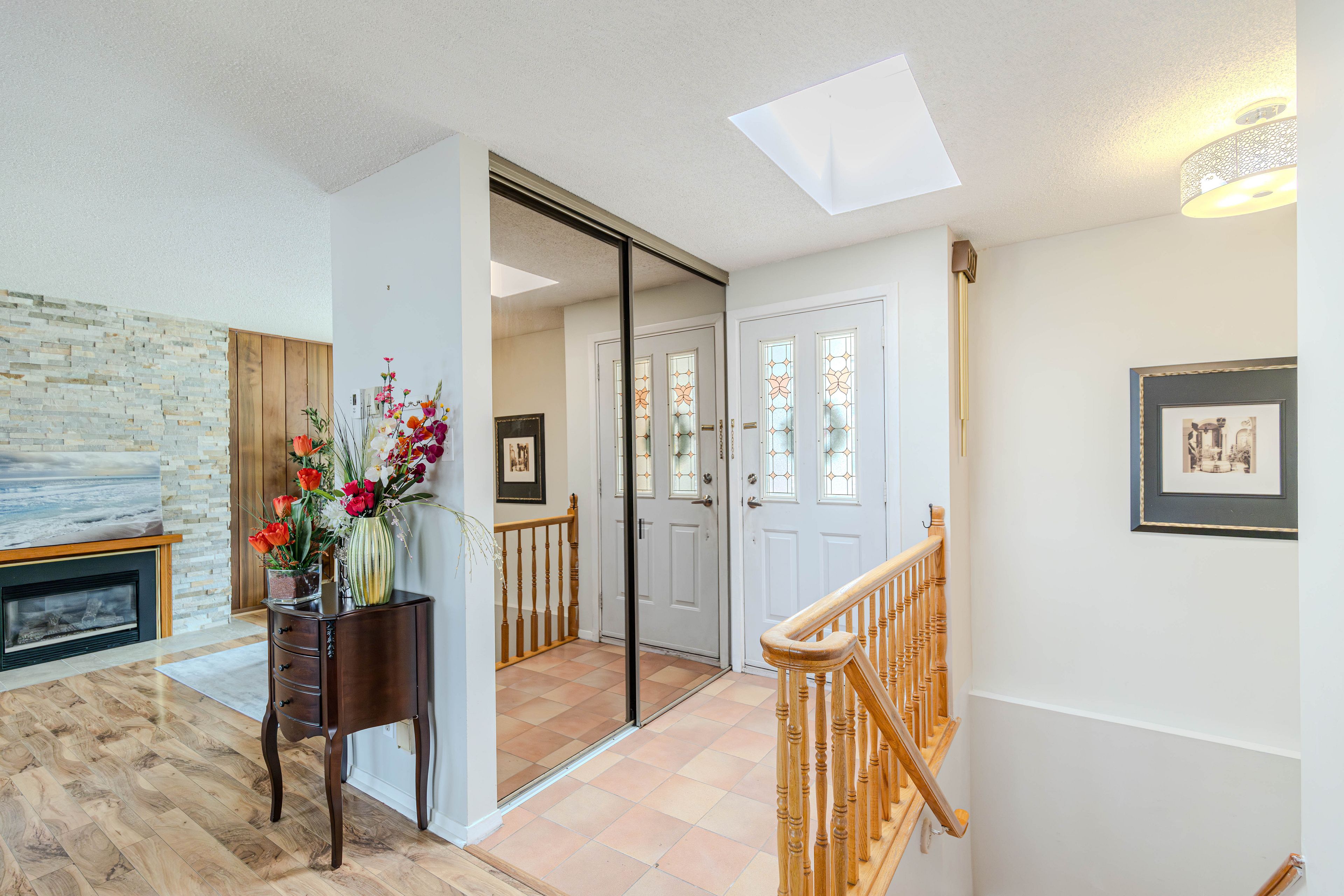 • Bright entrance with skylight and spacious kitchen featuring granite countertops.