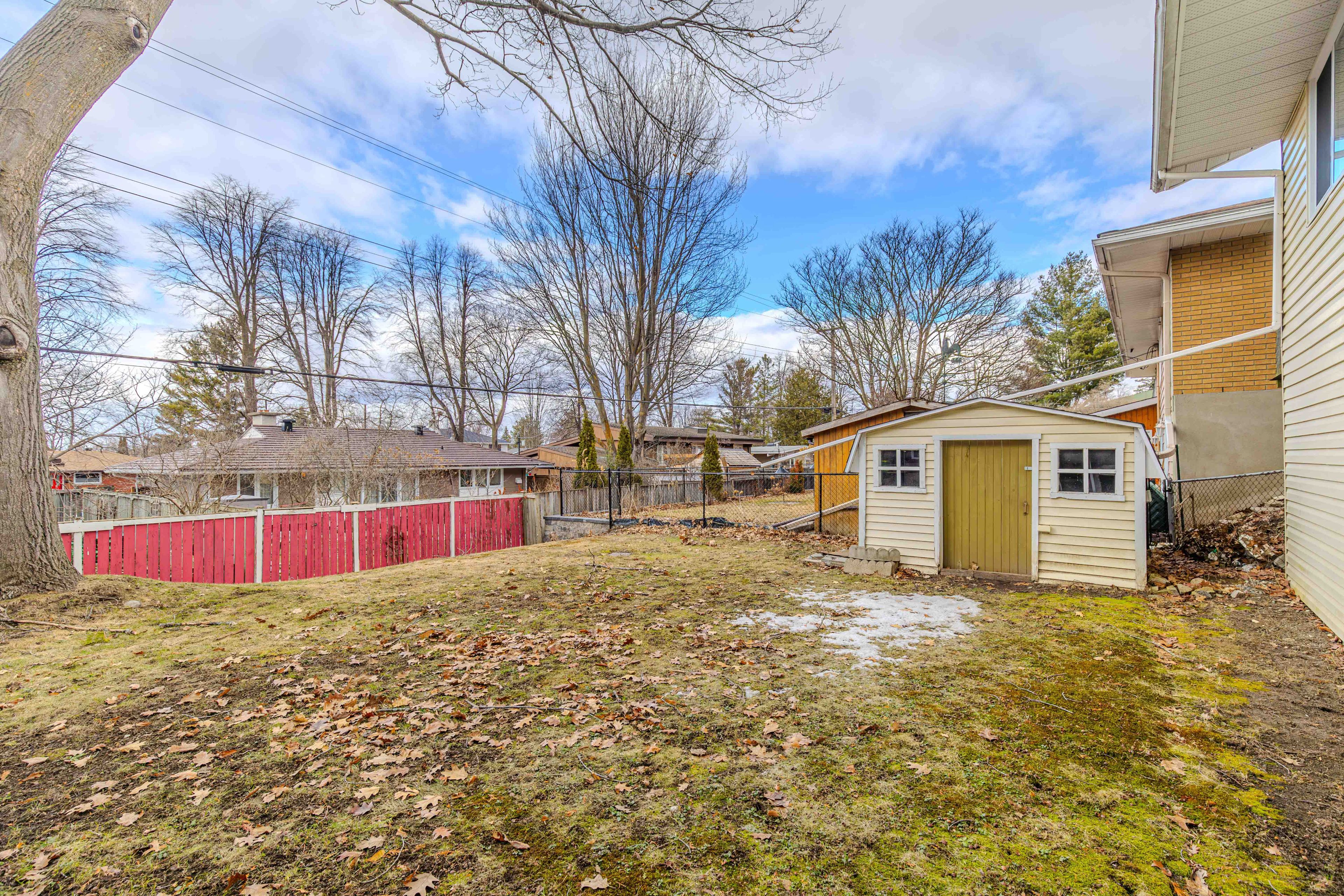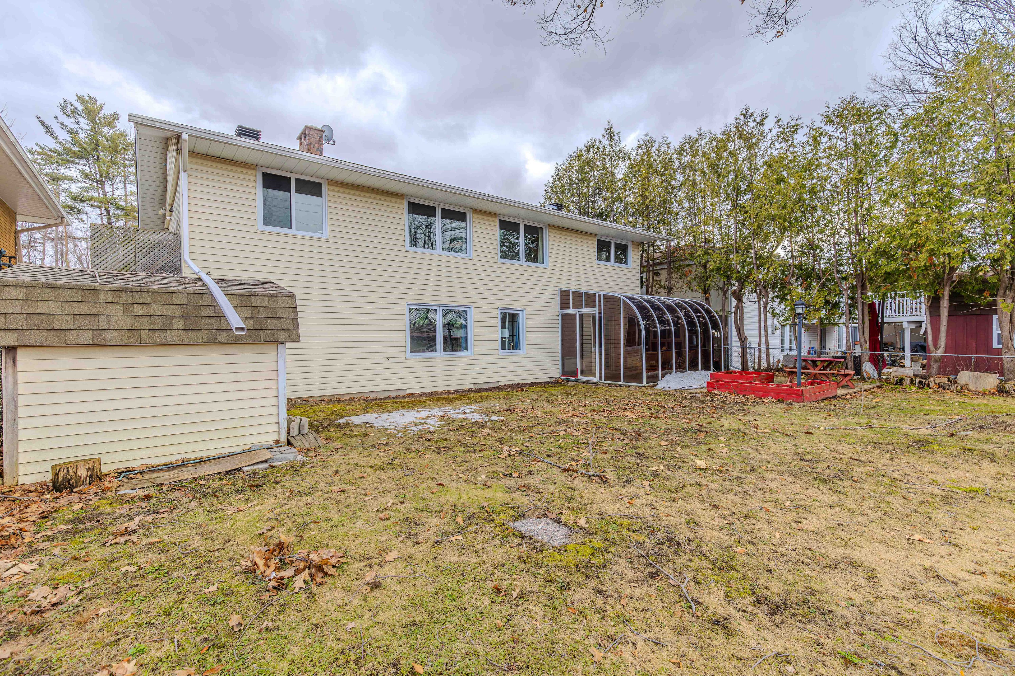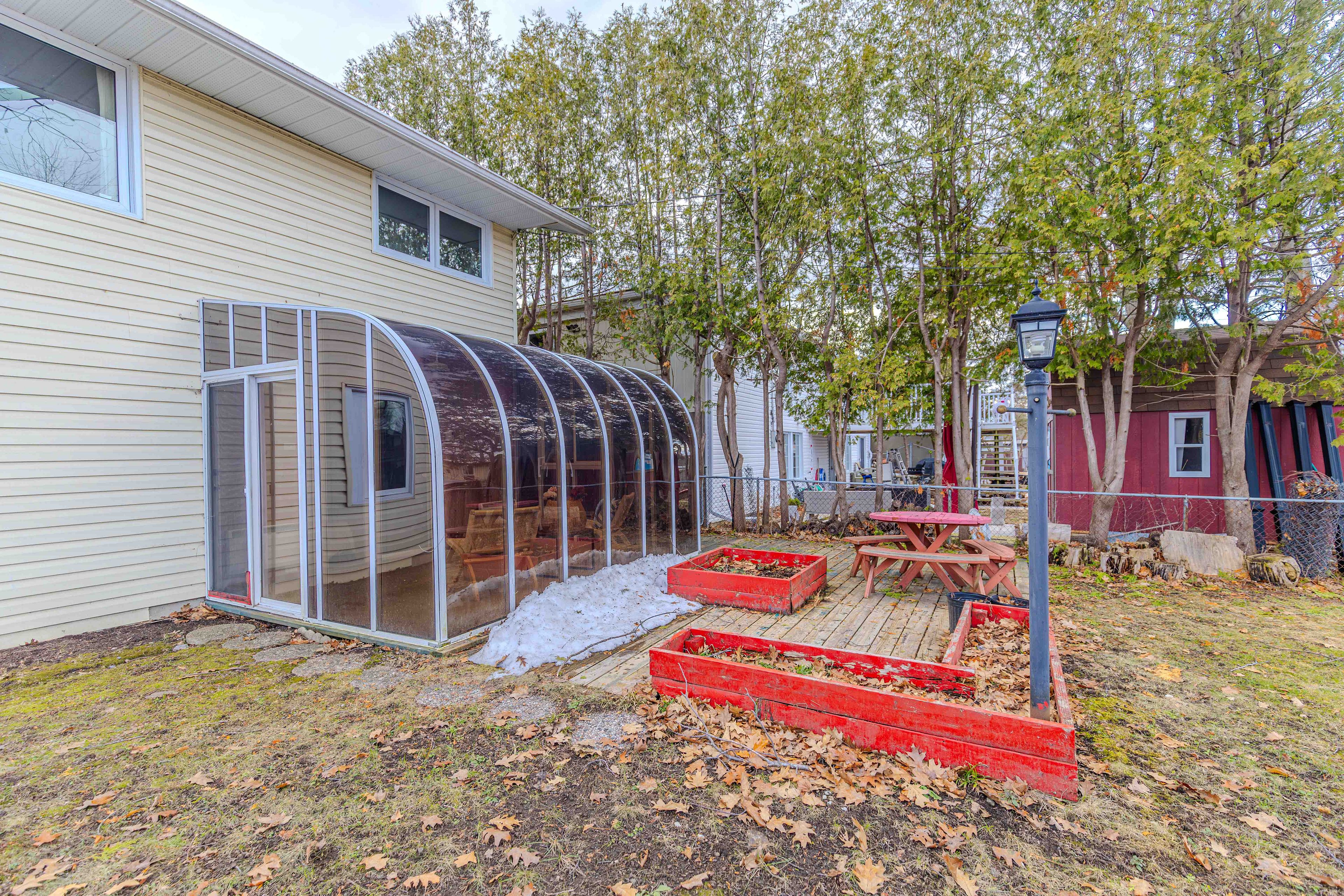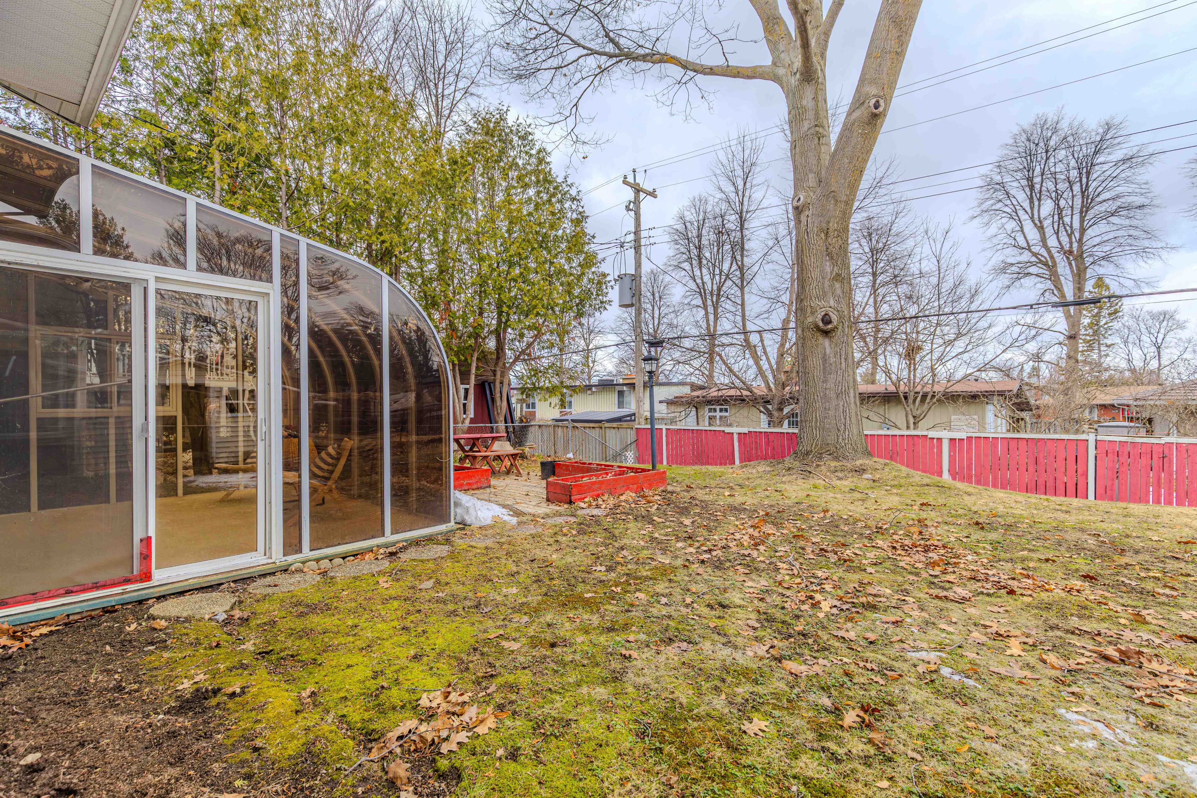 • Beautiful all-season solarium leads to a backyard with a mature red oak tree.