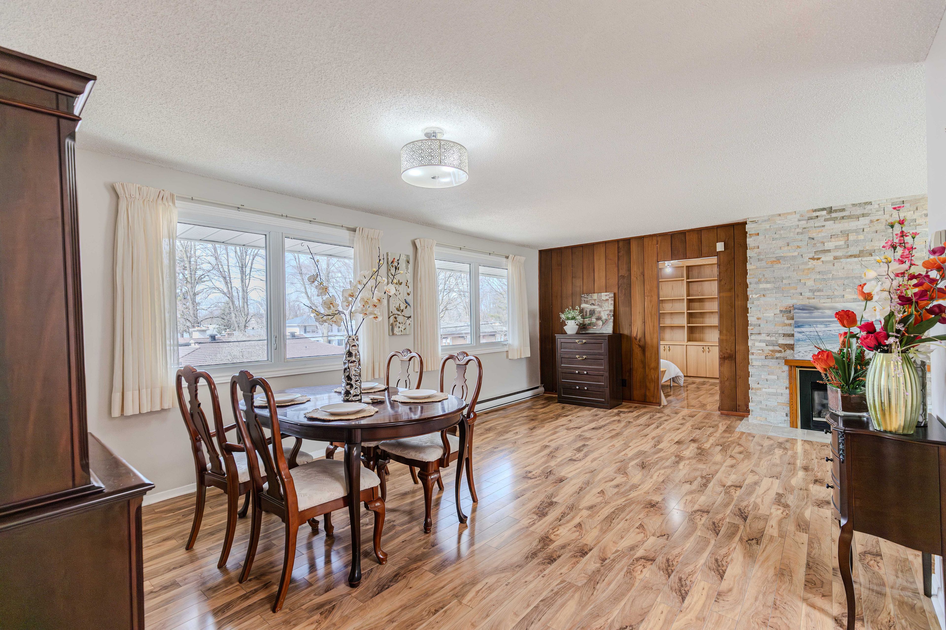 • Flexible layout with main floor bedroom and powder room for convenience.