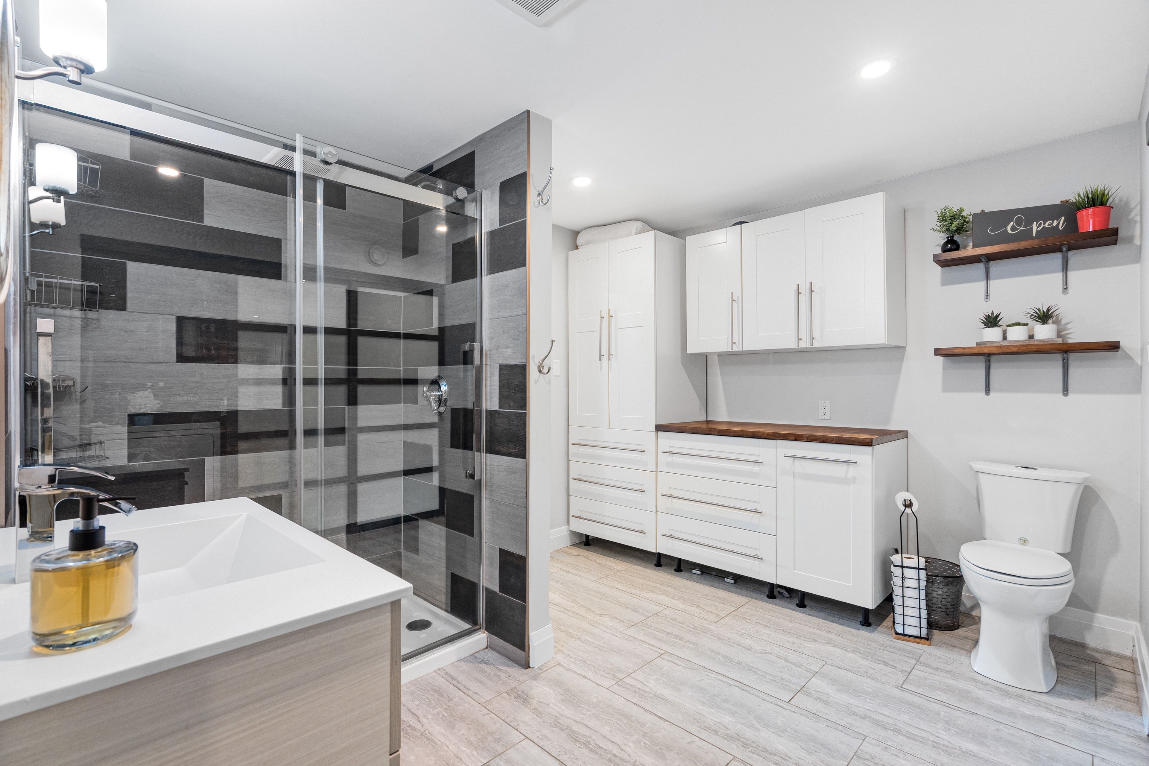 • Spacious finished basement with additional living space and office.