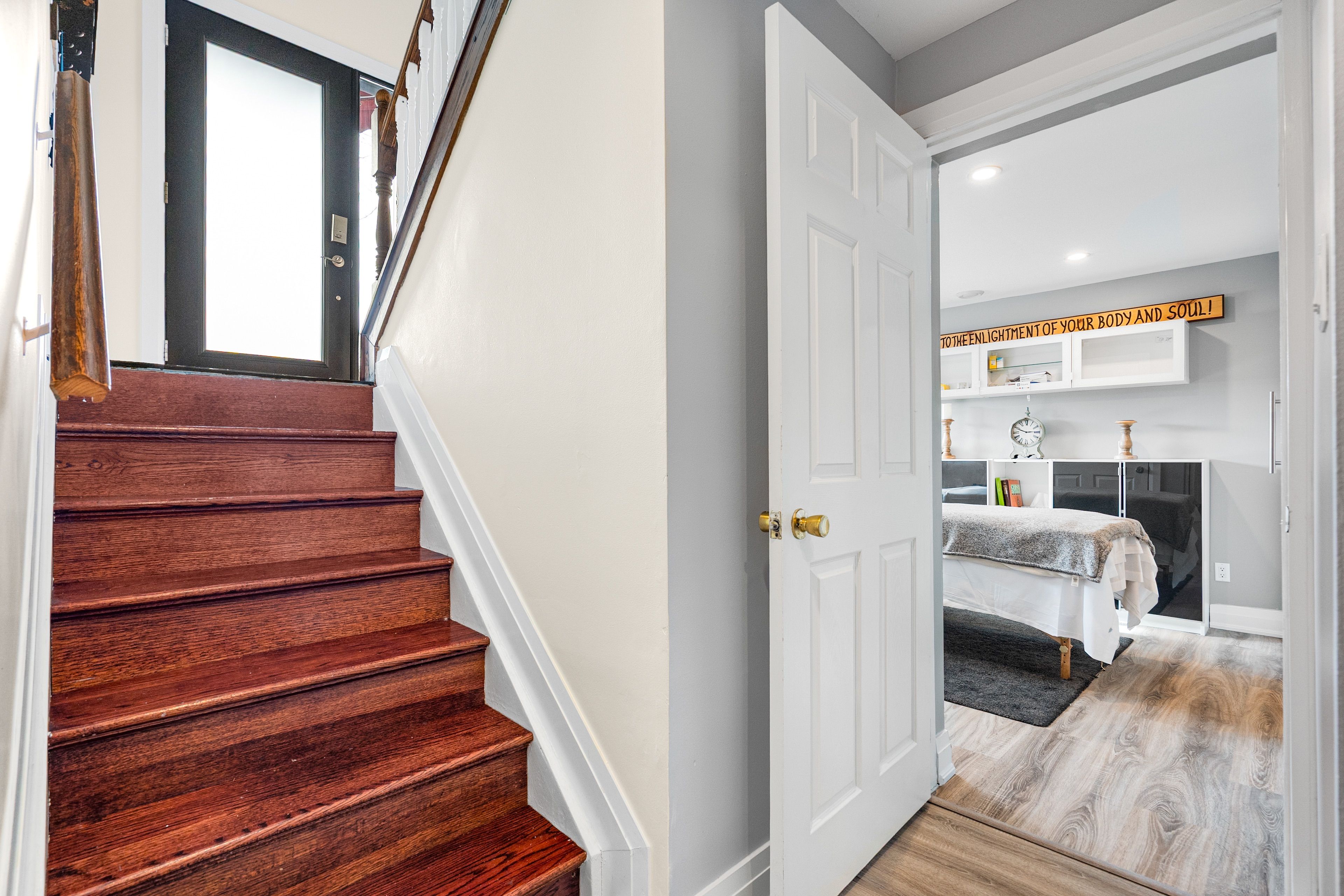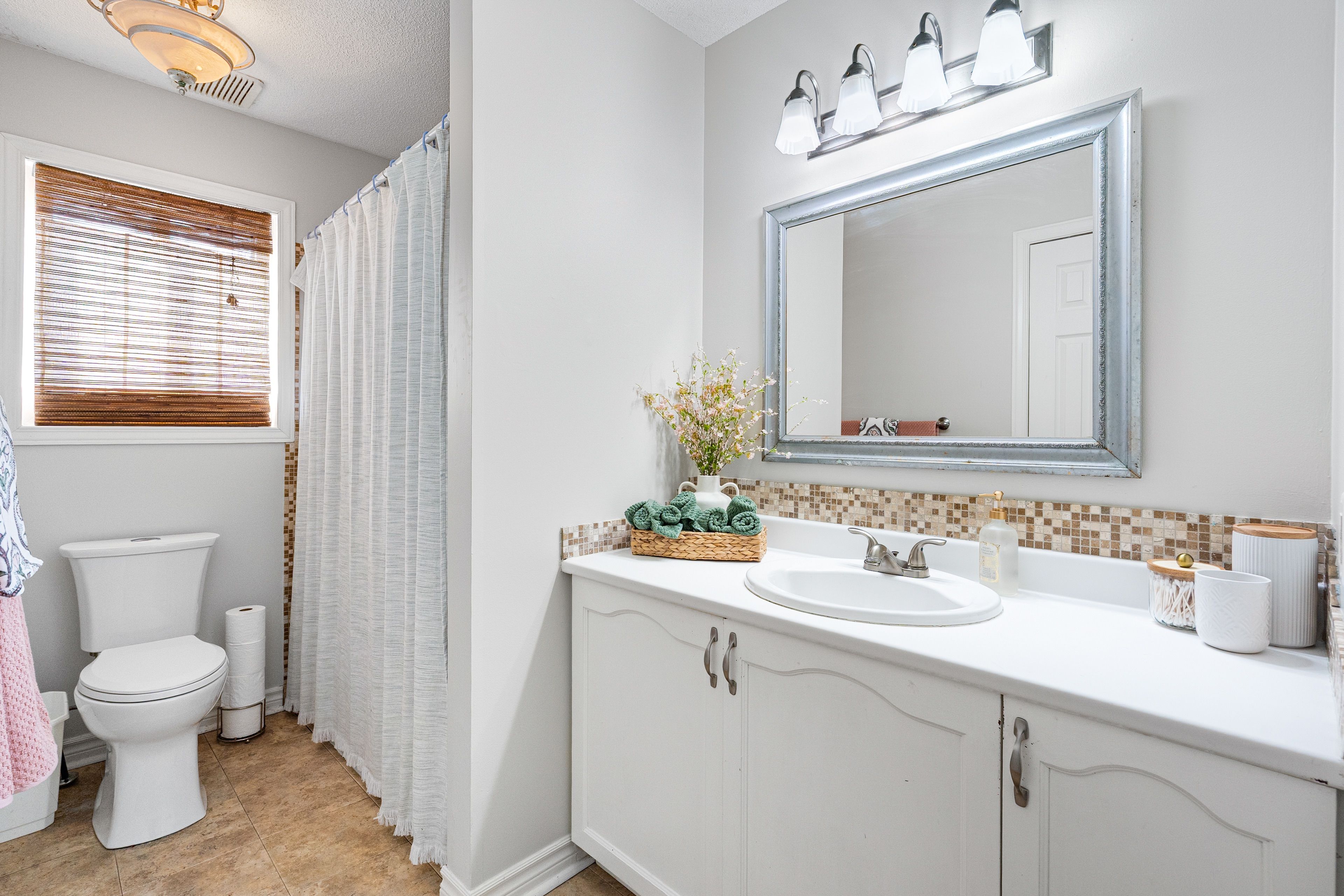 • Large primary bedroom with convenient bathroom access.