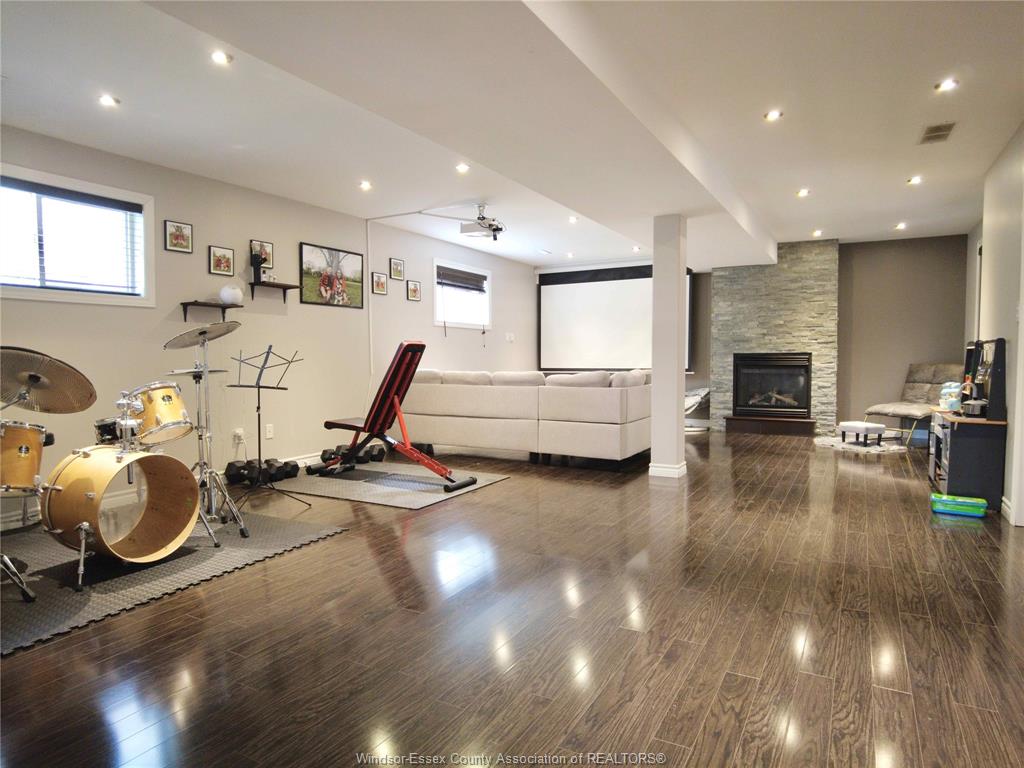 • Fully finished basement with two bedrooms and a cozy fireplace.