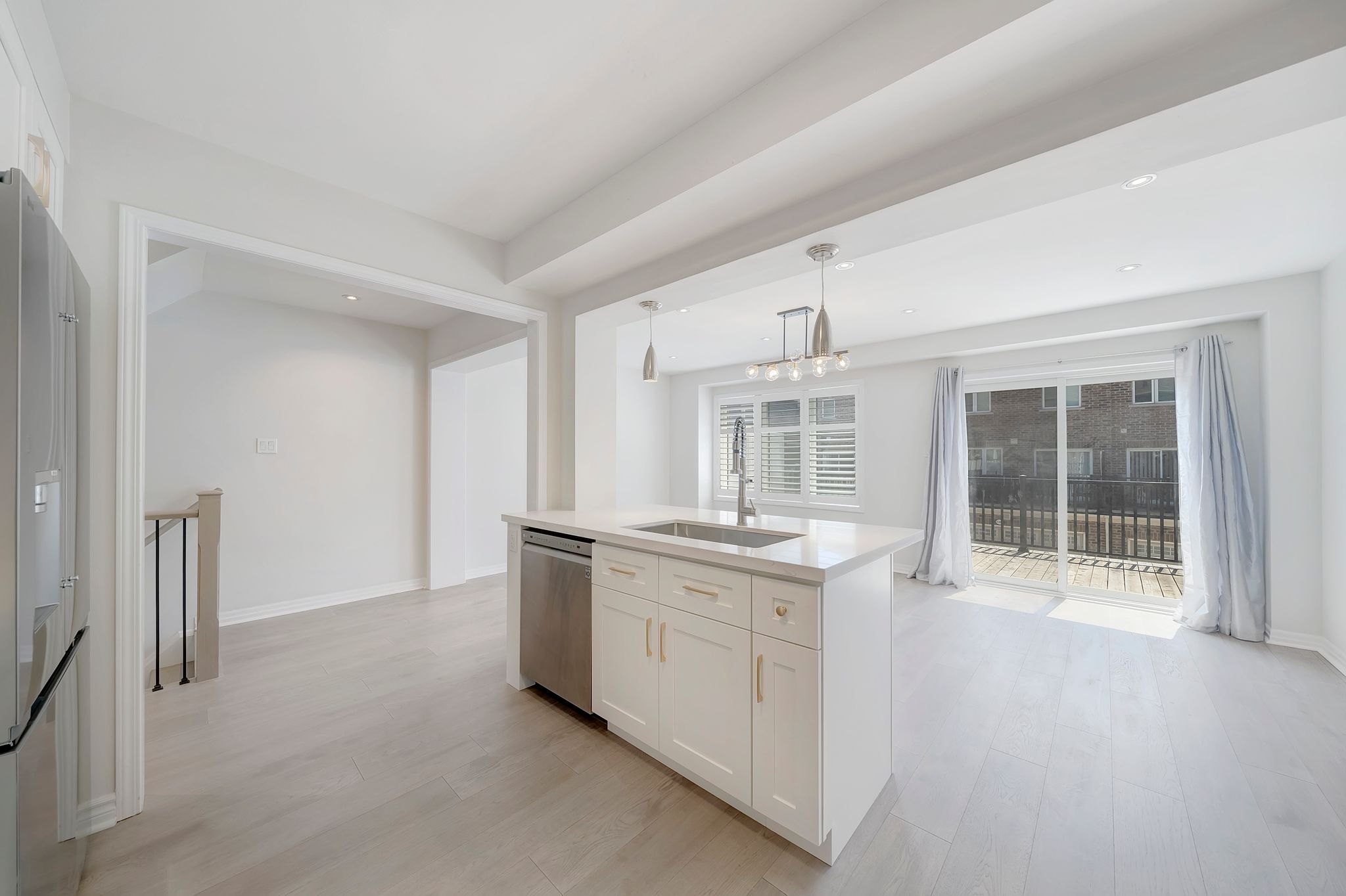 $999,888 | freehold townhome (no maintenance fees) | go glenorchy, oakville welcome to 244 ellen davidson dr-a showpiece freehold townhome in the heart of go glenorchy, fronting a park and just a few minutes' walk to the pond from the back pathway. This is the kind of location families love: green space out front, nature steps away, and everyday conveniences close by. Packed with over $100,000 in upgrades, this home feels brand new from top to bottom: smooth ceilings, dimmable pot lights, california shutters on the main and second levels, all-new lighting, and new engineered hardwood flooring throughout for a clean, modern look and easy maintenance. The layout is a rare win for families and multigenerational living-4 bedrooms including a main-floor bedroom with ensuite, plus a convenient main-floor laundry/mudroom that keeps life organized. The second level is the star: a fully renovated, brand-new kitchen with new appliances, a large island, and a generous pantry, flowing into bright living space that's perfect for hosting, family dinners, and movie nights. The powder room vanity and laundry sink are also brand new-every detail has been thoughtfully updated. Upstairs, enjoy three more bedrooms, including a spacious primary retreat with ensuite. One bedroom offers direct access to the main bath (semi-ensuite style), while the third bedroom shares the same bath-ideal for kids or guests. Bonus: an oversized double garage that comfortably fits two suvs. Close to excellent local schools including oodenawi ps (hdsb), st. Gregory the great ces (hcdsb), and white oaks ss (hdsb), plus easy access to shopping, parks, trails, and the hospital. Move-in ready, lifestyle-perfect-come see it before it's gone. If you've been waiting for an a+++ townhome where you can unpack and enjoy, this is it. Whether you're upsizing, downsizing, or investing in a prime oakville neighbourhood, 244 ellen davidson delivers space, style, and walkable outdoor living. Book your showing today.