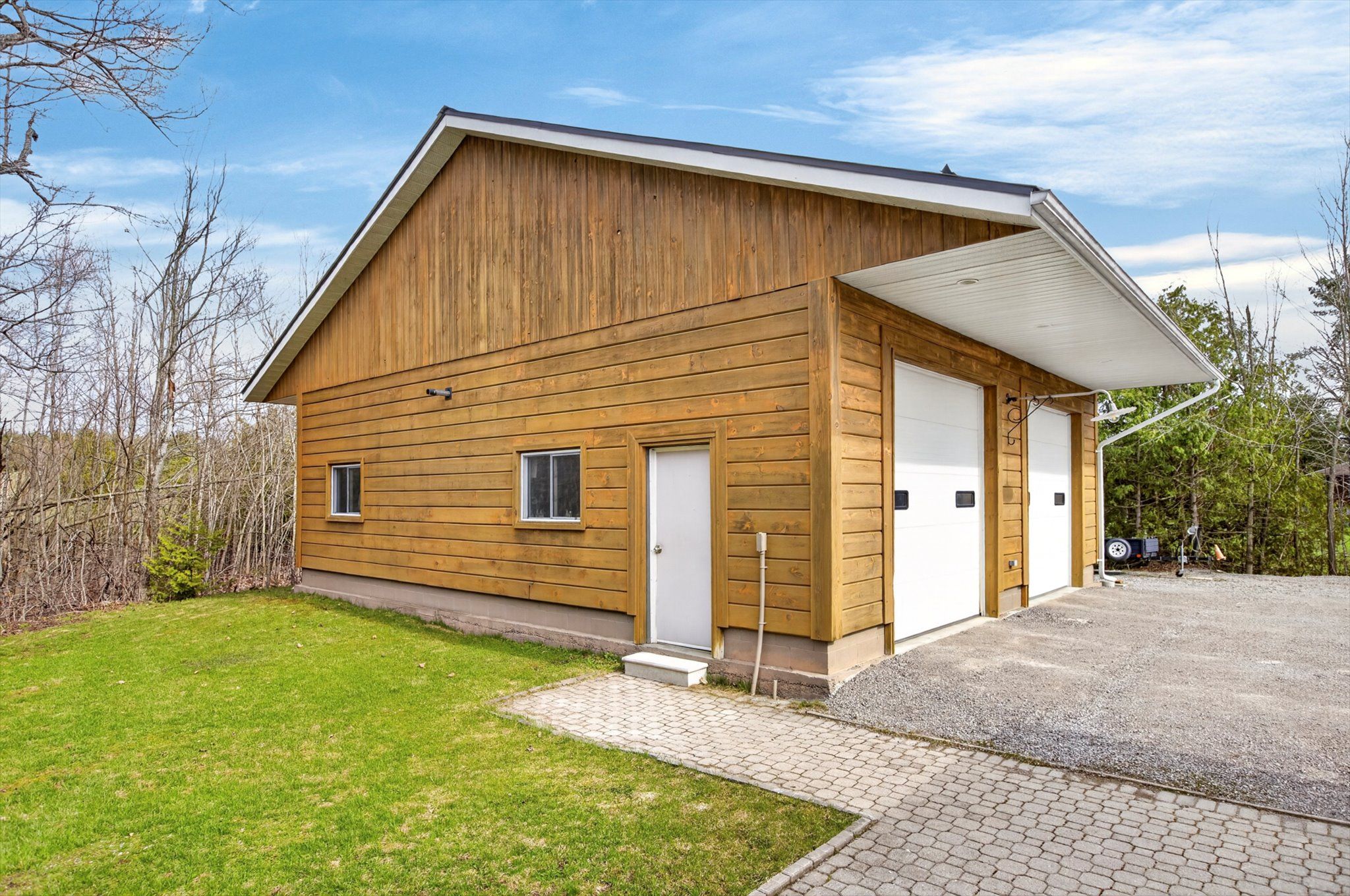 Nestled on nearly a country acre, this charming log home, built in 1995, combines modern comfort with rural tranquility. Offering over 1,500 square feet of accessible main-level living, it features an open plan, 36" doorways, and wide 54" hallways, making it fully wheelchair accessible. The kitchen boasts granite countertops and tully cabinetry, complemented by durable laminate flooring throughout. Equipped with newer windows, doors, furnace, and air conditioning, this home ensures year-round comfort. High-speed internet from bell, with an upgrade to fibe coming soon, makes it ideal for remote work. A standout feature is the recently installed 14kw generac generator, providing peace of mind in rural settings. The log-sided workshop, measuring 36' x 32', is perfect for serious hobbyists or home-based entrepreneurs. This expansive space accommodates up to six vehicles and is built to commercial standards. With propane radiant heating, bright led lighting, dual 110-220 receptacles, and pneumatic lines for compressors, it's an ideal workspace for artists and auto enthusiasts. Located in a vibrant recreational community near buckhorn, you'll enjoy nearby lakes and outdoor amenities such as boating and fishing on the trent-severn waterway. Unwind on the expansive 40-foot veranda facing west, perfect for stunning sunsets and outdoor living. Home inspected. Floor plans. With premium steel roofs by havelock metal on all buildings, this home and workshop combination offers a lasting investment in a lifestyle of creativity and peace in peterborough county.