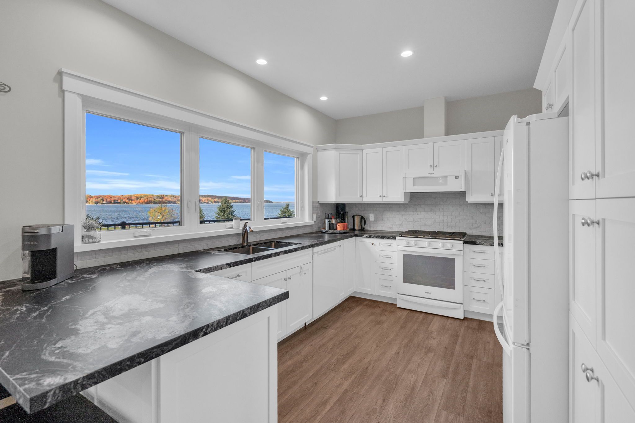 Welcome to 244 frank street an elegant bungalow residence showcasing panoramic georgian bay views and refined, effortless living. Thoughtfully designed for both comfort and sophistication, this 3-bedroom, 3-bathroom home offers a seamless main-floor layout. The primary suite serves as a private retreat, complete with a walk-in closet and spa-inspired 4-piece ensuite, with heated floors, while a second main-floor bedroom is positioned for optimal privacy. The open-concept living space is beautifully appointed, featuring quality cabinetry, upgraded lighting, heated countertops, and an inviting flow for both intimate gatherings and entertaining. Main-floor laundry adds everyday convenience. The fully finished lower level extends the living experience with a spacious recreation area, second full kitchen, dedicated home office, third bedroom, full bath, and abundant storage-offering excellent potential for multi-generational living or excellent potential for an in-law suite . Additional highlights include a brand new generator and generlink, ev charger capability, and a double-car garage with epoxy flooring and dual walk-up access. Set in the sought-after waterfront community of midland, this home offers proximity to marinas, boutique shops, dining, and year-round recreation,along with easy access to highways, trails and waterways. A rare offering where elevated finishes meet breathtaking natural beauty.