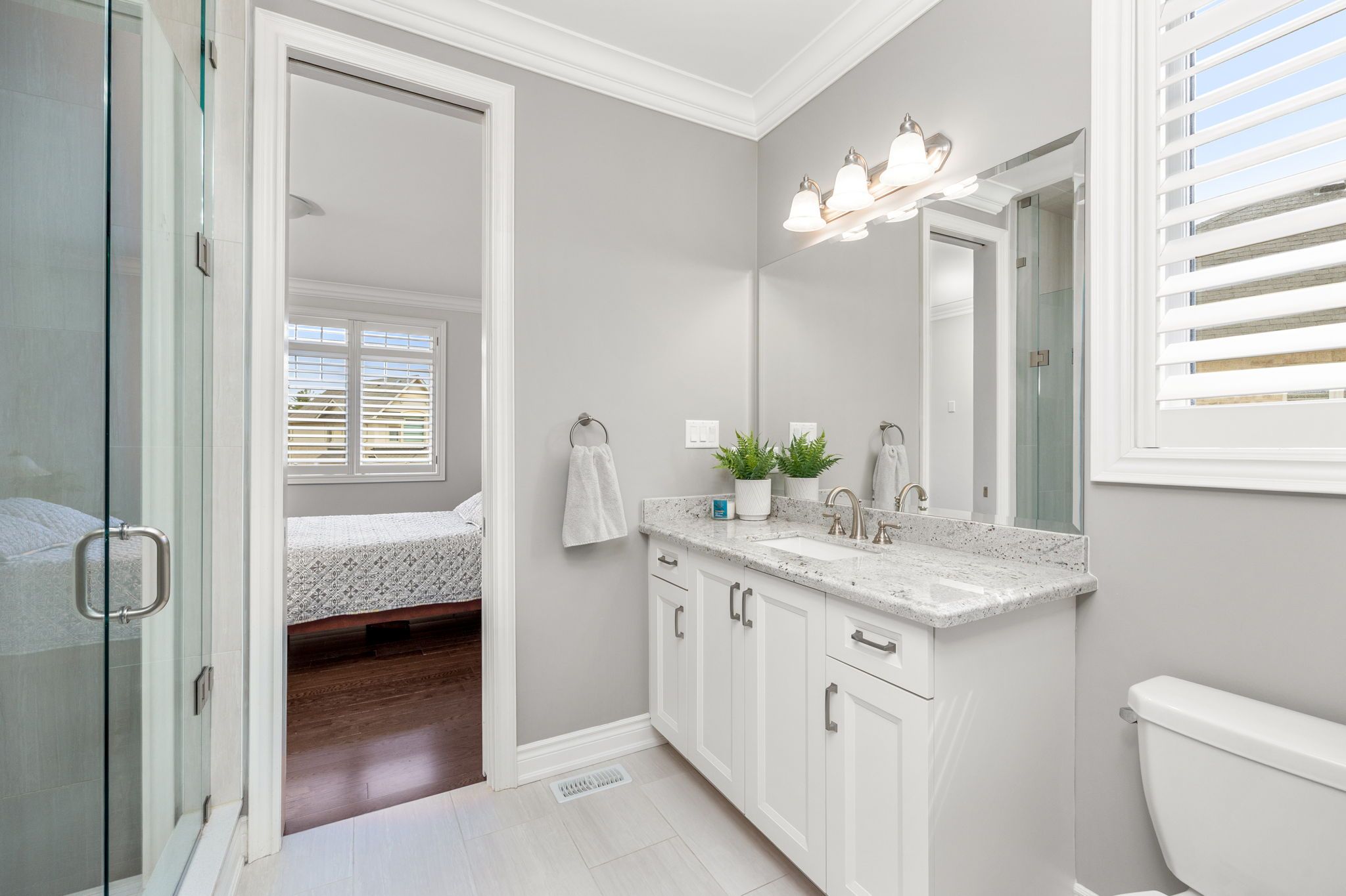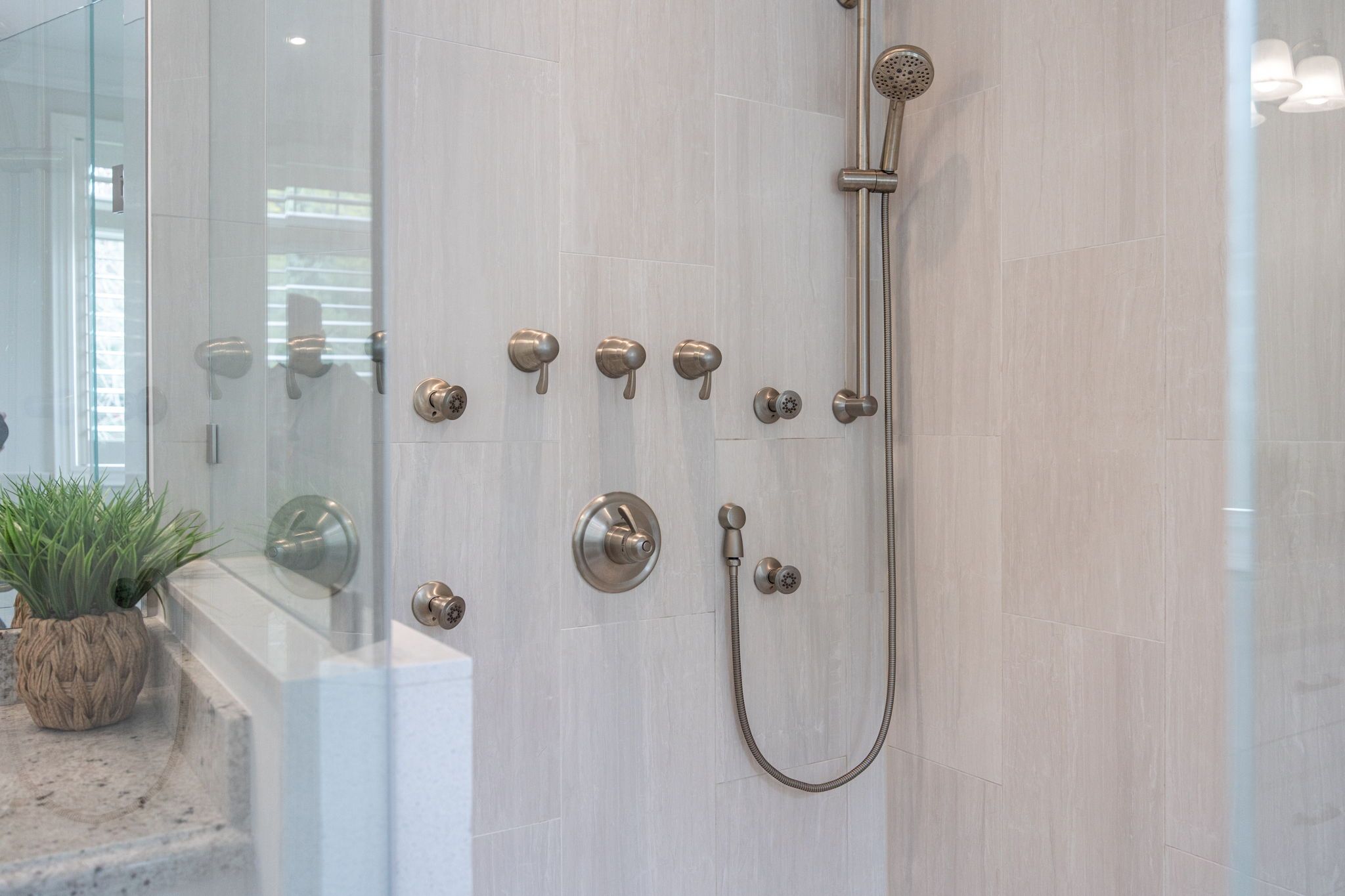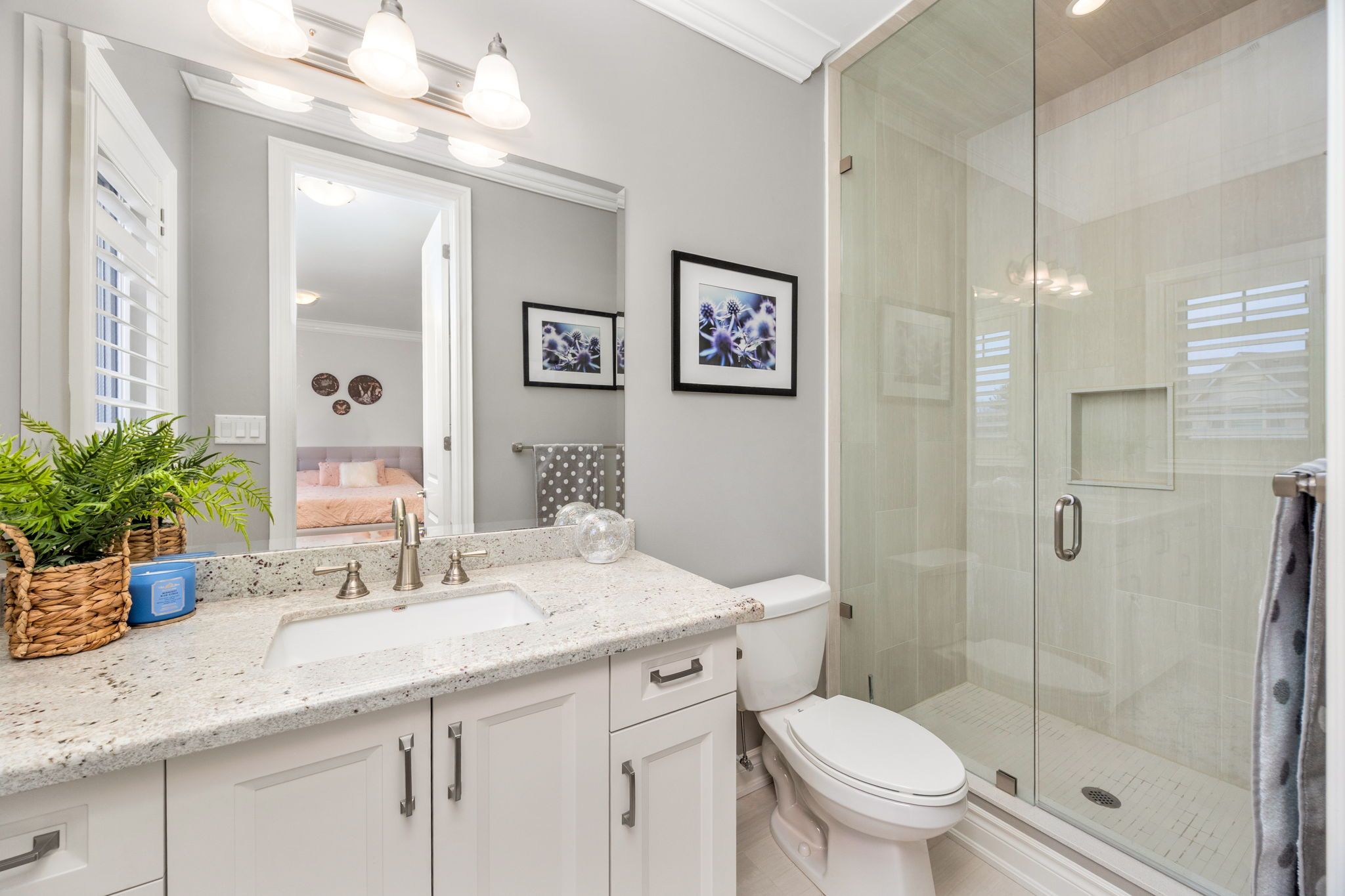 • Every bathroom offers a spa-like experience with glass-enclosed showers.