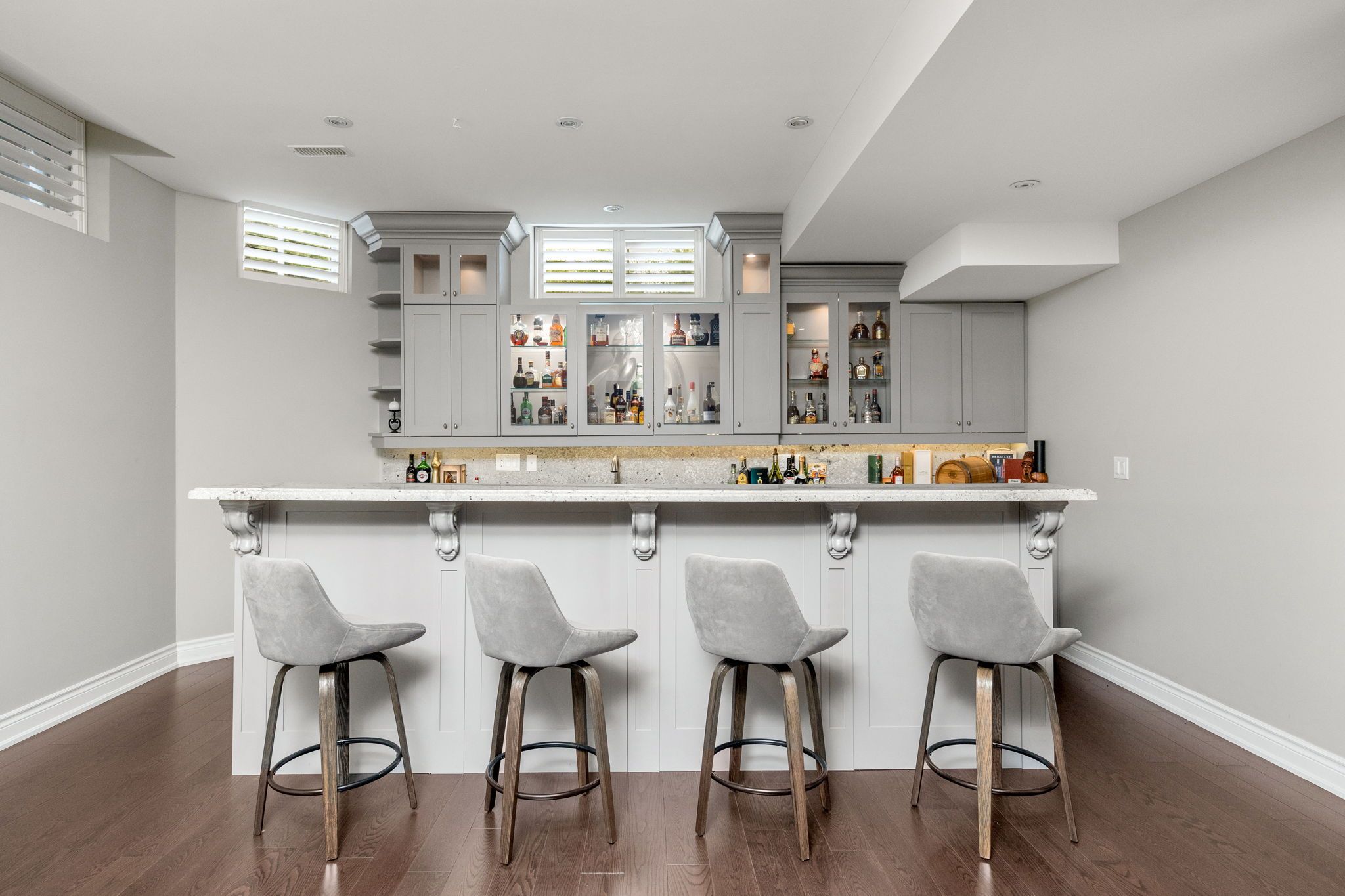 • Finished basement features a wet bar and spacious guest room.