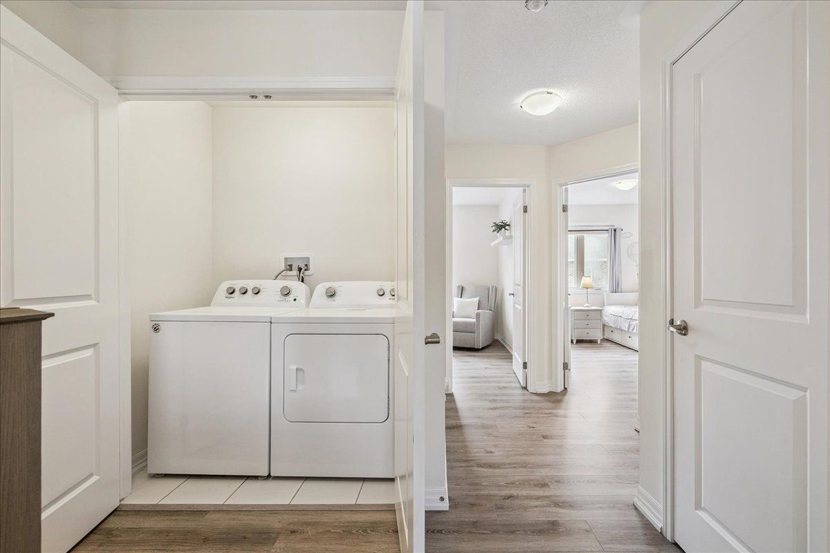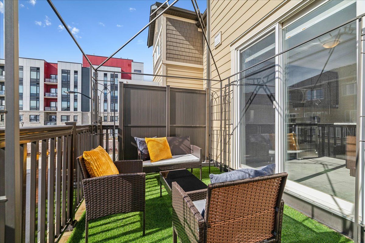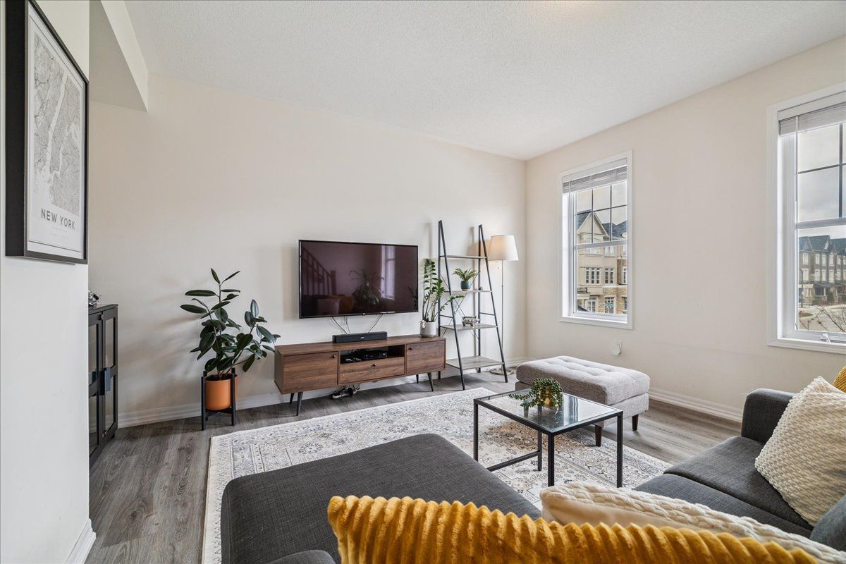 This gorgeous three bedroom / 3 bathroom freehold townhome is nestled in the prestigious preserve community. This mattamy-built "beach model" offers the perfect blend of comfort, and functionality across 1,766 sq ft of beautifully designed living space. The main level offers convenient inside access from the double garage and a versatile home office, gym or family room. The second level is perfect for entertaining! It features a spacious living room, dining room, walk-out access to a balcony, a convenient powder room, and a modern kitchen equipped with contemporary cabinetry, quartz countertops, stainless steel appliances, a large island with a breakfast bar, and a walk-in pantry. The spacious primary bedroom, located on the third level, includes a walk-in closet and a spa-inspired three-piece ensuite. Two additional bedrooms, a four-piece main bathroom, and convenient laundry facilities complete the third level. Highlights include a neutral colour scheme, solid wood staircases, carpet free with wide-plank laminate flooring, and private lane entry to two-car attached garage. This desirable location is within walking distance of charles fay pond, schools, and parks, and is close to sixteen mile sports complex, river oaks recreation centre, shopping centres, dining options, hospital, and major highways. This exceptional home is move-in ready and waiting for its second owner!