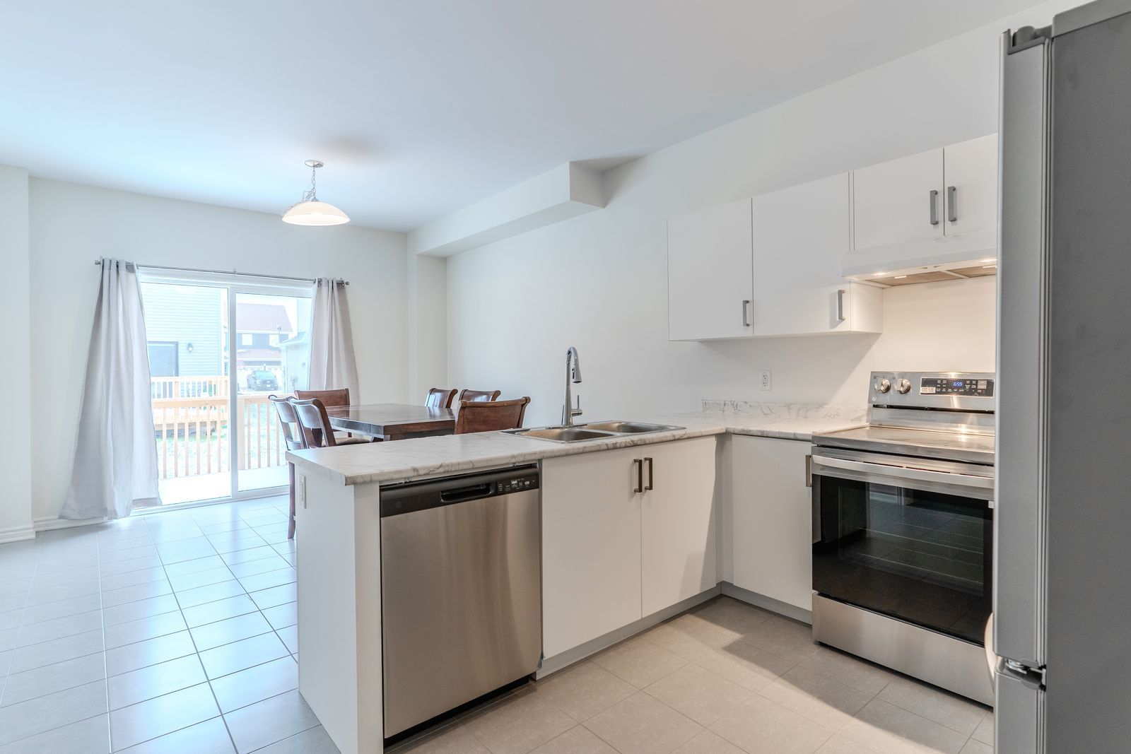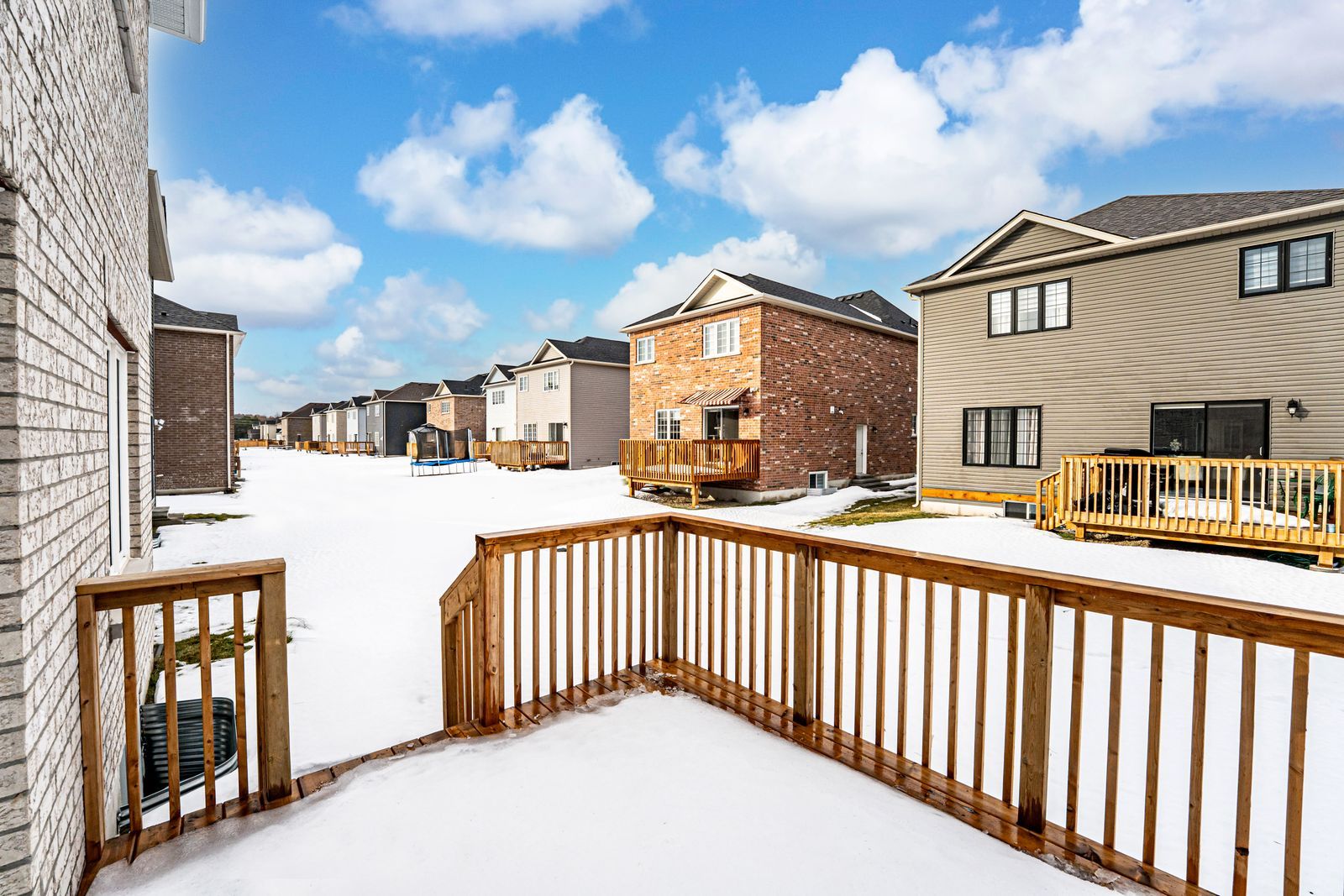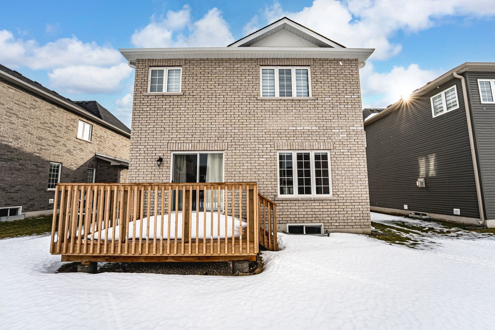 2,200+ sq ft family home with a separate side basement entrance & in-law potential inviting you to create your vision! If you have ever wished a builder home came with personality, potential and a little main character energy, this one is ready to earn a spot on your pinterest boards once you work your magic. The all-brick exterior sets the tone the moment you arrive, paired with a paved driveway, parking for 4 and a double-car garage with inside entry that brings everyday convenience. This macpherson-built north star model home showcases a bright, open-concept main level with over 2,200 square feet of above grade living space, 9-foot ceilings, and generous sightlines that make the home feel even larger. A gas fireplace anchors the living area with a warm, relaxed atmosphere, and the kitchen adds its own charm with white cabinetry, a calacatta marble-look countertop, and stainless steel appliances. The dining area opens to a back deck made for lazy mornings and leisurely evenings, while the main-floor laundry keeps daily routines pleasantly simple. Upstairs, the primary bedroom offers a true retreat with a 5-piece ensuite and two walk-in closets that elevate storage to a sense of luxury. Families will appreciate the flexible bedroom layout, and anyone thinking ahead will be drawn to the expansive lower level with a side entrance, three egress windows and rough-ins for a kitchen, bathroom and laundry to support excellent in-law capability. Set in a new stayner development with quick access to wasaga beach, angus, barrie and collingwood, the neighbourhood offers a friendly energy with dining, shopping, schools, the arena and the ecopark all close enough to weave naturally into your week. This is the kind of #hometostay that makes it easy to picture the life you can build here.