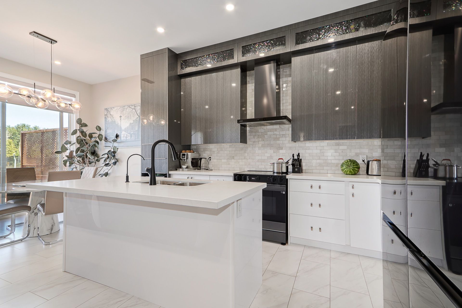 • Upgraded kitchen with stainless steel appliances and large center island.