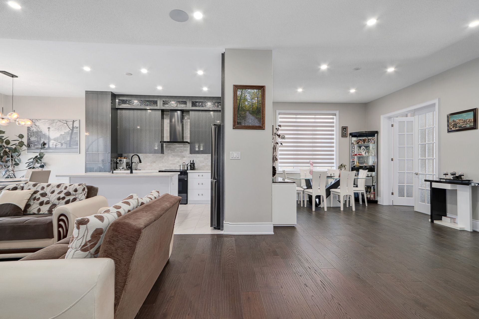 Welcome to your dream bungalow on a premium 60' pool-sized lot - backing onto a park! Located in one of wasaga beach's most desirable neighbourhoods, this beautifully upgraded bungalow has everything you've been looking for. With 10' smooth ceilings, extra-tall doors, hardwood floors, pot lights, built-in speakers, and a cozy 50" electric fireplace, the space feels open, bright, and welcoming. The kitchen is a true showpiece-perfect for both everyday living and entertaining-featuring upgraded stainless steel appliances, quartz countertops, plenty of pot drawers, a stylish backsplash, and a large centre island where everyone will gather. You'll love the bright, open-concept layout filled with natural light. The rare 3-car garage offers high ceilings and lots of storage. Out back, your private yard backs onto a park and includes a spacious wood deck, gas bbq hookup, and premium fencing-ideal for summer evenings and weekend get-togethers. The primary bedroom is a true retreat with a walk-in closet and a stunning 5-piece ensuite, complete with a freestanding tub and frameless glass shower. This home has seen over $150,000 in upgrades, including the kitchen and bathrooms, a finished basement with large windows, upgraded tiles, custom blinds, water softener, and more. Just steps to superstore, costco, and private resident-only beaches, in a friendly community known for its unbeatable lifestyle. Move in and enjoy everything wasaga beach has to offer!