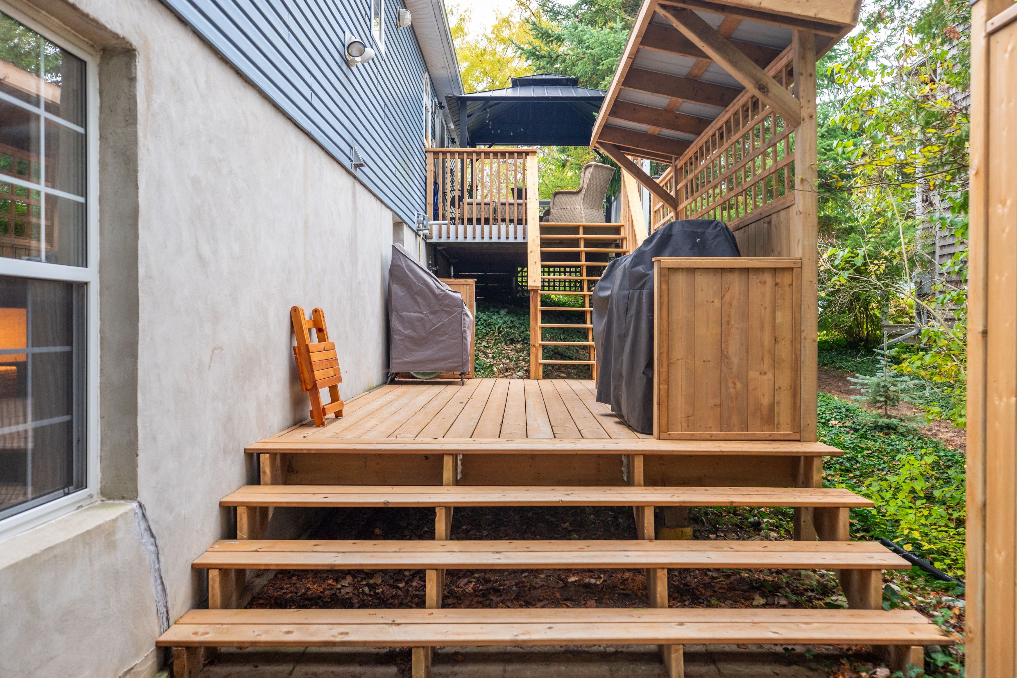 Welcome to 244 summerhill road - one of southampton's most picturesque streets! This beautifully designed bungalow is perfectly situated on a scenic ravine lot, surrounded by mature landscaping and multiple inviting outdoor living spaces. Every detail of this home has been thoughtfully crafted to capture the peaceful views and natural beauty that make southampton so special. Featuring two driveways - one off mcnabb and one off summerhill road- this home offers both convenience and charm. Inside, you'll find 3spacious bedrooms and 3 full bathrooms, including a lovely main-floor primary suite complete with a walk-in closet and ensuite. The open-concept main floor flows effortlessly between the kitchen, dining, and living areas. The kitchen boasts a generous island with a built-in range and breakfast bar, while the living room features a cozy gas fireplace framed by a custom cherry mantle and cabinetry. The dining area includes elegant built-ins and opens to a sunlit deck-perfect for morning coffee or evening relaxation. Downstairs, the lower level offers even more space to enjoy. There's a comfortable family room with another gas fireplace and walkout to a private patio, a third bedroom, a full bathroom, and a large utility/workshop area. A rough-in for a future bar adds even more potential for entertaining. The attached single-car garage is ideal for storing bikes, paddleboards, and all your beach essentials. Best of all, you're just a short walk from southampton's famous sand beaches and breathtaking sunsets. Don't miss your chance to call summerhill road home -this charming property is the perfect blend of comfort, character, and location.