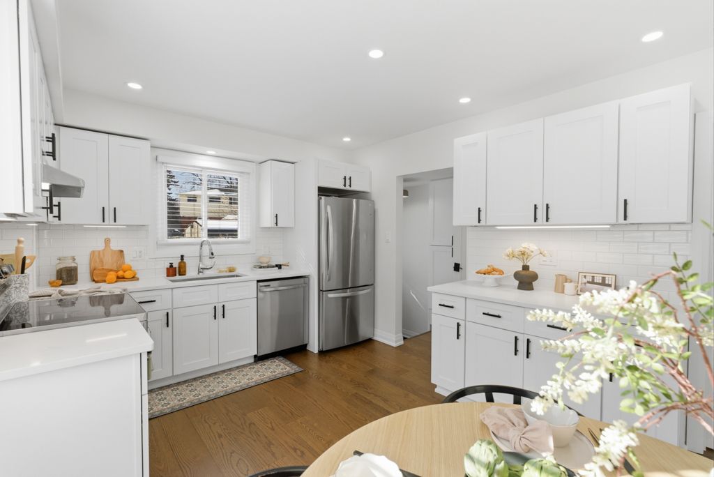 • Spacious main floor with engineered hardwood and modern kitchen.
