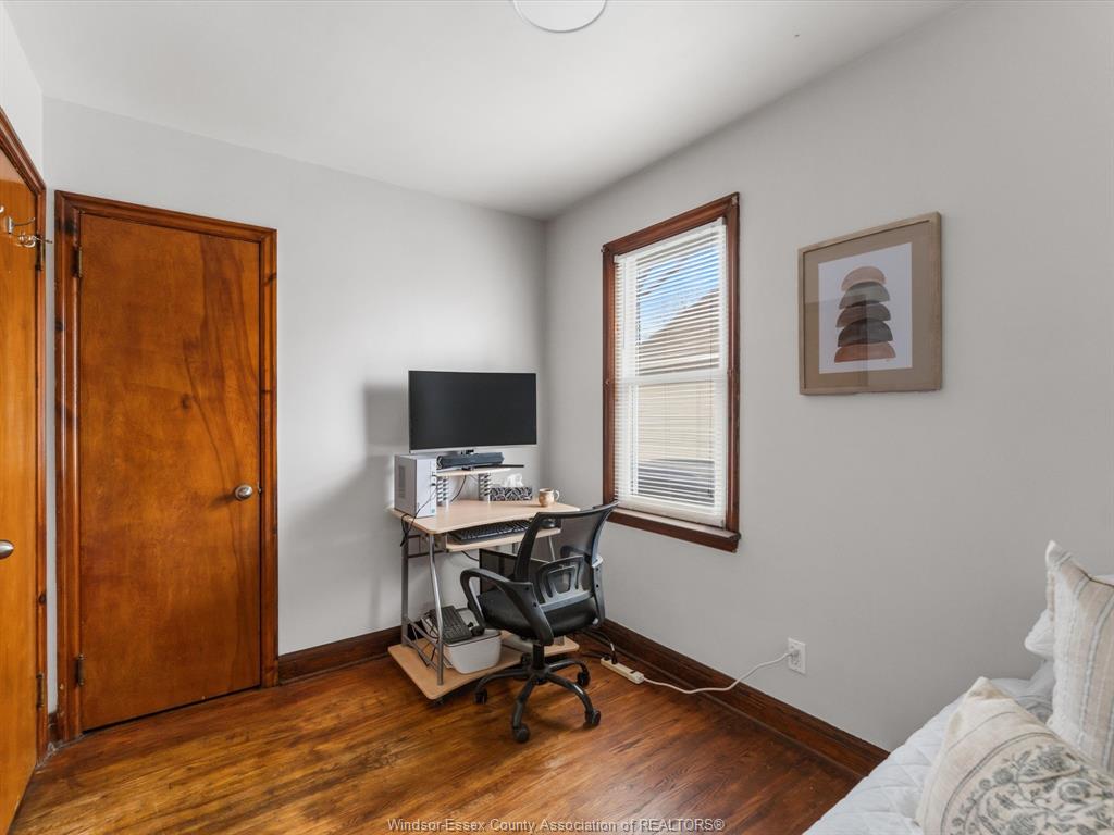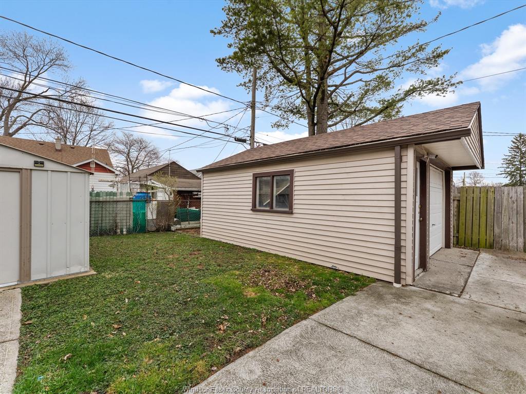 Charming 1½ storey home in a convenient windsor location, offering 4 bedrooms and 1 full bath. The main floor features a spacious layout with an additional living/dining area complete with a cozy gas fireplace, creating an extra warm and inviting space for everyday living. Large windows bring in plenty of natural light throughout the home. Situated on a fully fenced lot, the backyard offers privacy and room to enjoy, along with a detached garage for added storage or workspace. Centrally located, close to restaurants, shopping, parks, schools, all major bus routes. Just steps from the stellantis windsor assembly plant (chrylser), this home is ideal for anyone looking to be close to major employers, while also being minutes from all amenities. A solid opportunity for first-time buyers, investors, or anyone looking for a well located home with great potential!