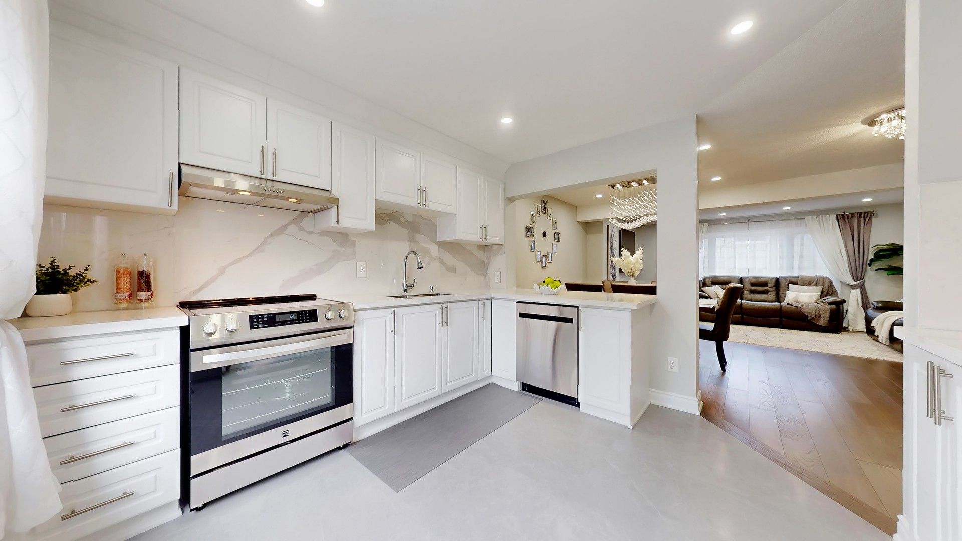• Updated kitchen featuring stainless steel appliances and contemporary finishes.