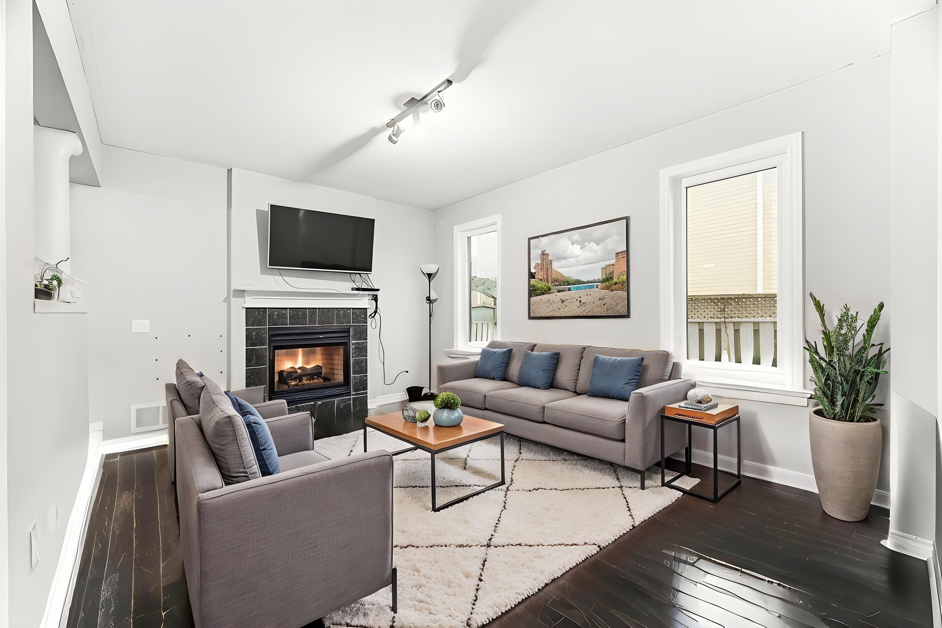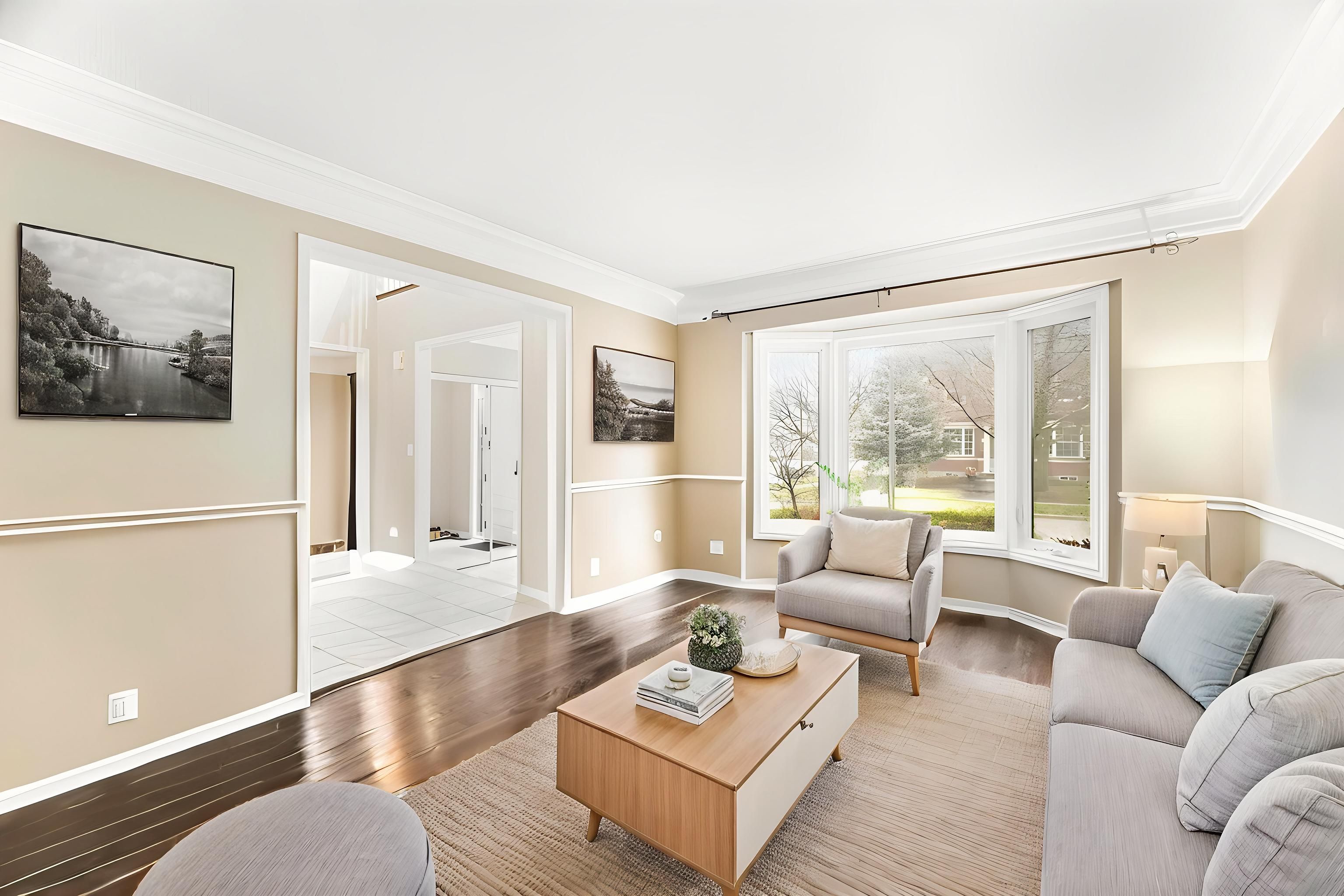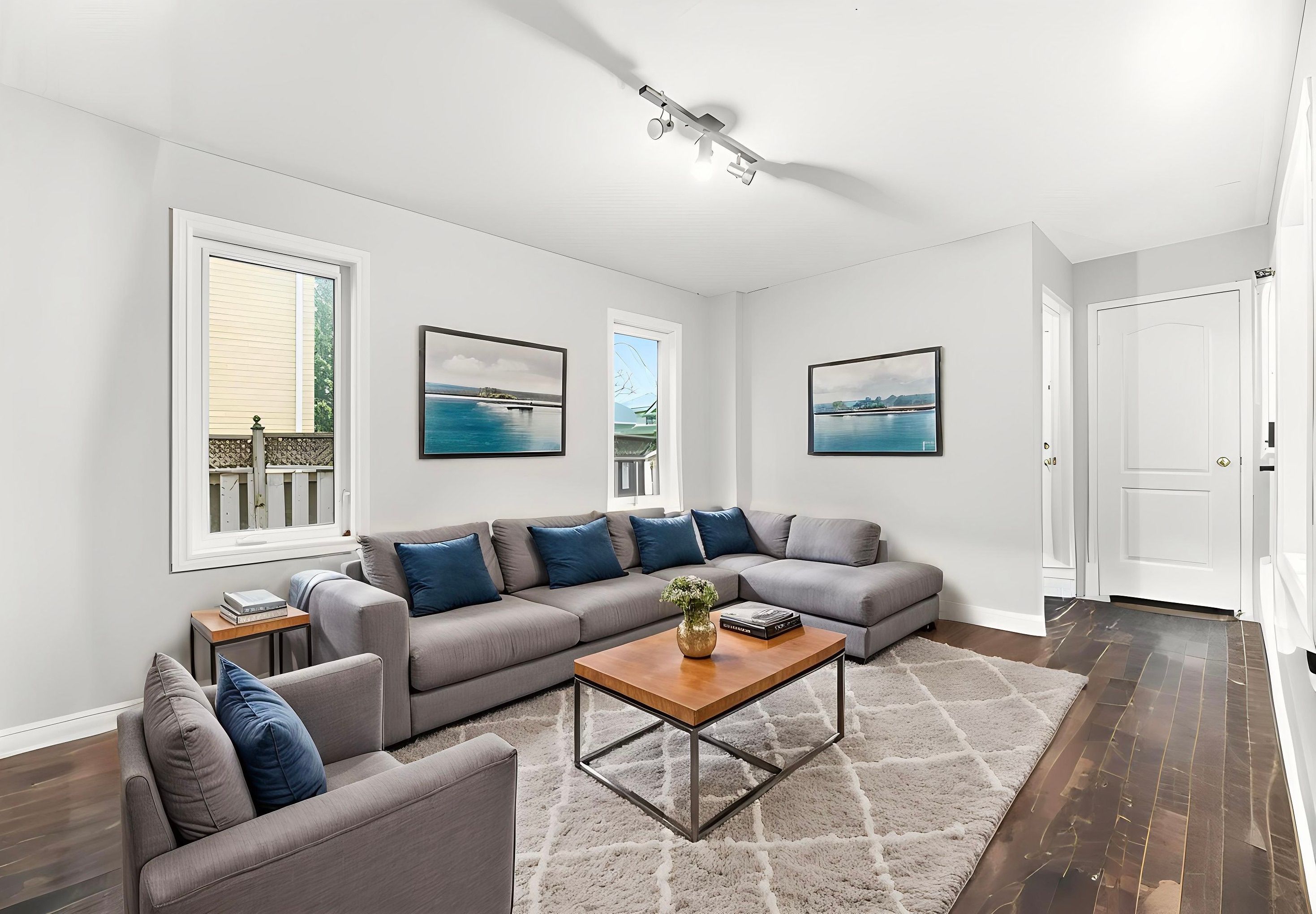 • Hardwood flooring throughout main areas adds warmth and style.