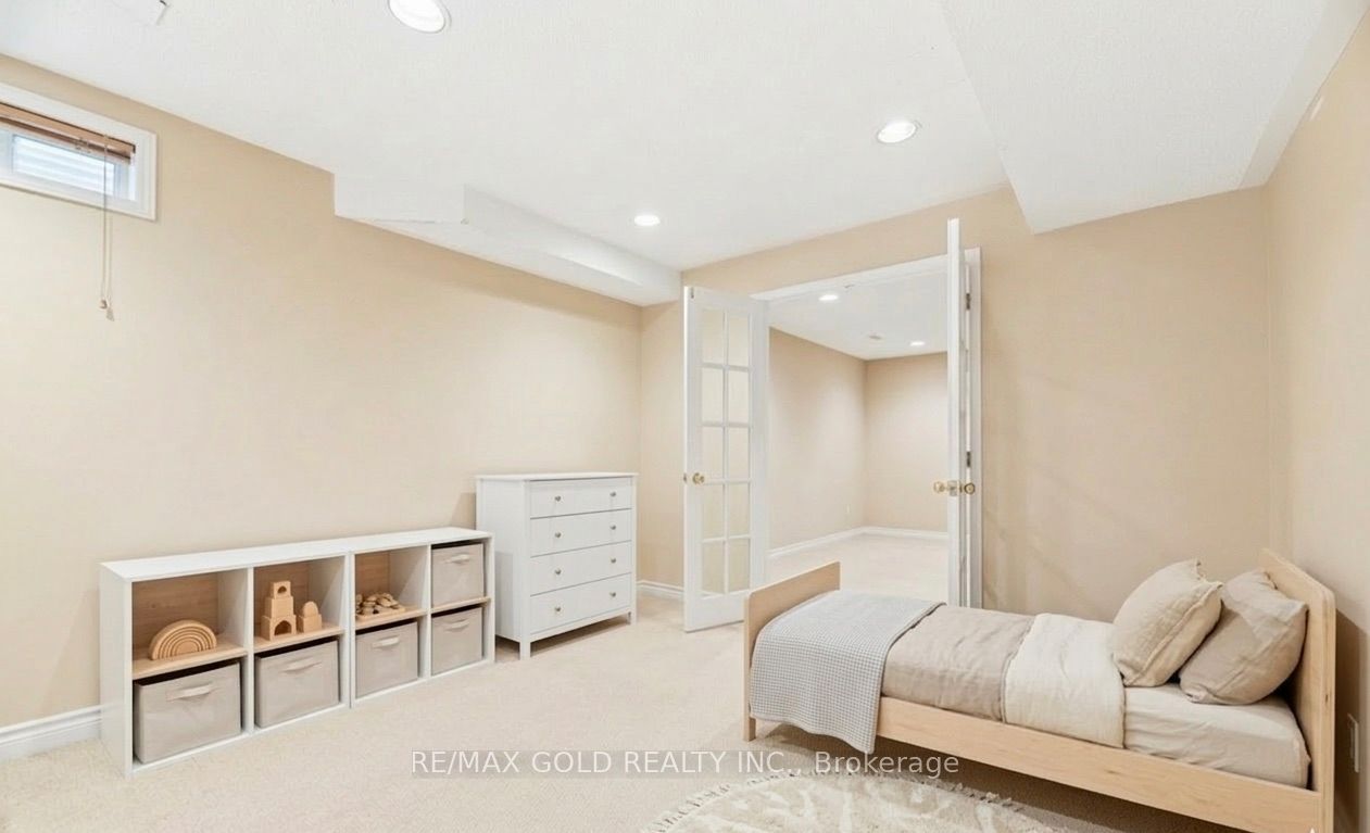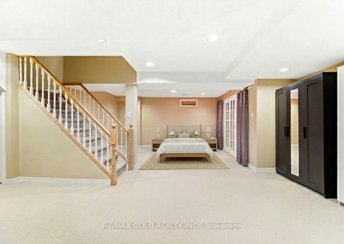 • Finished basement with extra living space, bedroom, and kitchenette.