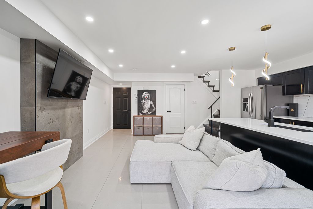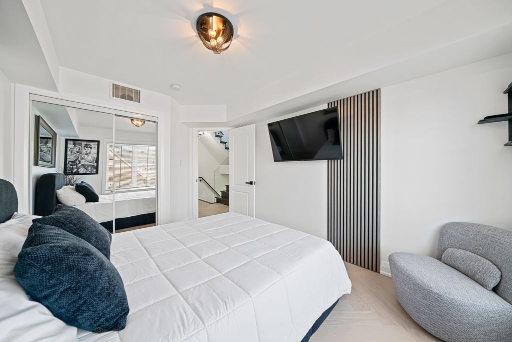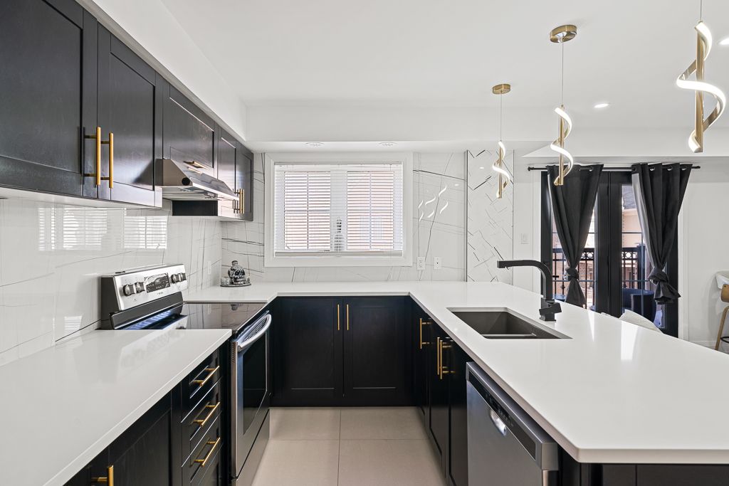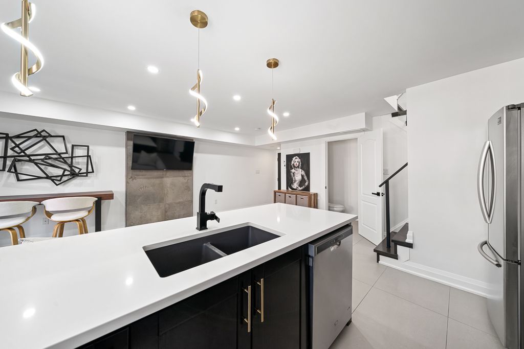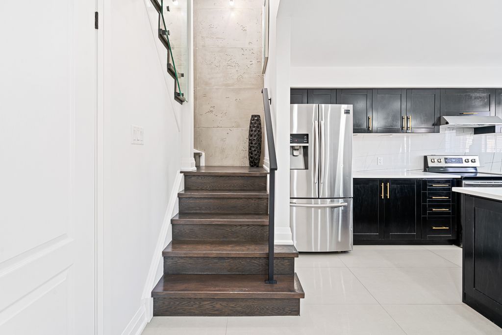 Welcome to 2441 greenwich dr #113 - a beautifully upgraded corner unit offering 2 bedrooms + den, 2 bathrooms, and a private rooftop terrace. This bright and spacious home features solid maple kitchen cabinets, new samsung appliances, a large slab backsplash, and oversized tiles throughout the main floor with a full 240v heated flooring system for added comfort. The living area is highlighted by a stunning concrete media wall, adding a modern designer touch. Upstairs, you'll find custom concrete feature walls, a fully rebuilt wooden staircase, sleek glass railings, and matte black handrails that create a clean, contemporary look. The home also includes new interior doors, baseboards, trim, and matte black hardware throughout. The main bathroom has been upgraded with large-format tiles, completing this thoughtfully renovated, move-in-ready home. A rare corner layout with premium finishes and a rooftop retreat- a true turnkey opportunity.