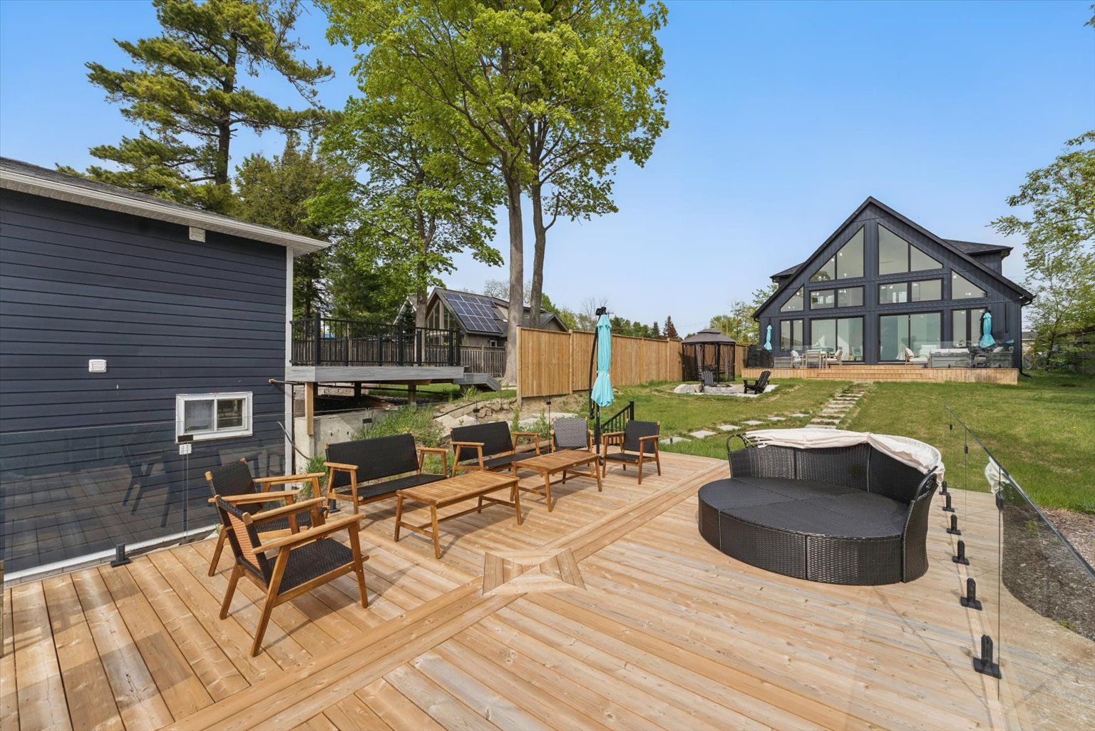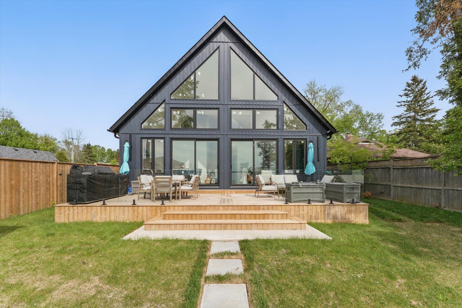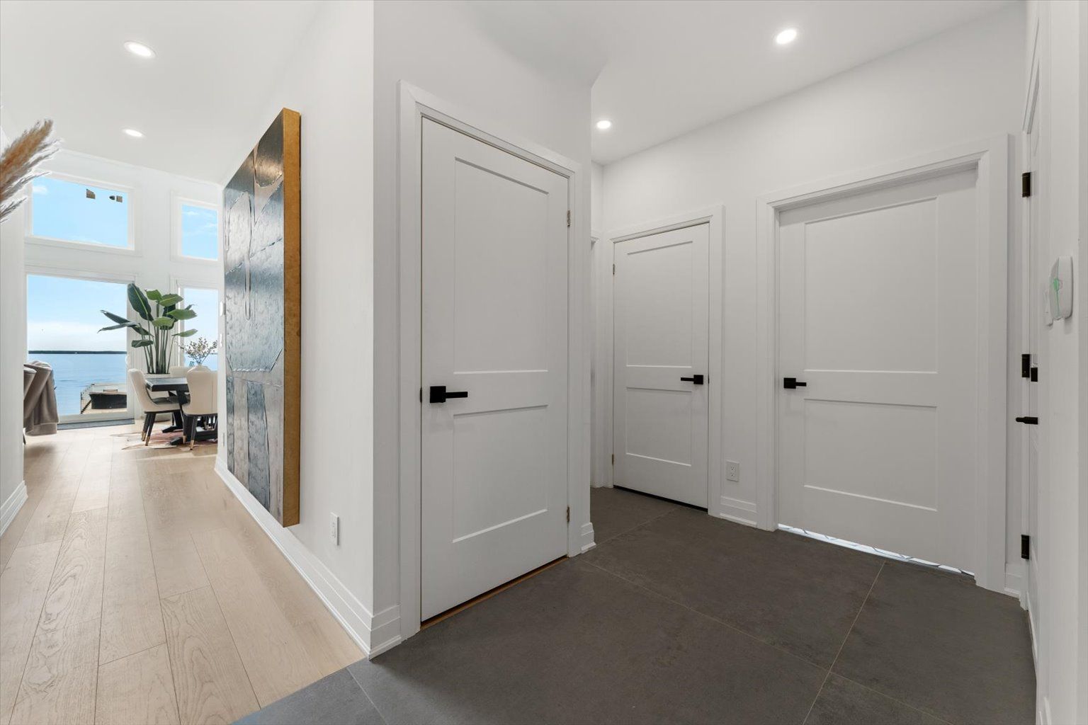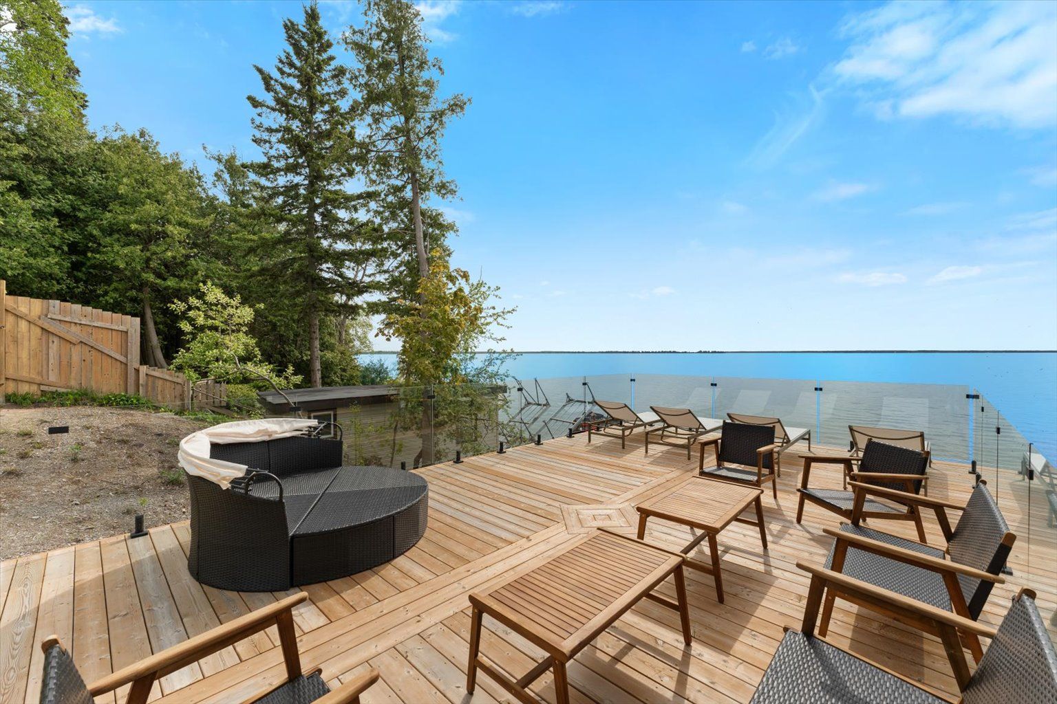 All brand-new furniture is included in the price. Don't miss out on this one-of-a-kind custom-built tarion warrantied waterfront property with newly constructed boathouse! Walk through the beautifully stained fiberglass front door into the spacious foyer accented by 48" porcelain tiles. The foyer opens out to the awe-inspiring great room/kitchen combo filled with natural sunlight pouring through the floor-to-ceiling high windows. Great room boasts soaring 24ft vaulted ceiling and wood cladded ridge beam! A 3-sided 5ft marquis fireplace dressed in marrakesh wall paint complements the great room. Chef's custom kitchen boasts high quality quartz counters and backsplash, high-end appliances, large 4x9ft center island, and a slide-out and a walk-in pantry. Main floor offers 2 ample sized bedrooms, laundry, spa-inspired 4pc washroom & access to garage. Principal bedroom is equipped with a luxurious 5pc ensuite, walk-in closet with french doors and custom closet organizer. The second bedroom has a 3pc ensuite. Both the bedrooms have huge custom designed glass panes offering magnificent views of the lake! Walking out of the great room 8' tall sliding doors, you are greeted with a massive deck with a diamond insignia. The deck is equipped with a built-in gas bbq with an outdoor fridge. A set of cascading stairs takes you down to the lush back yard and second massive diamond deck. The second deck sits atop the 16'x30' dry boathouse which has a massive 11' high door and a 60-amp subpanel. The boathouse is drywalled and finished. The fully finished basement includes and entertainment room and an exercise room. Other notable highlights: electric car charger rough-in in garage, water treatment equipment, water softener, hot tub rough-in, pot lights throughout, high end riobel plumbing fixtures, smart thermostat, alarm system (monitored option), and a camera surveillance system.