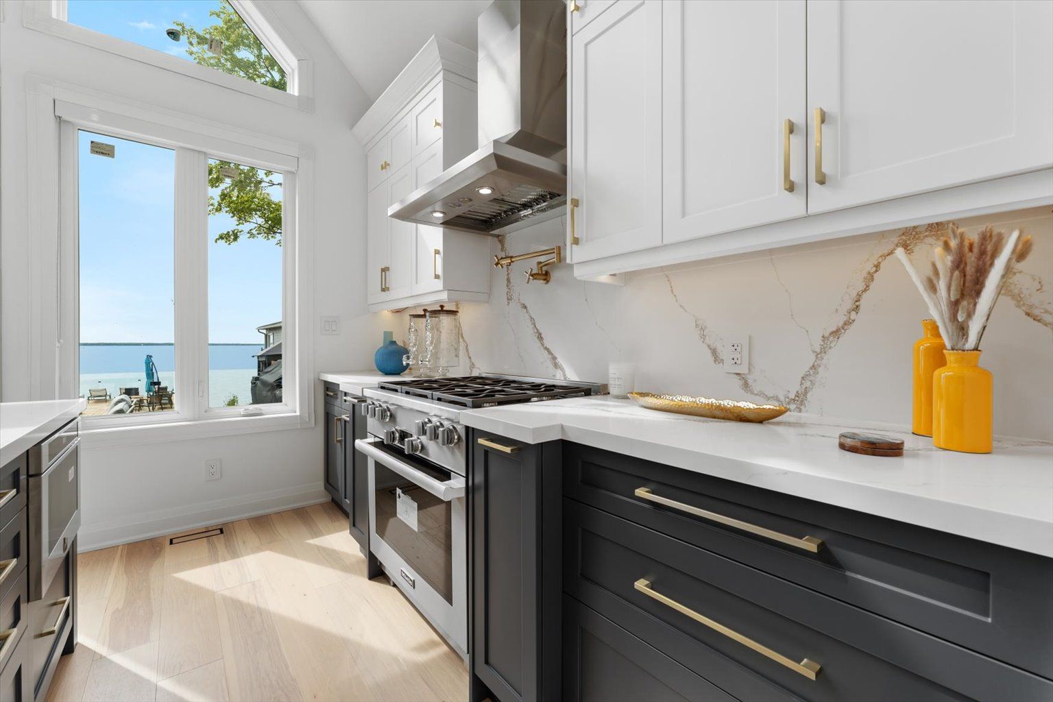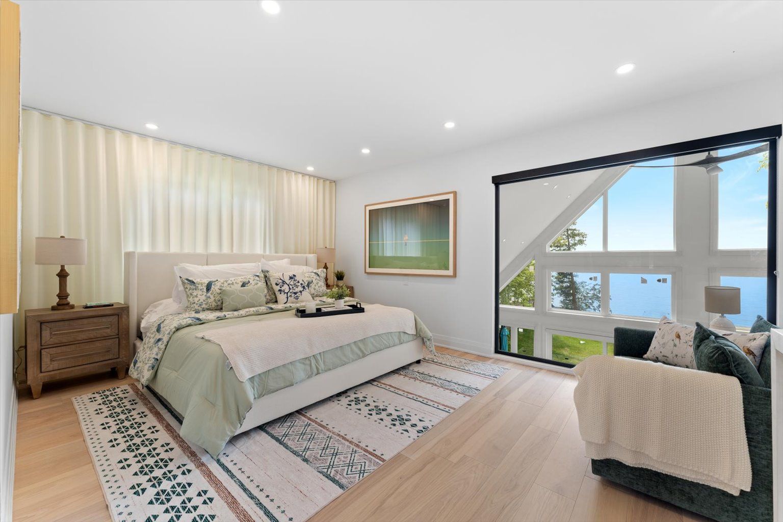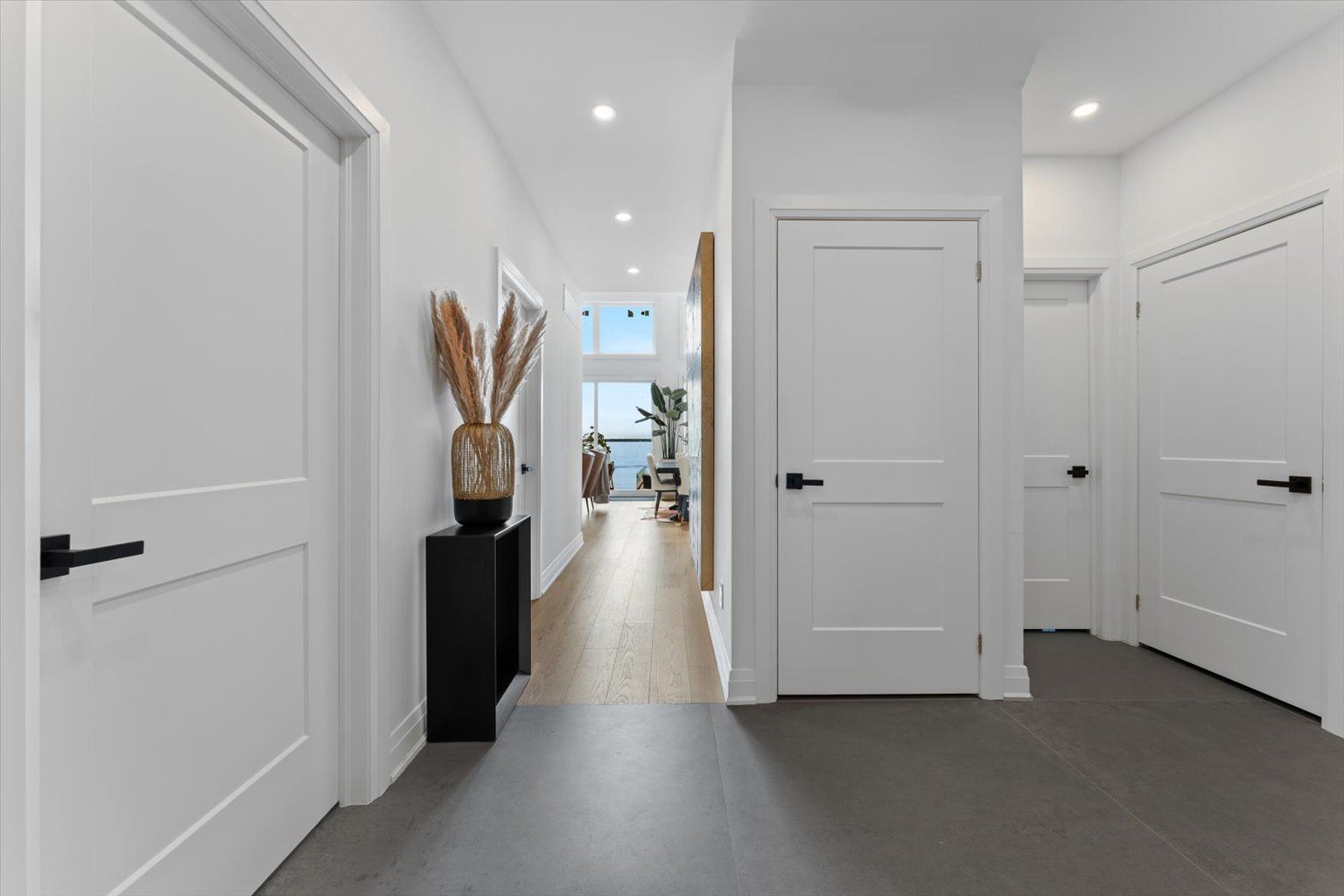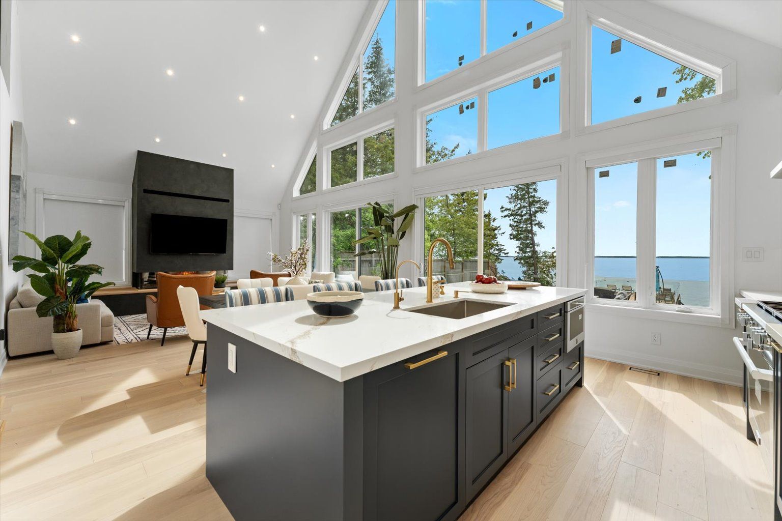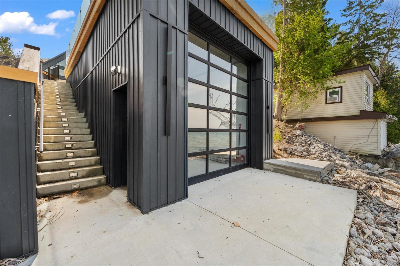 All brand-new furniture is included in the price. Don't miss out on this one-of-a-kind custom-built tarion warrantied waterfront property with newly constructed boathouse! Walk through the beautifully stained fiberglass front door into the spacious foyer accented by 48" porcelain tiles. The foyer opens out to the awe-inspiring great room/kitchen combo filled with natural sunlight pouring through the floor-to-ceiling high windows. Great room boasts soaring 24ft vaulted ceiling and wood cladded ridge beam! A 3-sided 5ft marquis fireplace dressed in marrakesh wall paint complements the great room. Chef's custom kitchen boasts high quality quartz counters and backsplash, high-end appliances, large 4x9ft center island, and a slide-out and a walk-in pantry. Main floor offers 2 ample sized bedrooms, laundry, spa-inspired 4pc washroom & access to garage. Principal bedroom is equipped with a luxurious 5pc ensuite, walk-in closet with french doors and custom closet organizer. The second bedroom has a 3pc ensuite. Both the bedrooms have huge custom designed glass panes offering magnificent views of the lake! Walking out of the great room 8' tall sliding doors, you are greeted with a massive deck with a diamond insignia. The deck is equipped with a built-in gas bbq with an outdoor fridge. A set of cascading stairs takes you down to the lush back yard and second massive diamond deck. The second deck sits atop the 16'x30' dry boathouse which has a massive 11' high door and a 60-amp subpanel. The boathouse is drywalled and finished. The fully finished basement includes and entertainment room and an exercise room. Other notable highlights: electric car charger rough-in in garage, water treatment equipment, water softener, hot tub rough-in, pot lights throughout, high end riobel plumbing fixtures, smart thermostat, alarm system (monitored option), and a camera surveillance system.