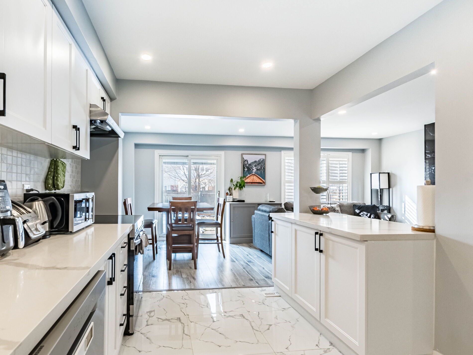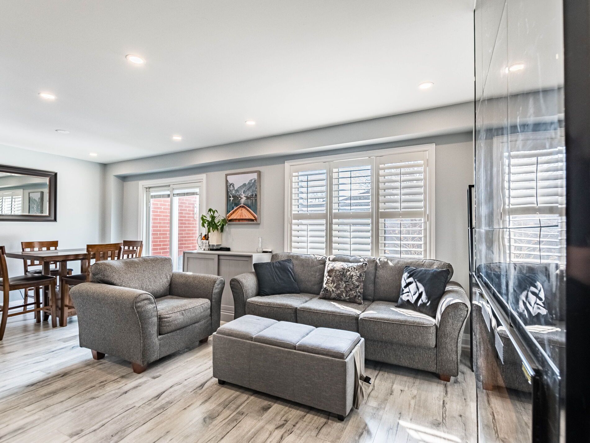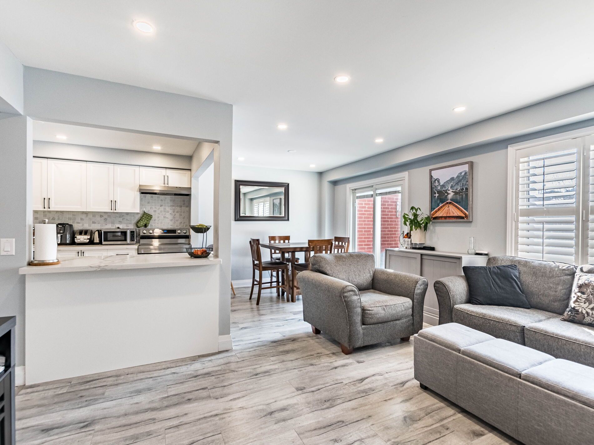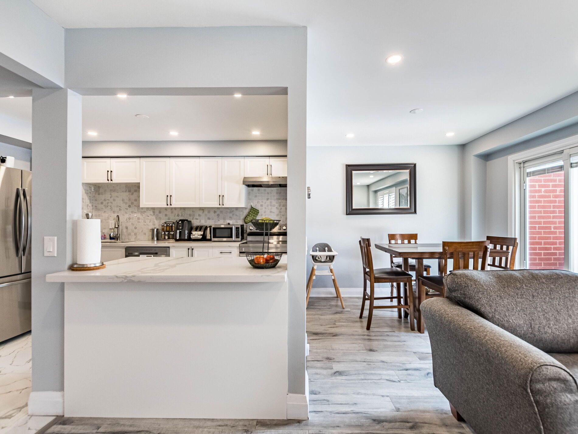 Welcome to this beautifully upgraded freehold townhome located in the peaceful river oaks neighborhood. Featuring an open-concept layout with 3 bedrooms and 3 bathrooms, this home sits on a deep lot and has been freshly painted with pot lights throughout. Enjoy a brand-new kitchen with walkout to the yard, complete with countertops, cabinets, backsplash, and stainless steel appliances. The home also includes a fully finished basement.